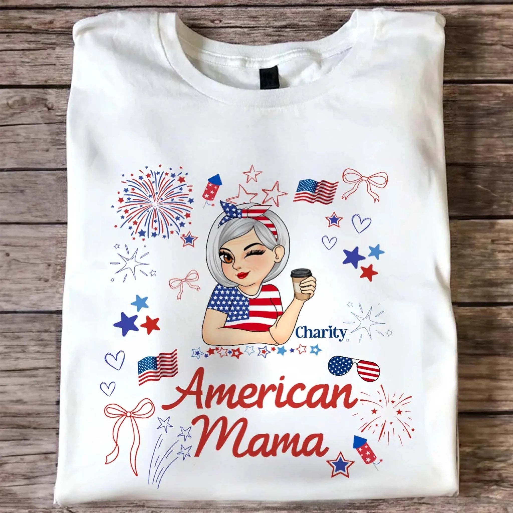 American Mama - Personalized T-Shirt, Funny 4th of July Tee for Mom/Grandma, Independence Day Shirt