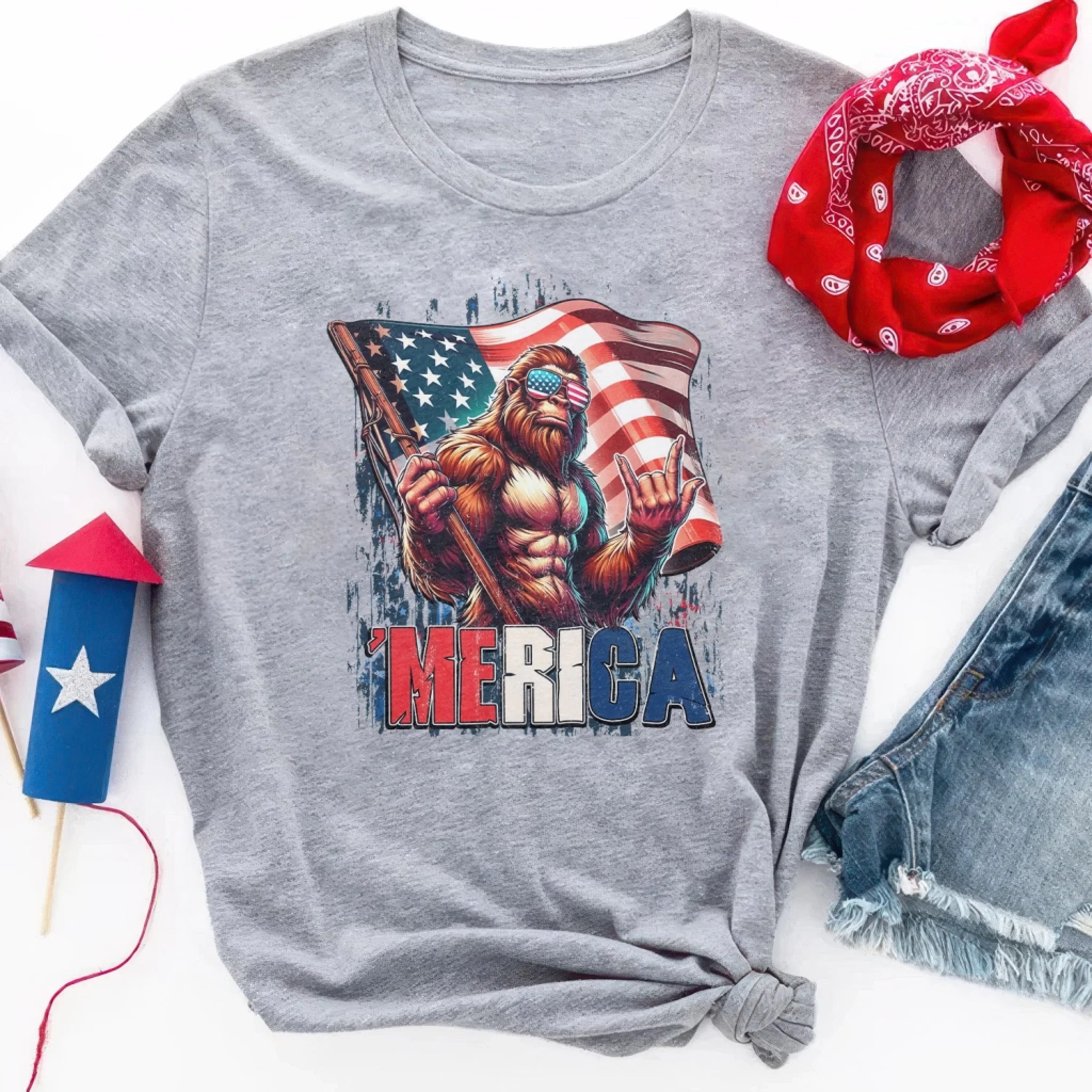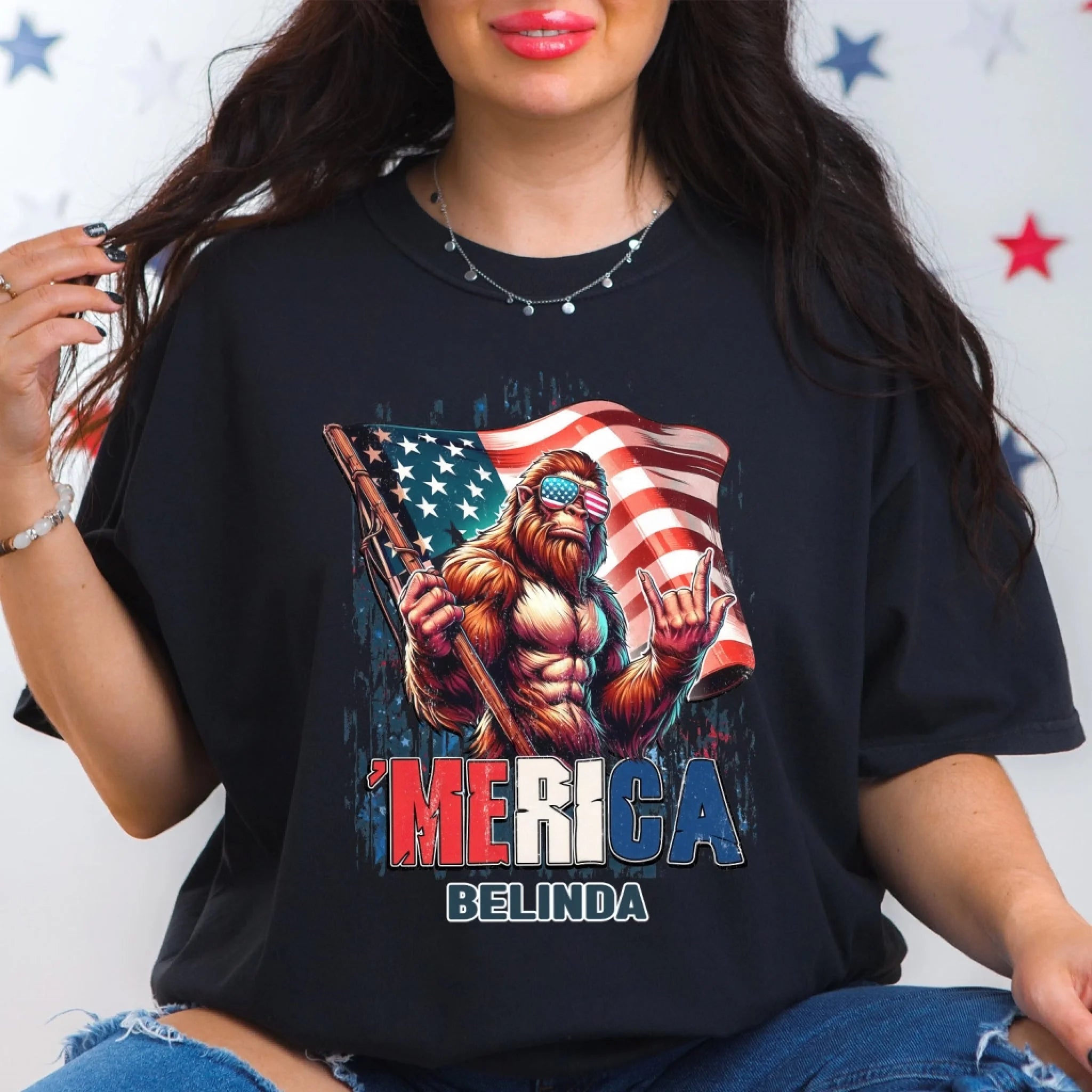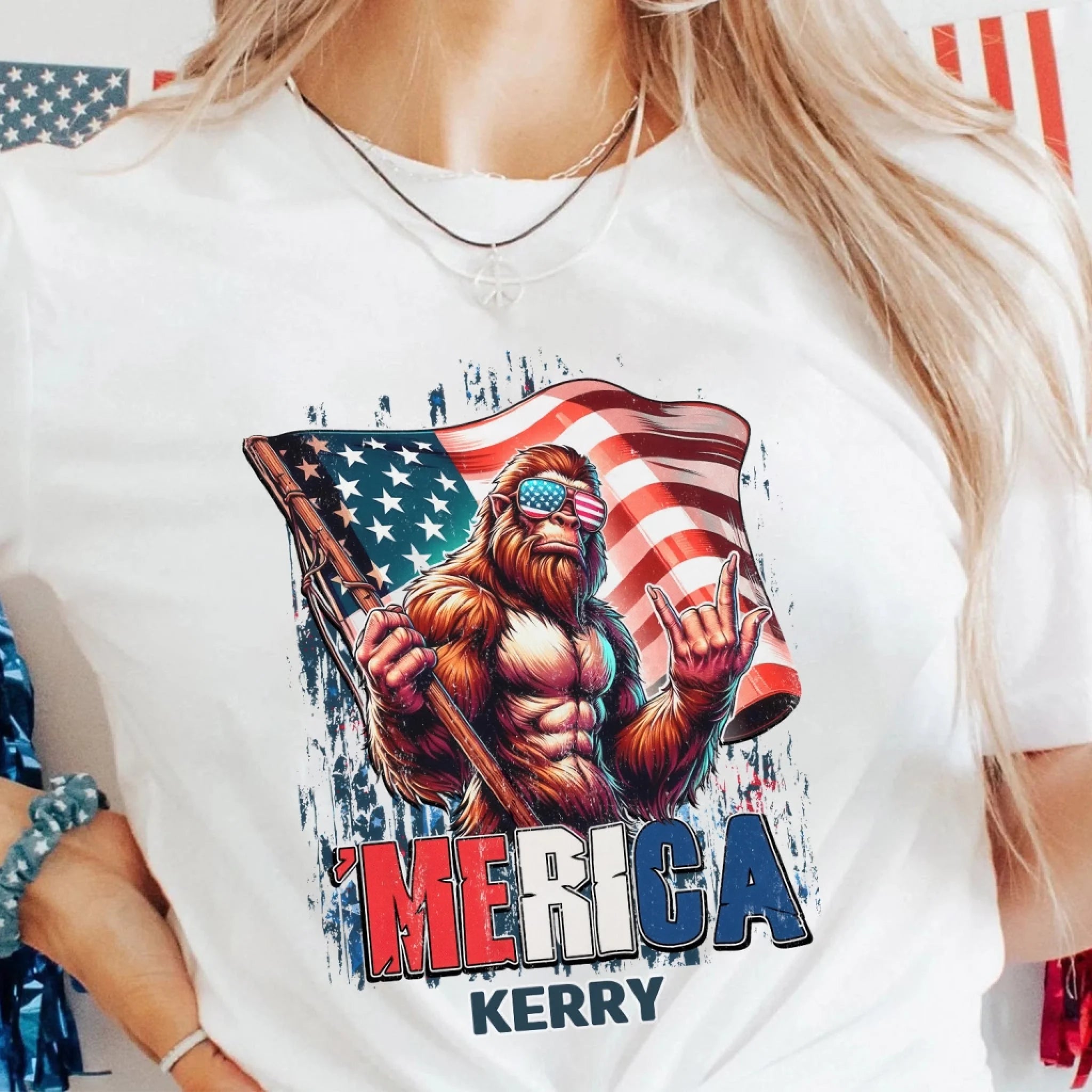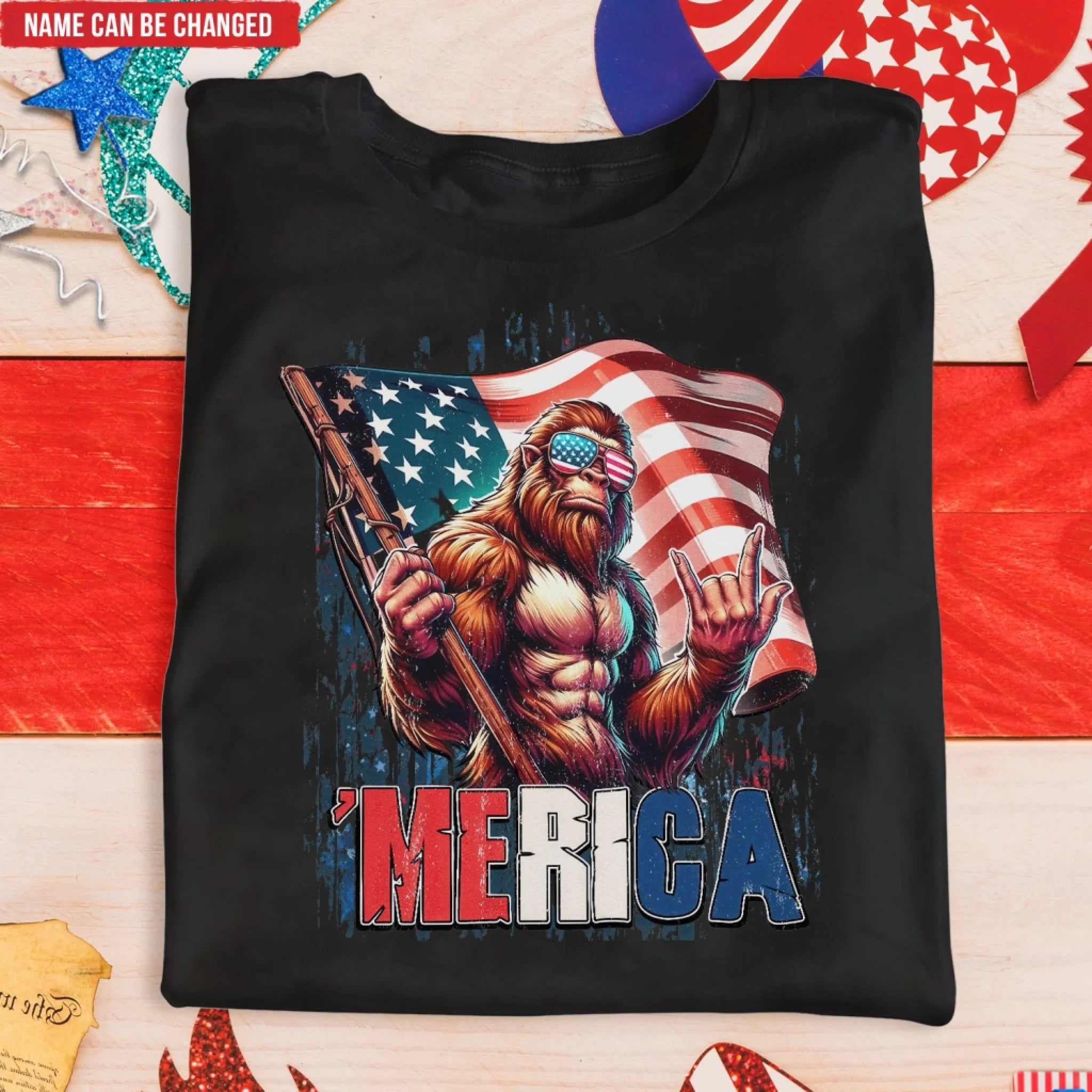Patriotic Bigfoot - Personalized T-Shirt, Red White And Bigfoot, 4th Of July Shirt