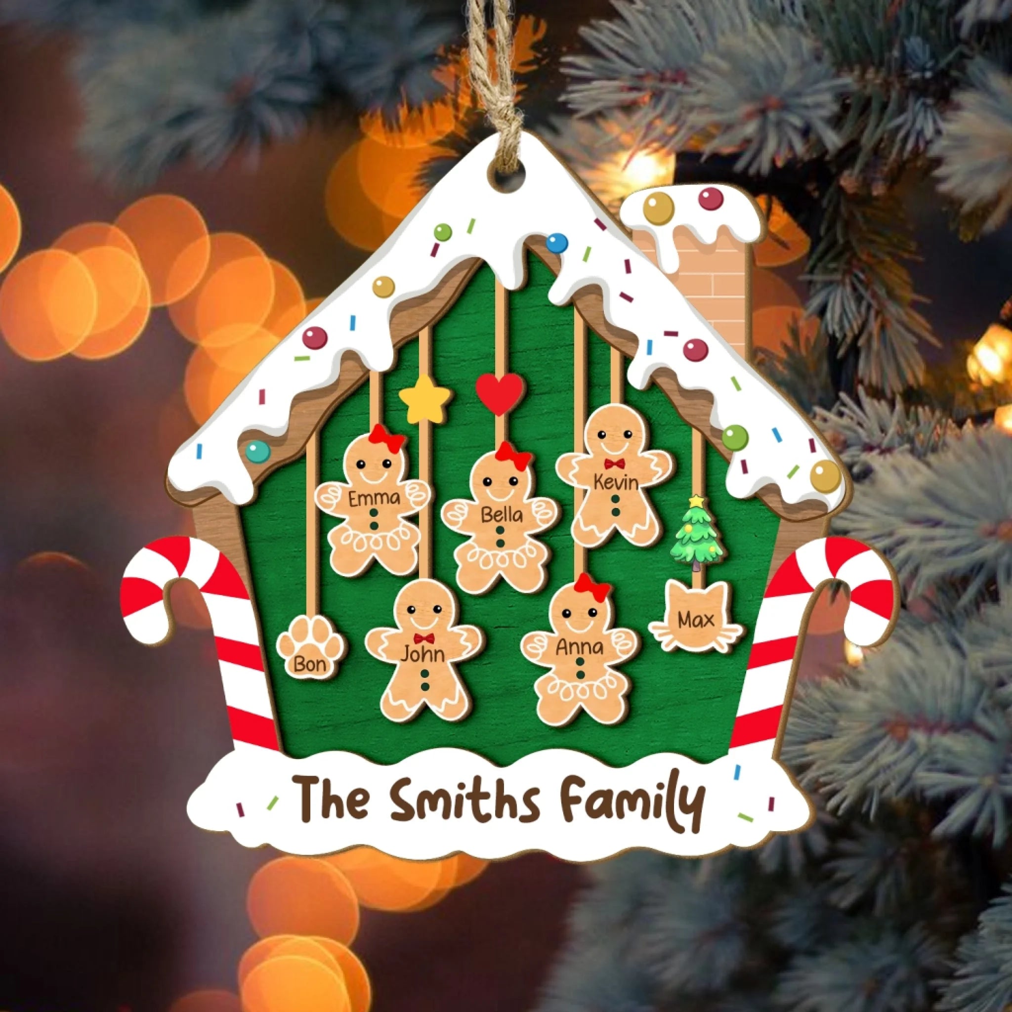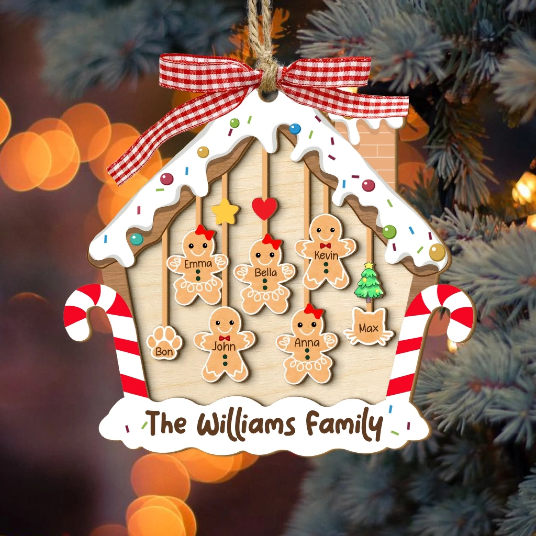 Custom Gingerbread Family - Personalized Wooden Ornament, Christmas Gift For Family