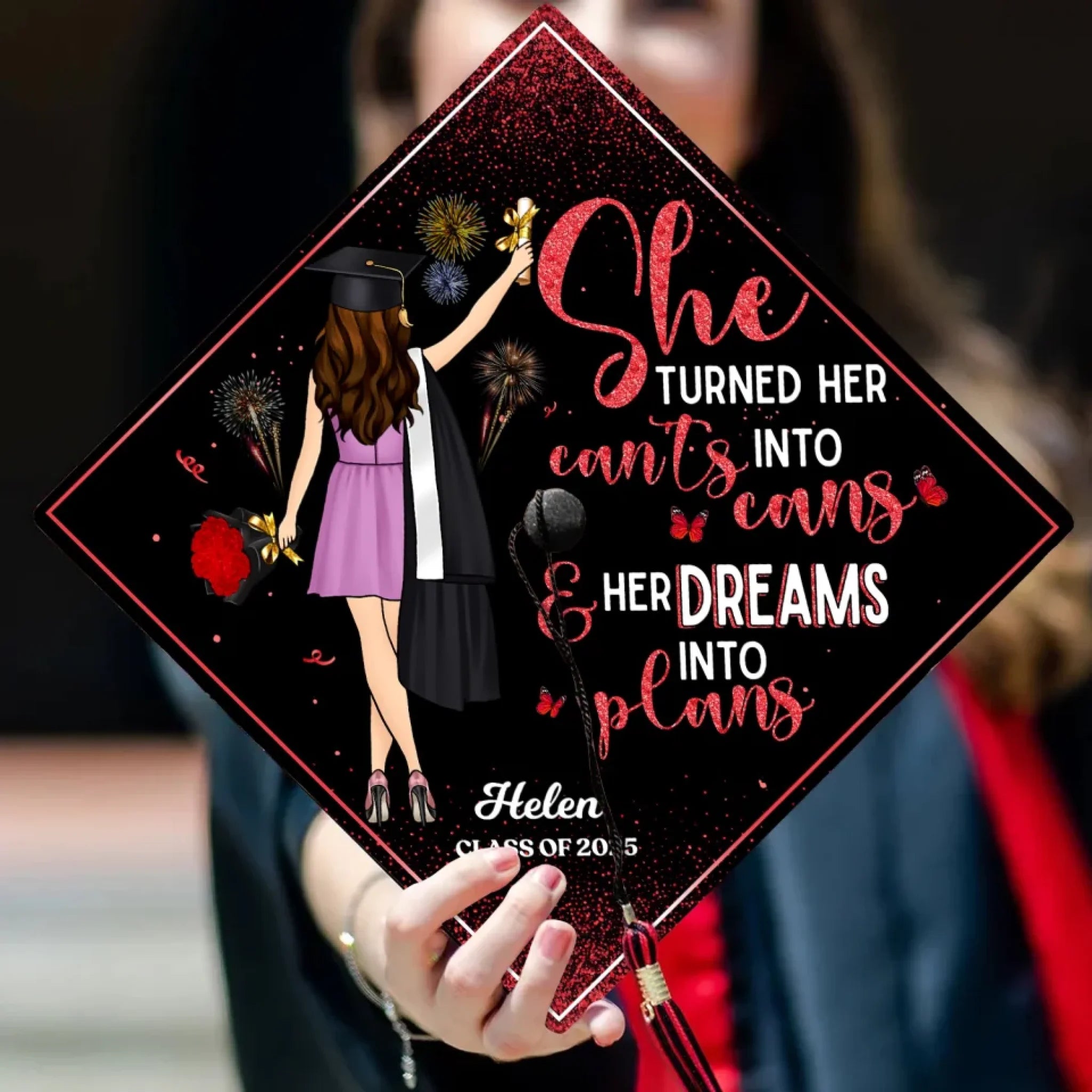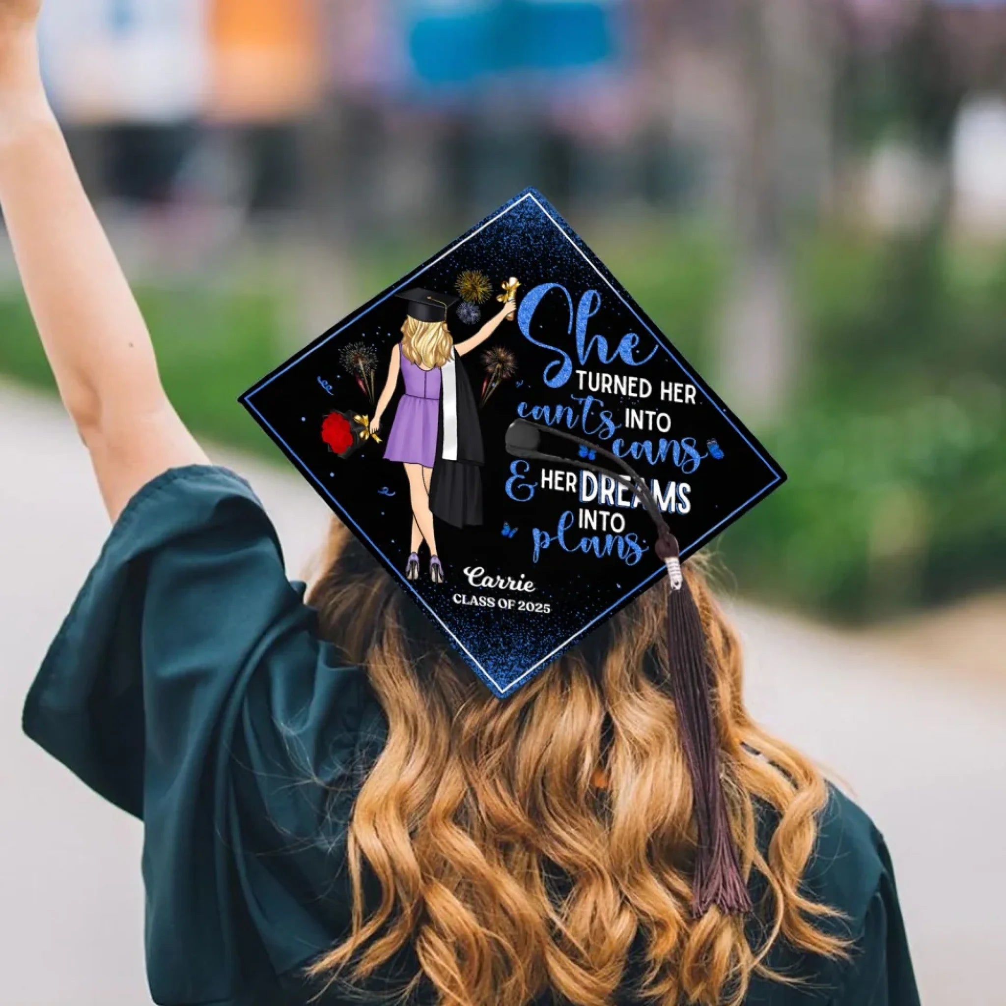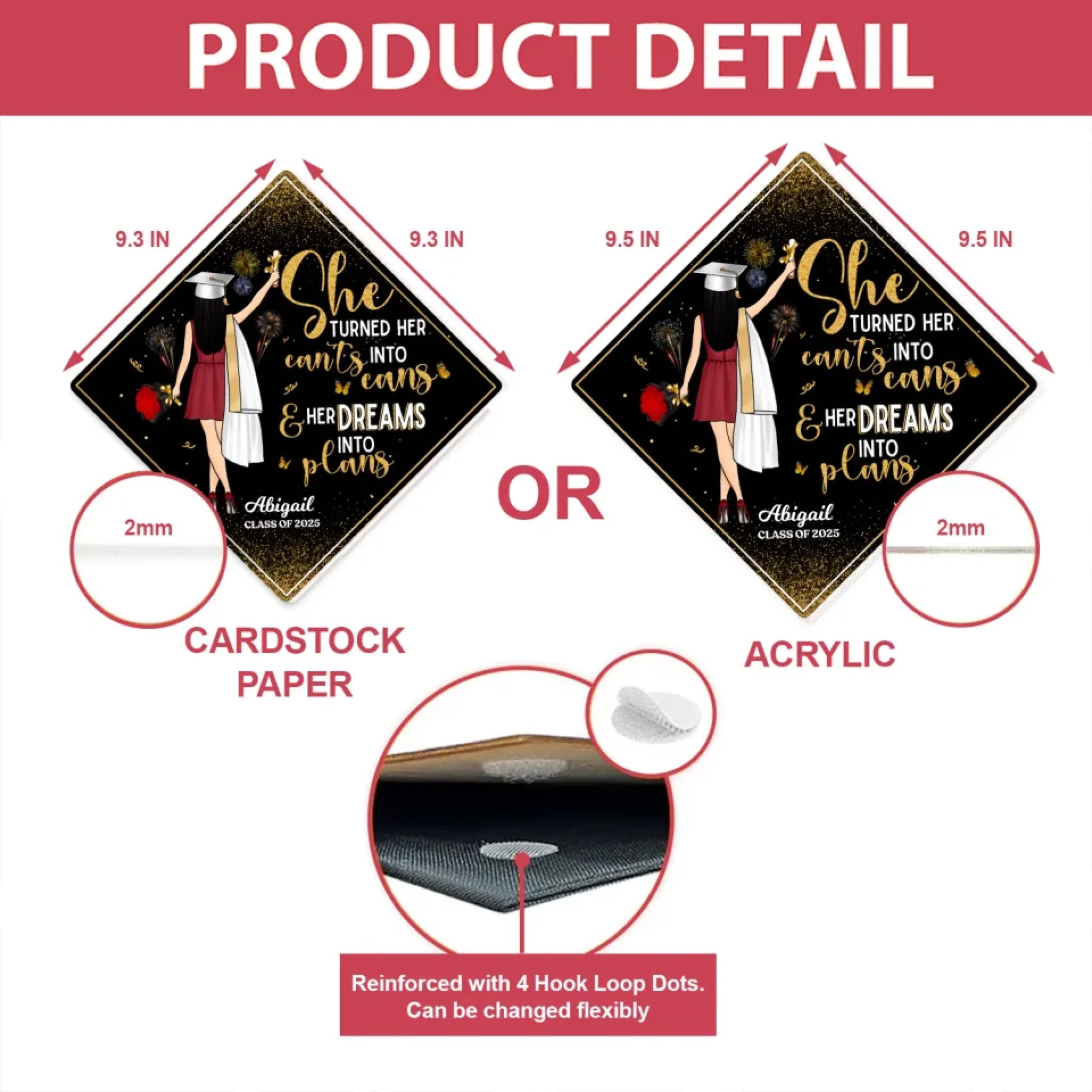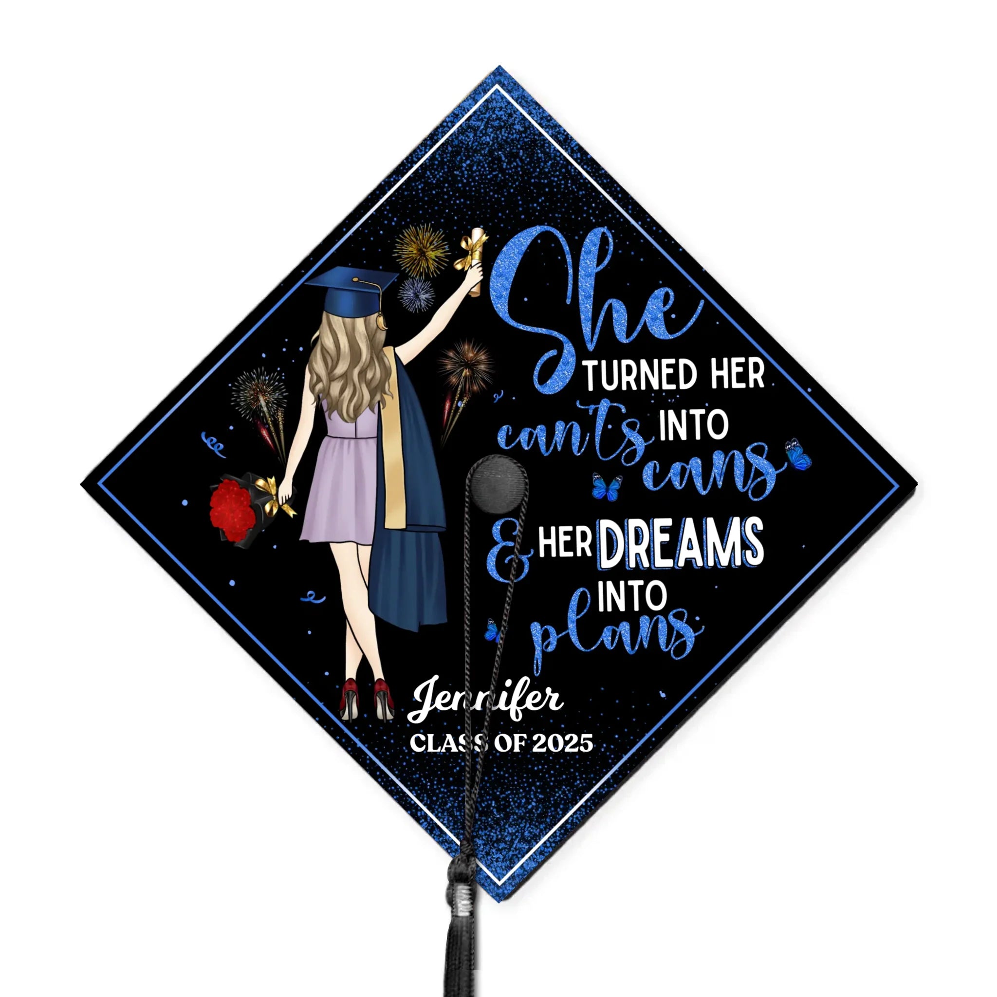 The Turned Her Can'ts Into Cans And Her Dreams Into Plans - Personalized Graduation Cap Topper, Graduation Gift, 2025 Senior Grad Gift