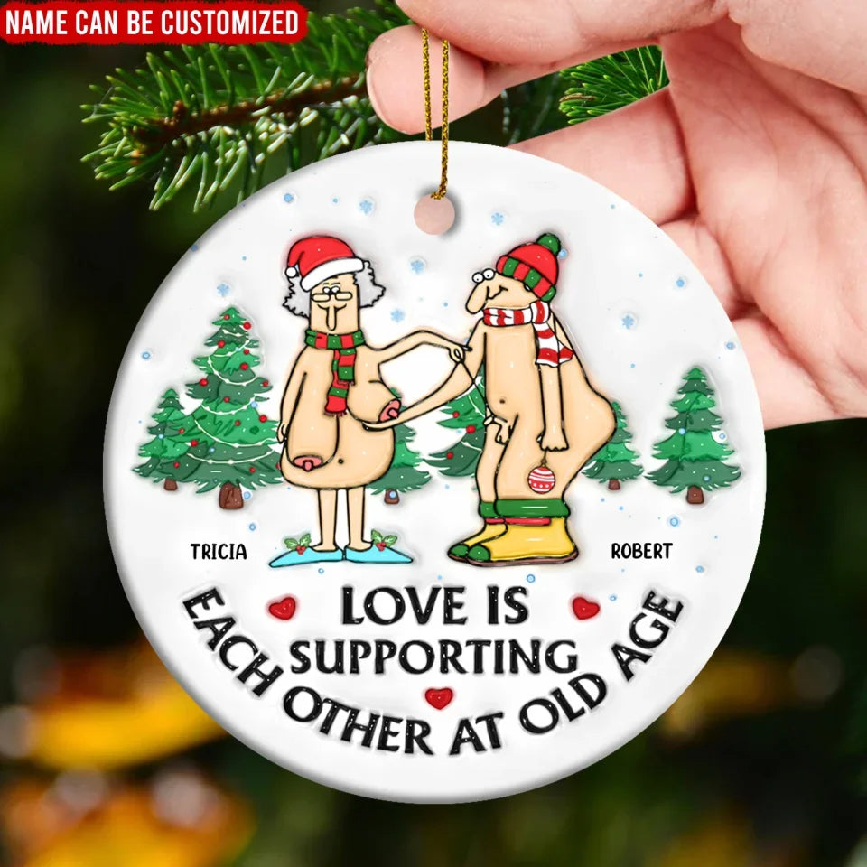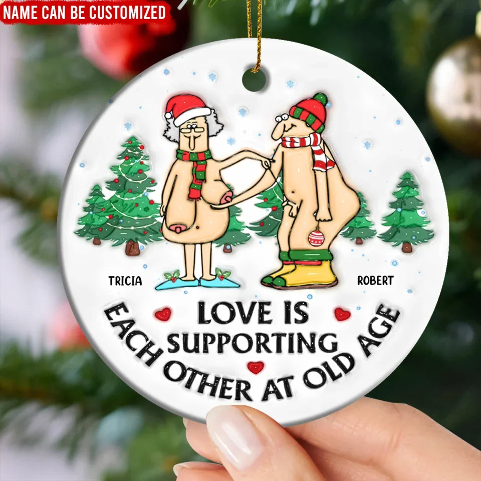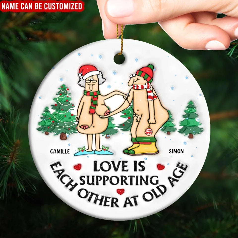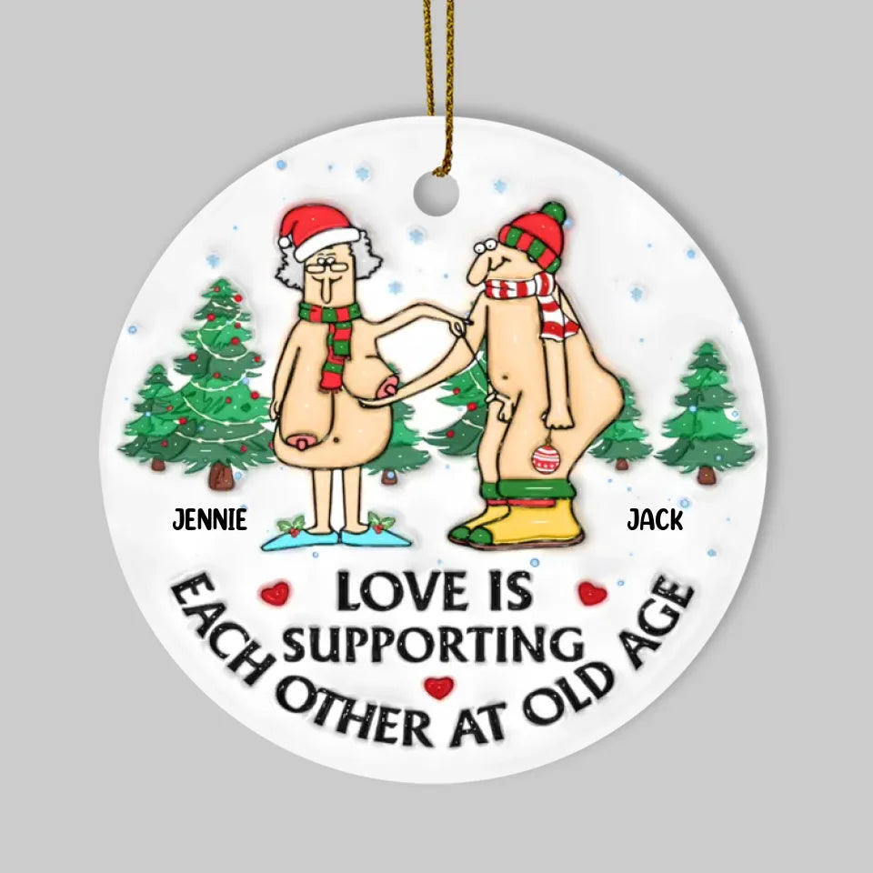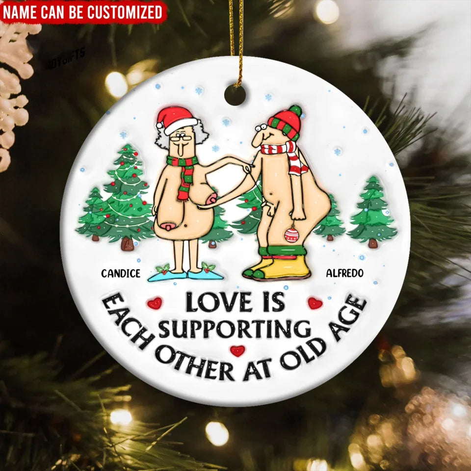 Love Is Supporting Each Other At Old Age - Personalized Ceramic Ornament, Gift for Wife, Husband Gift - ORN416YV