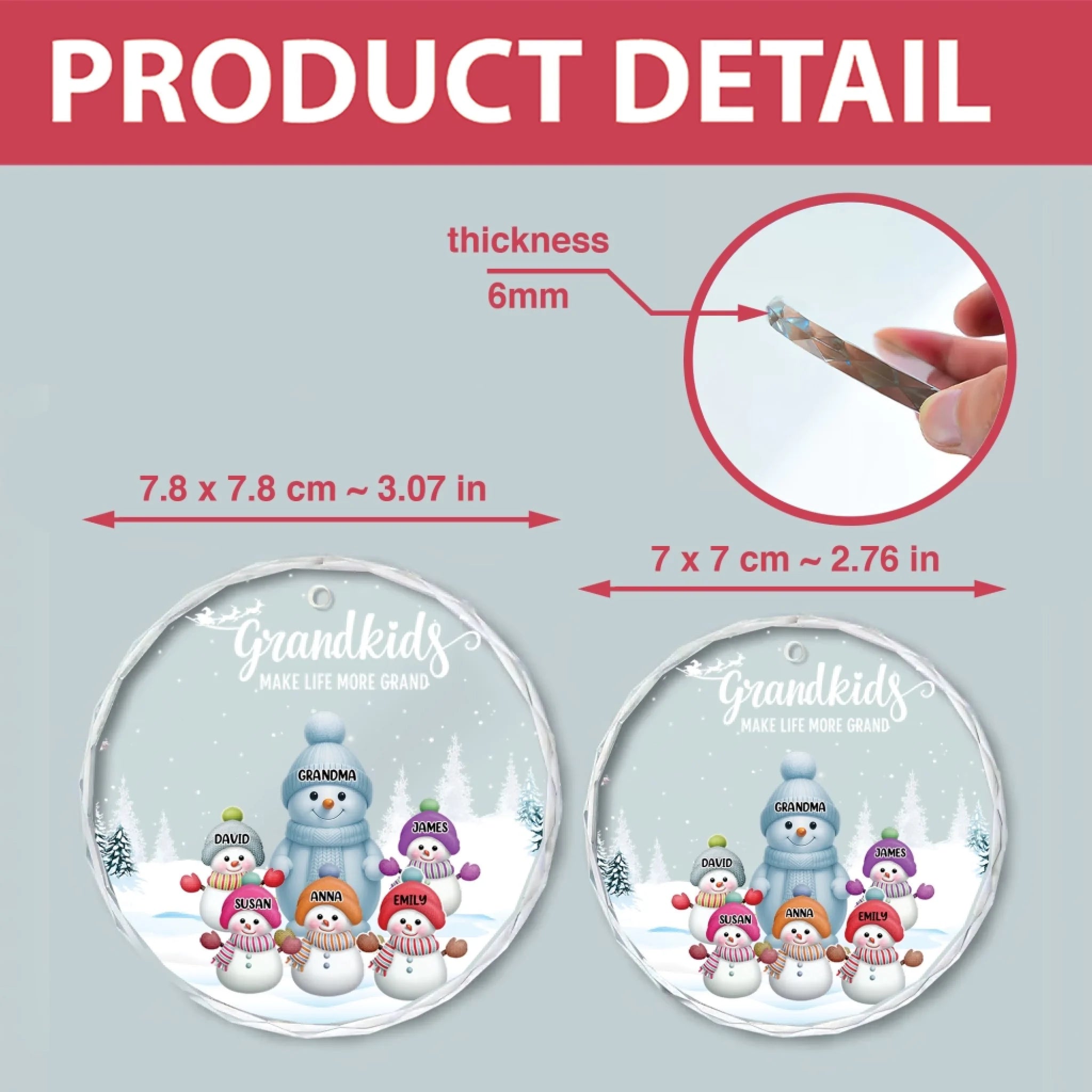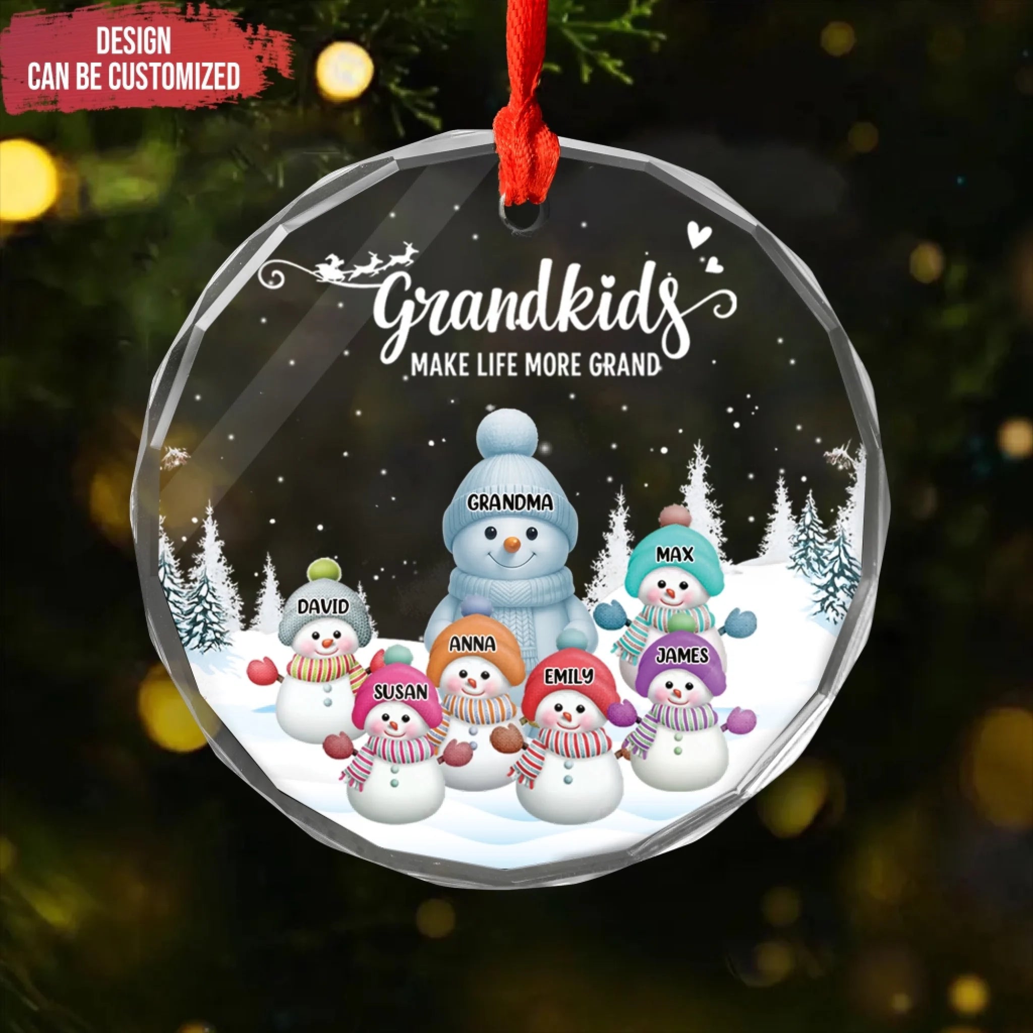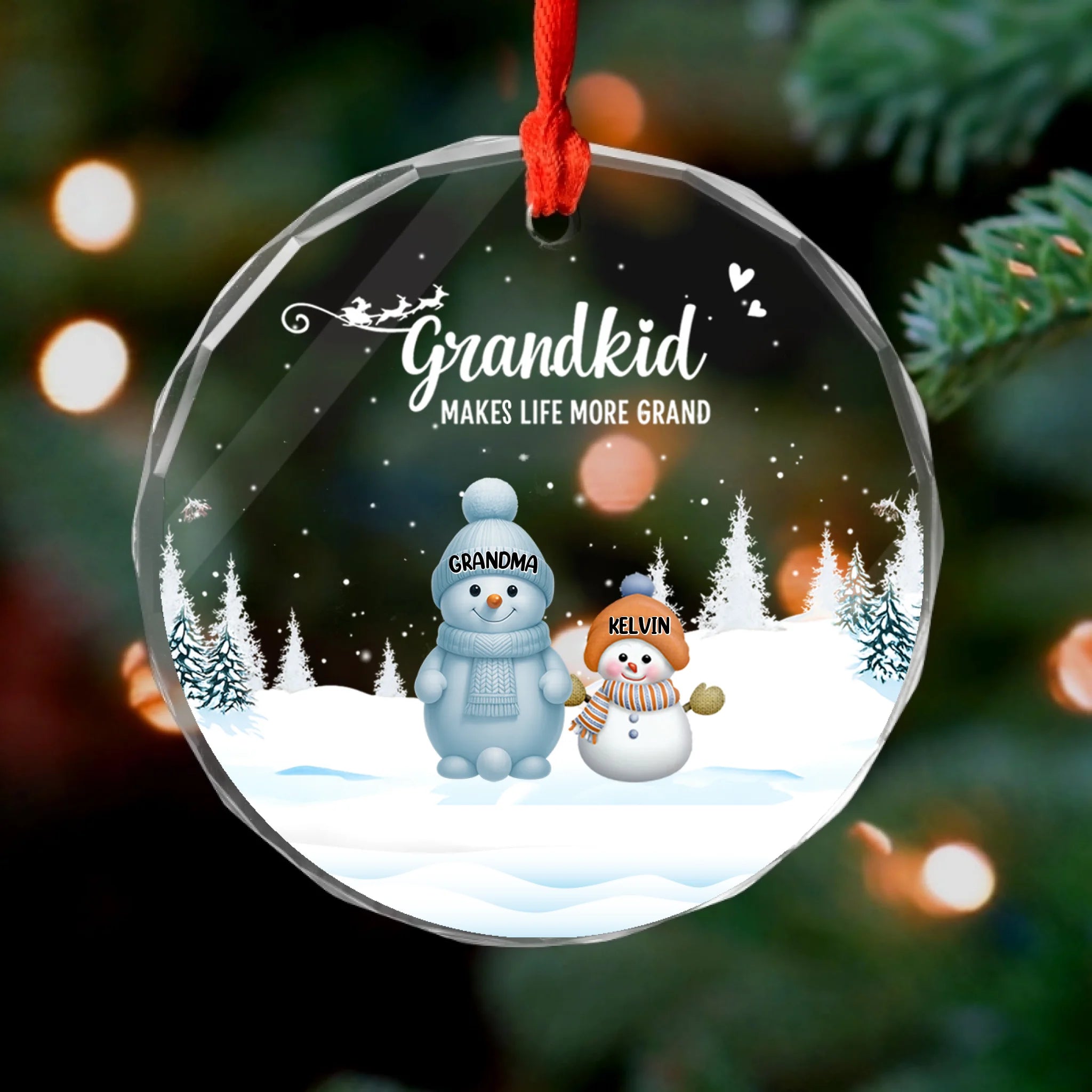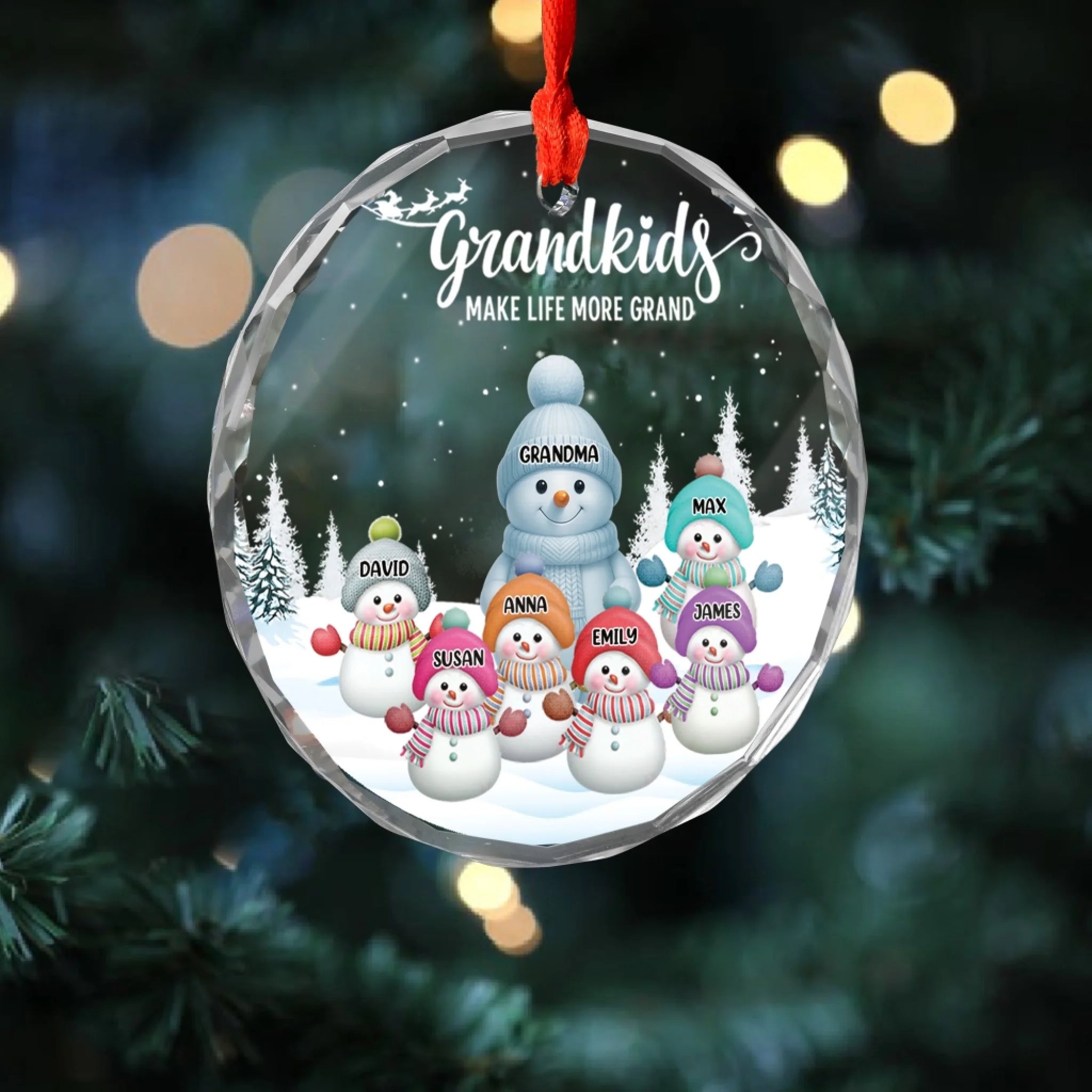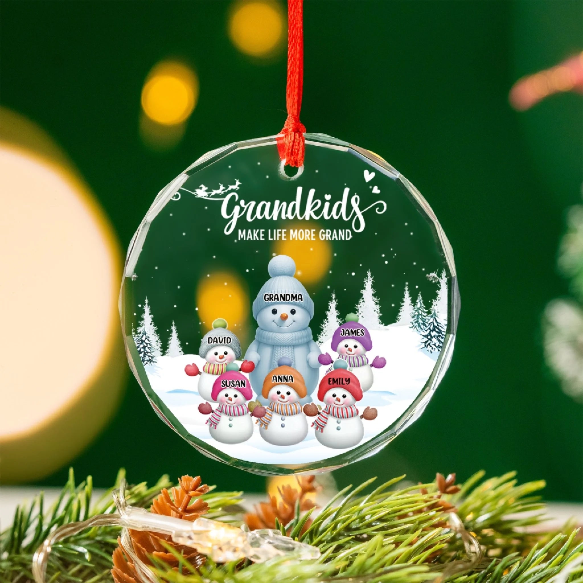 Grandkids Make Life More Grand Snowmen - Personalized Glass Ornament, Gift For Family, Grandma Gift