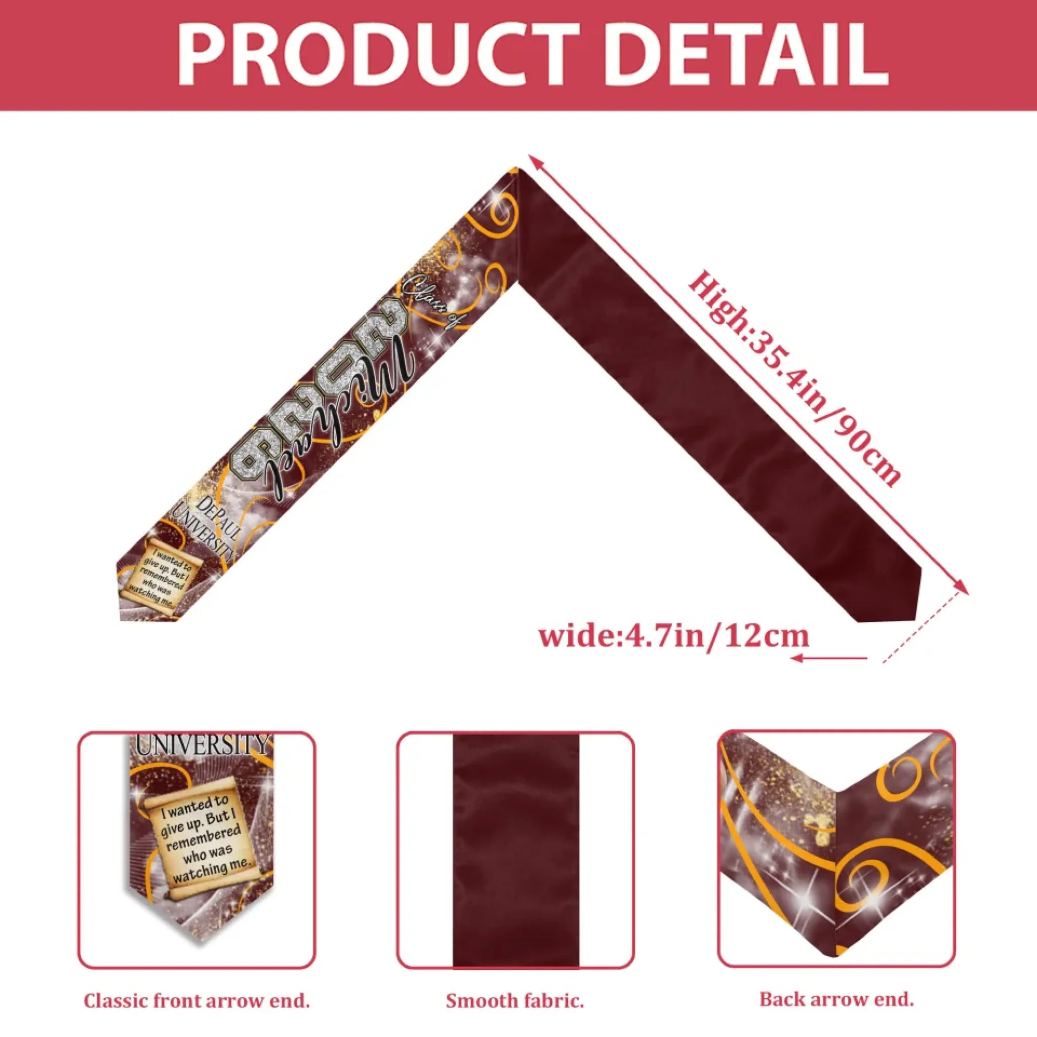 This elegant sash adds a personalized touch to your graduation day, making it a perfect keepsake for your special milestone.