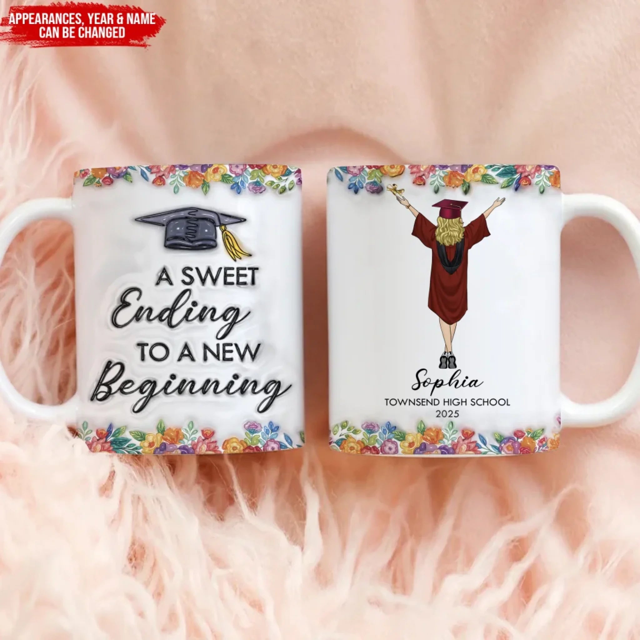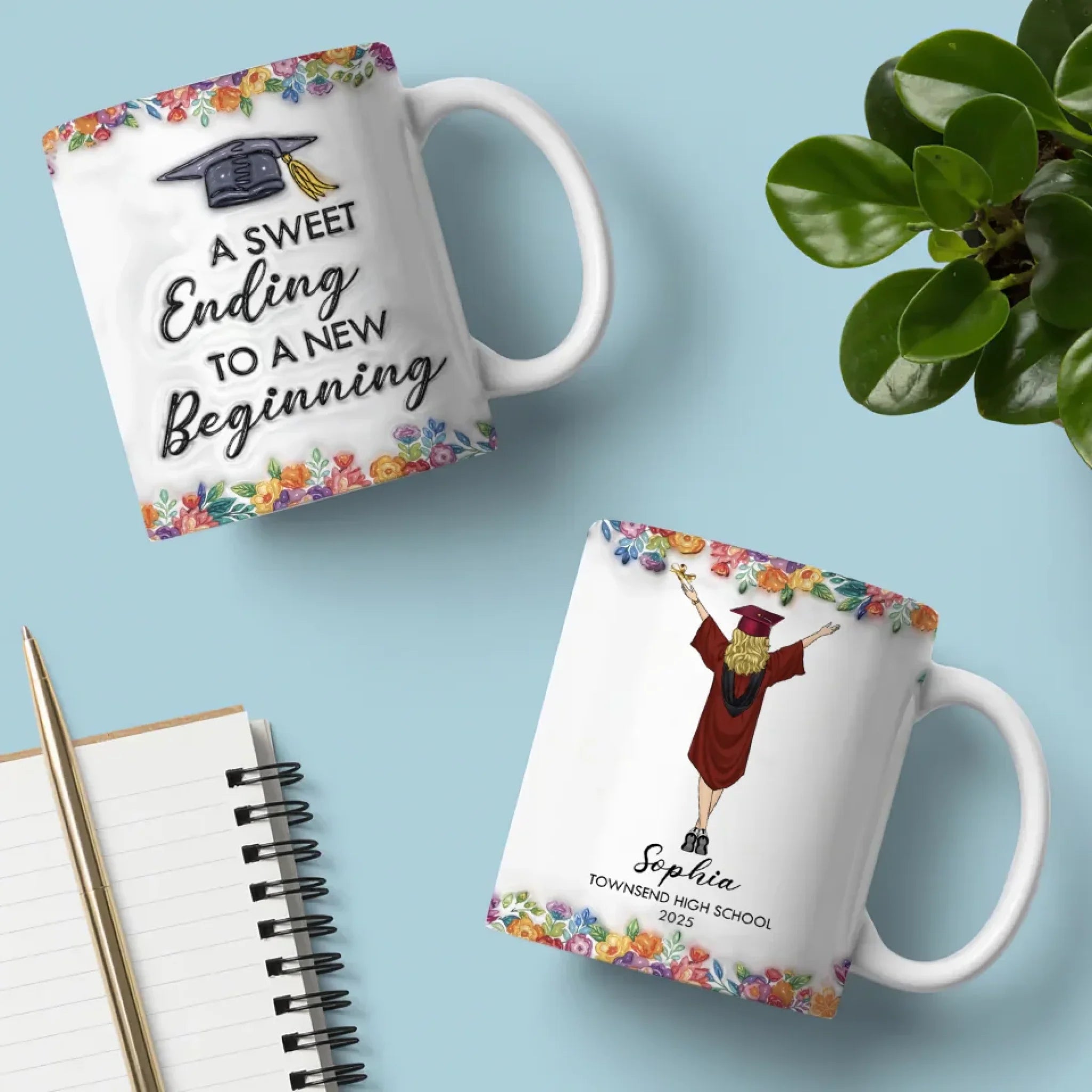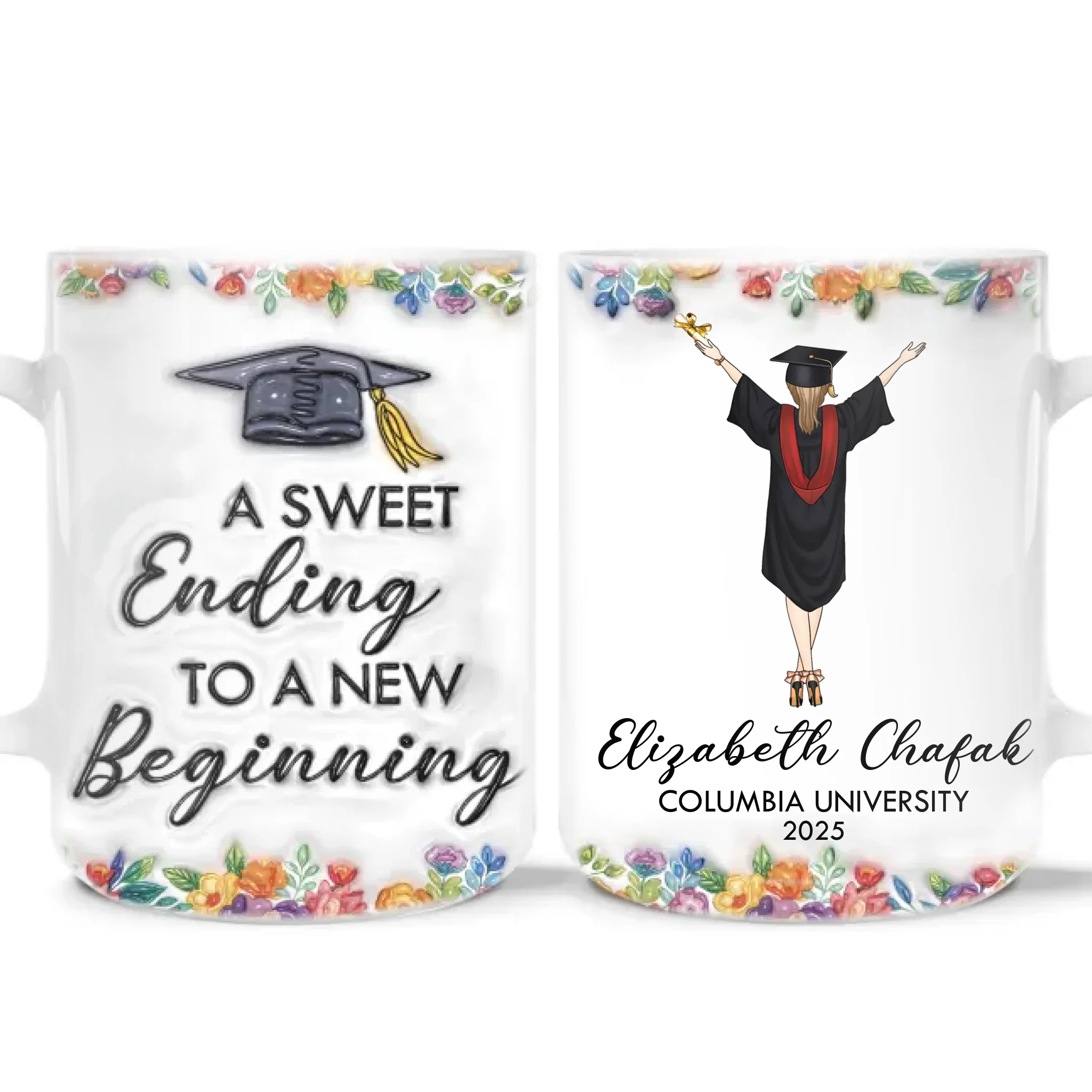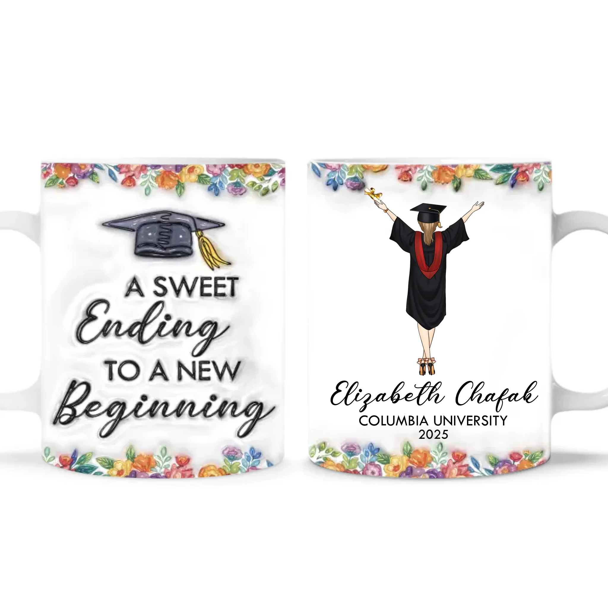 A Sweet Ending To A New Beginning - Personalized Mug, Graduation Gift for Daughter, Granddaughter, Sister