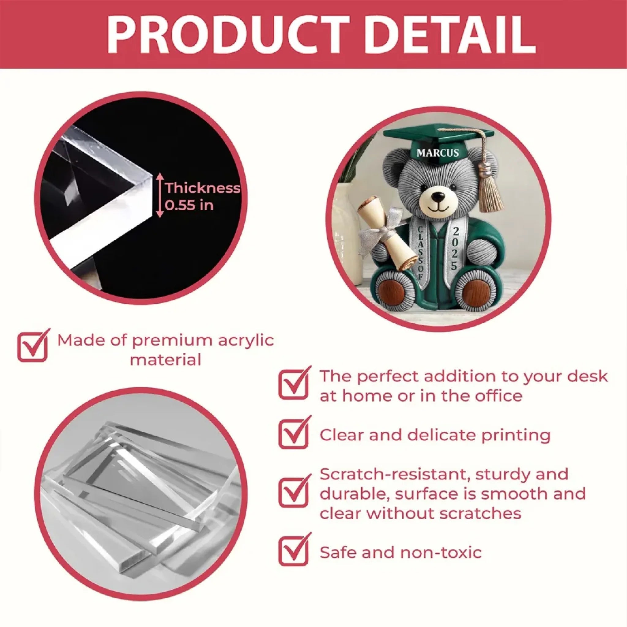 • Made of acrylic plexiglass, environmentally friendly, pollution-free, and odorless.