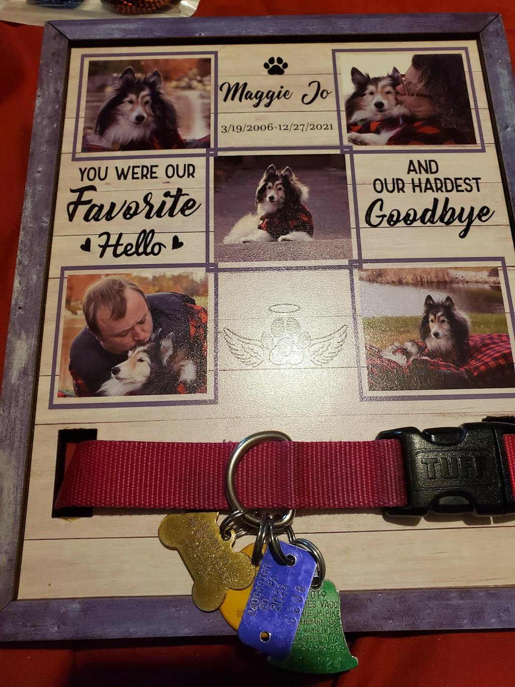 Pets are family and it’s heartbreaking when they cross the rainbow bridge. And dog’s, cat's collars in a memory box for years and we thought it was time to celebrate their lives and showcase their memories in a better way, so we created these pet memorial signs to showcase each of their individual collars, and be able to see them every day. These beautiful wooden signs are a sweet reminder that although they are gone, they are not forgotten. Each sign is individually handmade to celebrate your beloved pet's life and keep their memory alive.