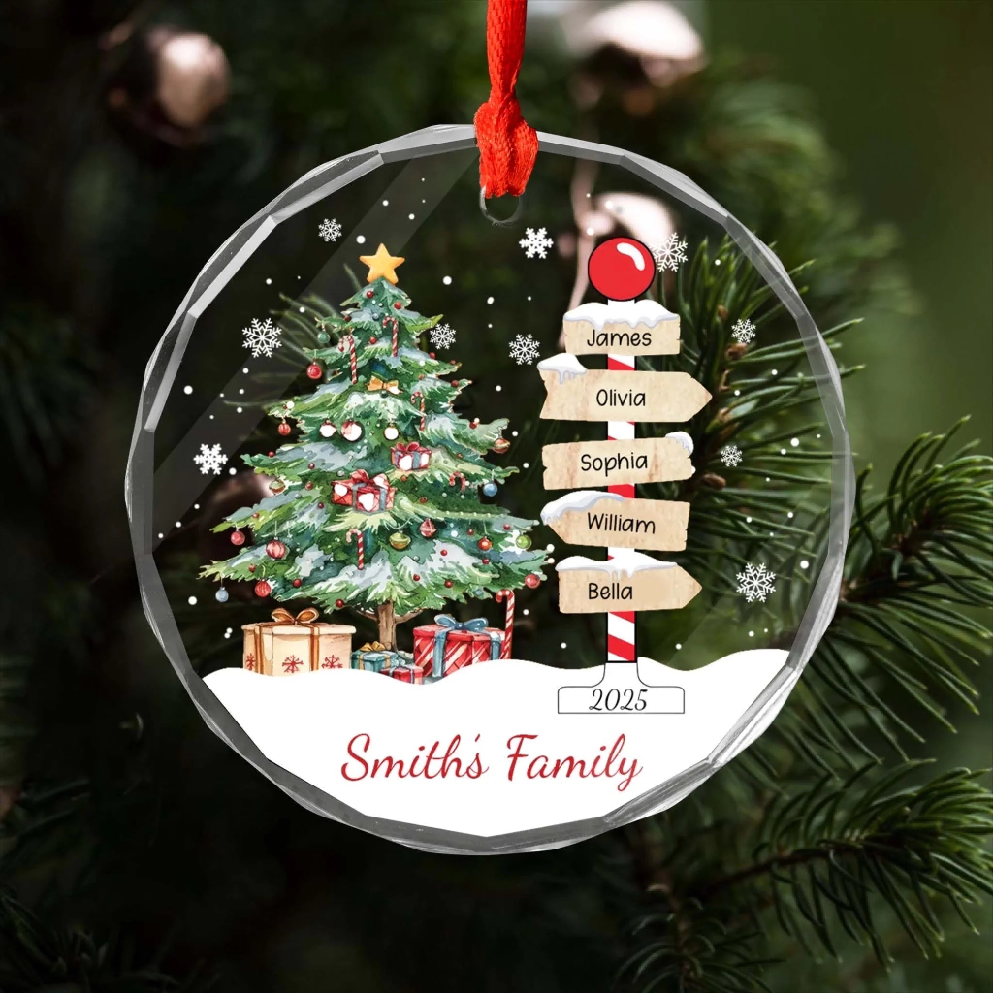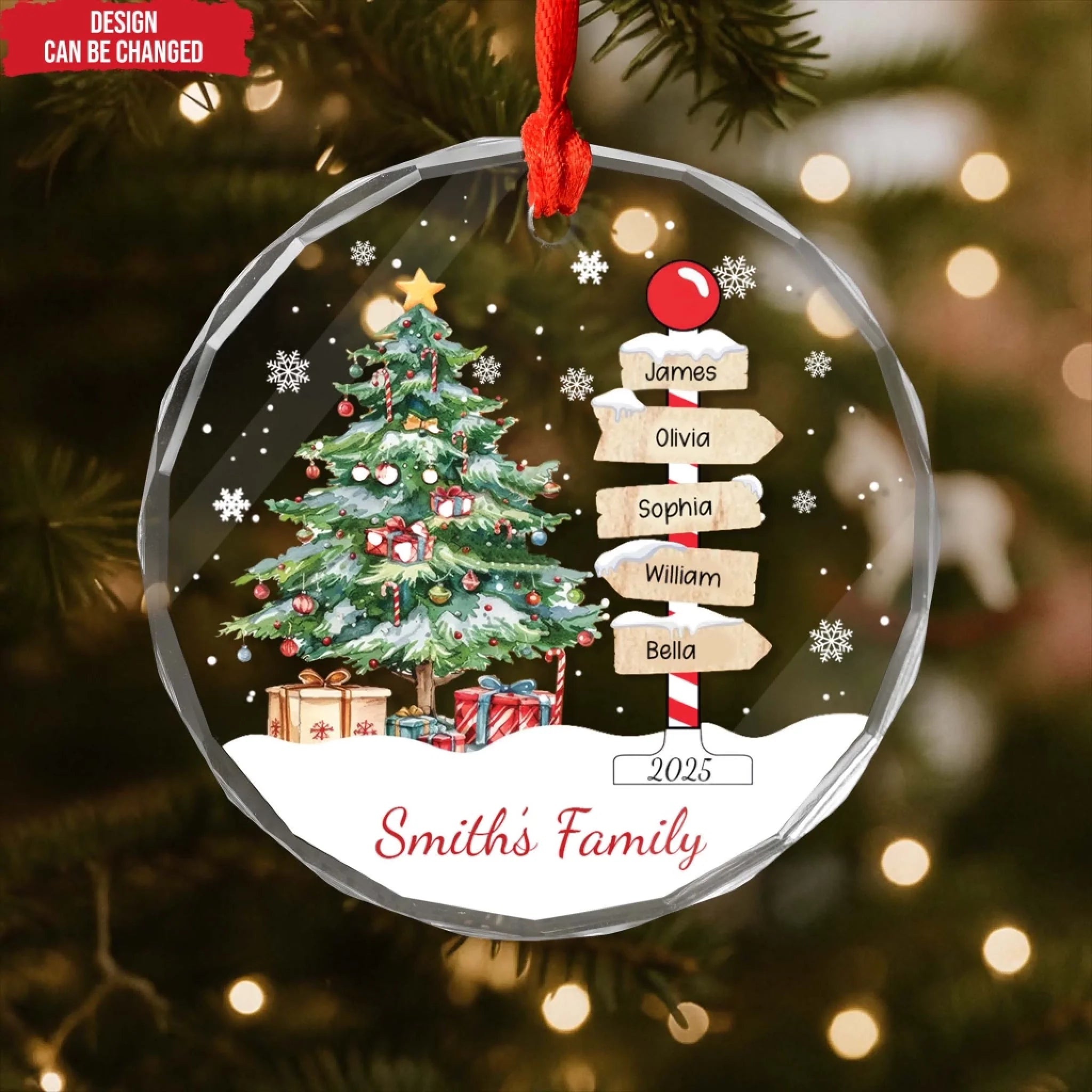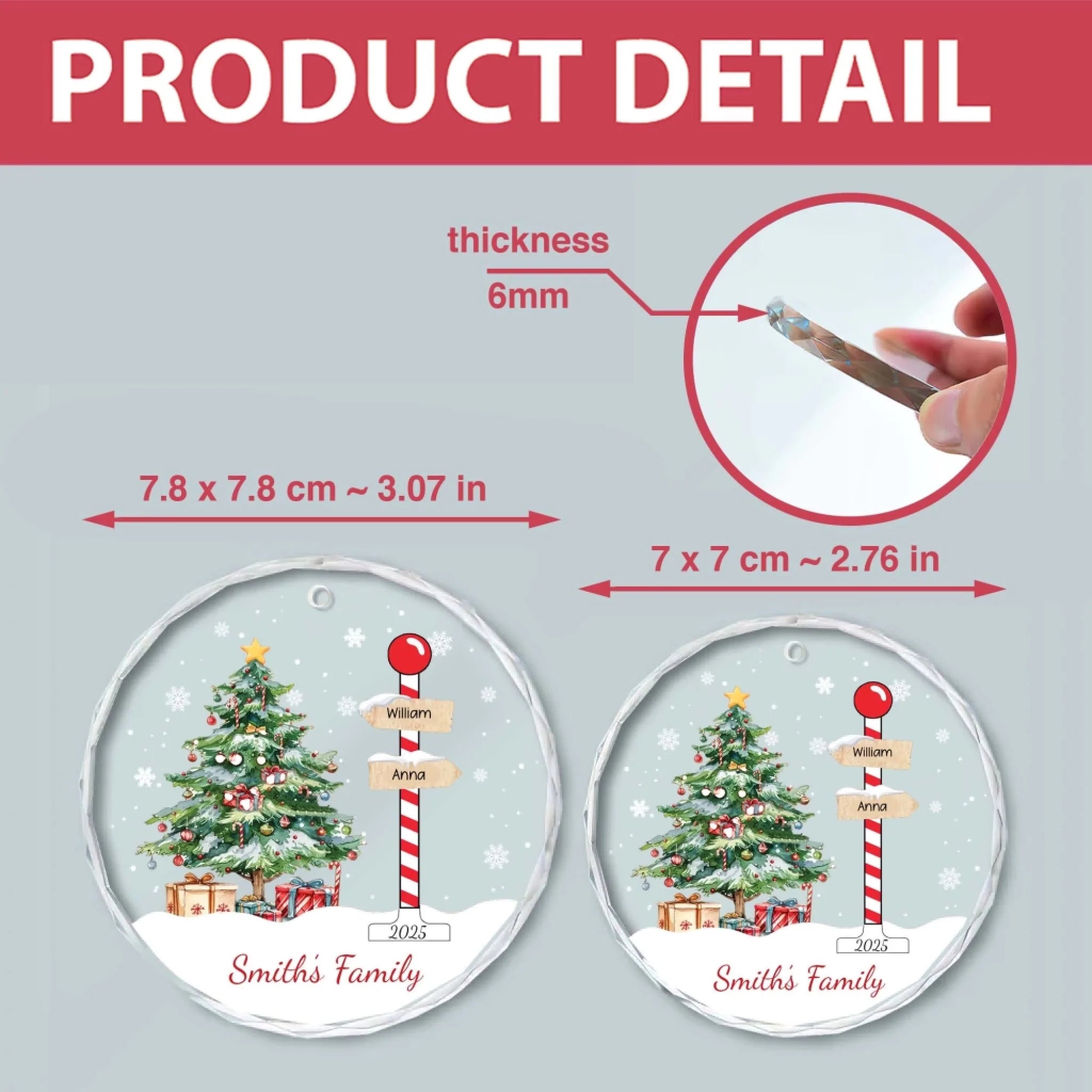 All Roads Lead To Home For The Holidays - Personalized Glass Ornament, Family Name Signpost Christmas Ornament, Christmas Decor 2025