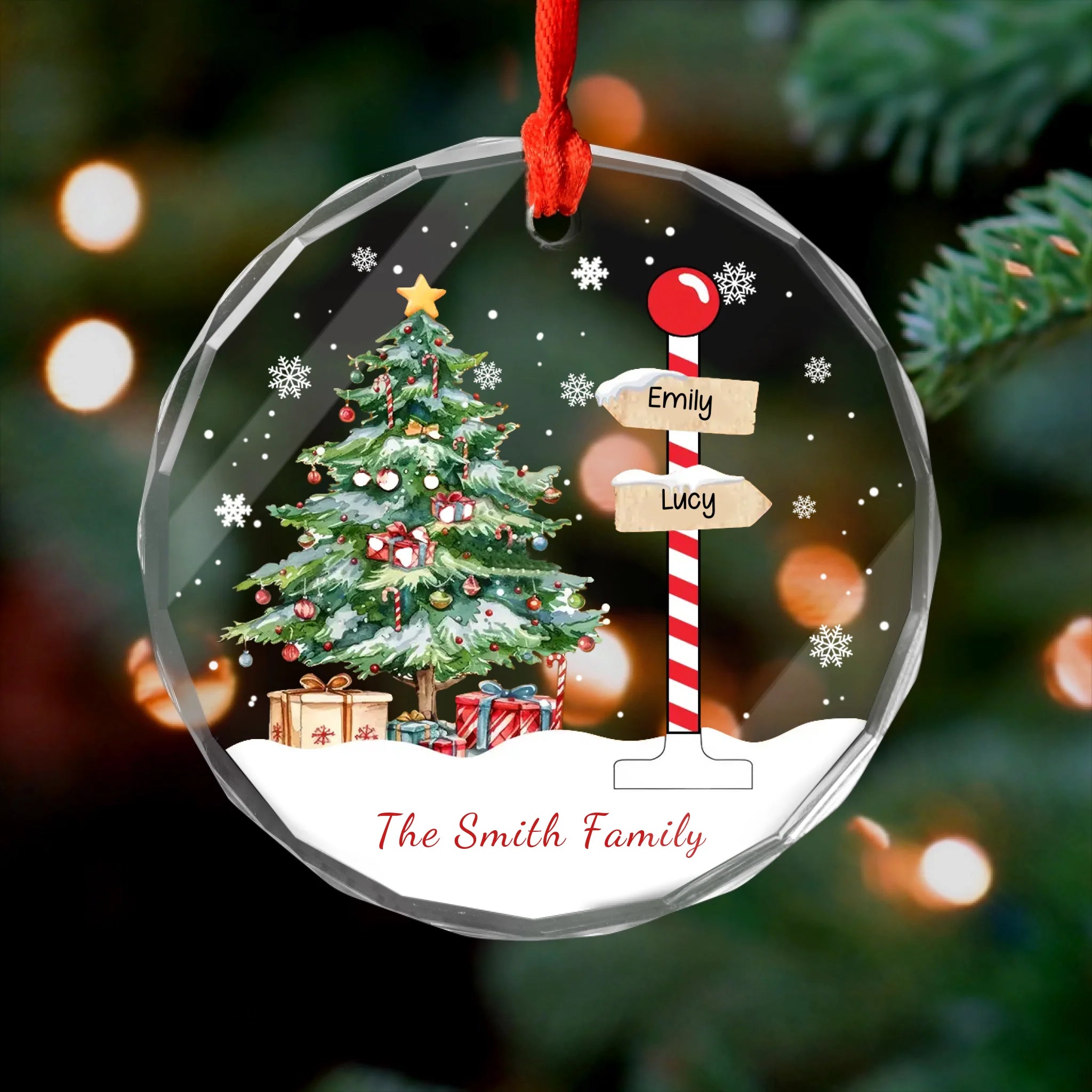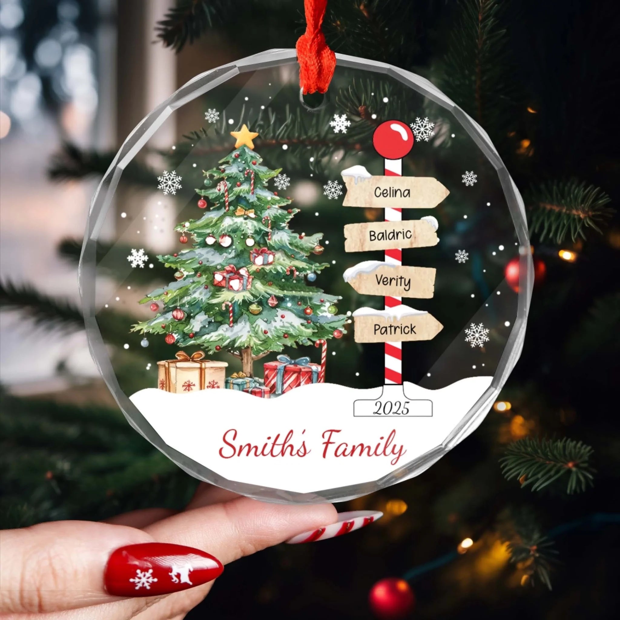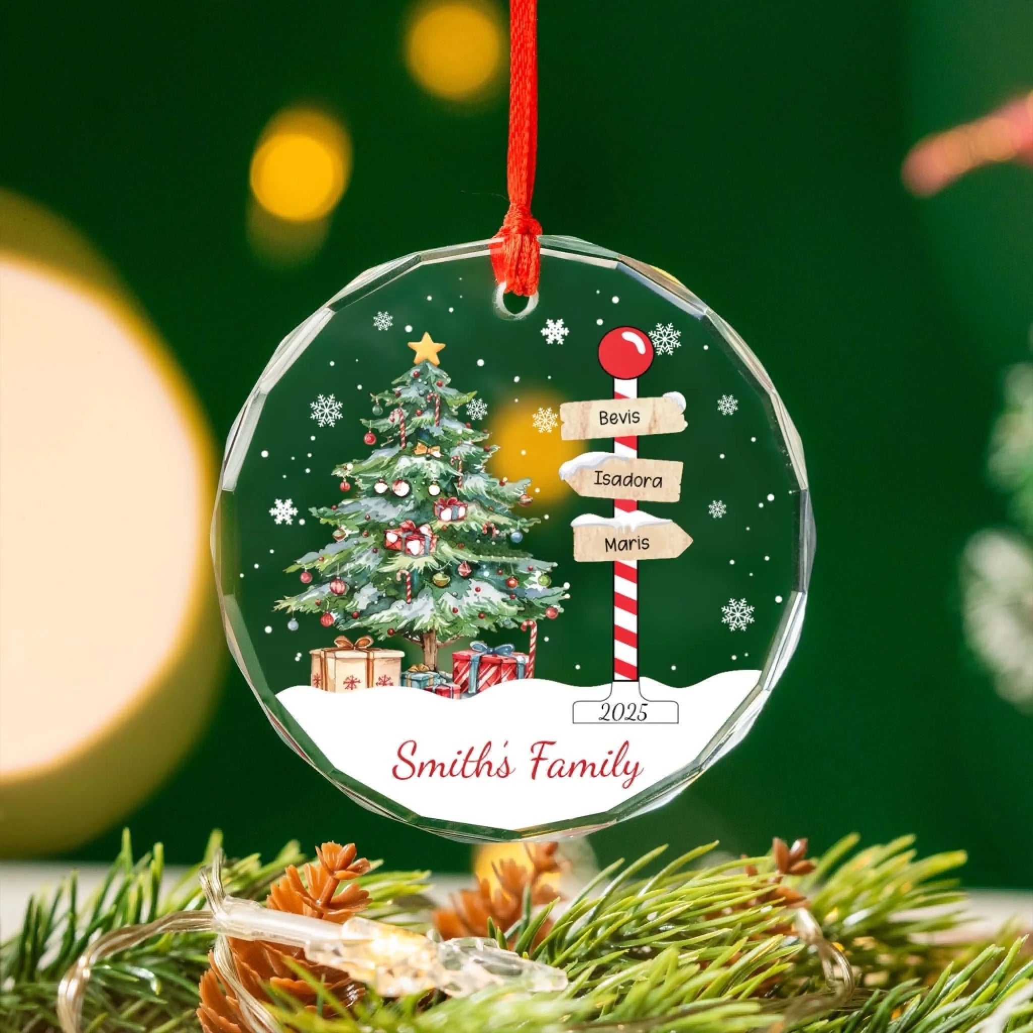 All Roads Lead To Home For The Holidays - Personalized Glass Ornament, Family Name Signpost Christmas Ornament, Christmas Decor 2025