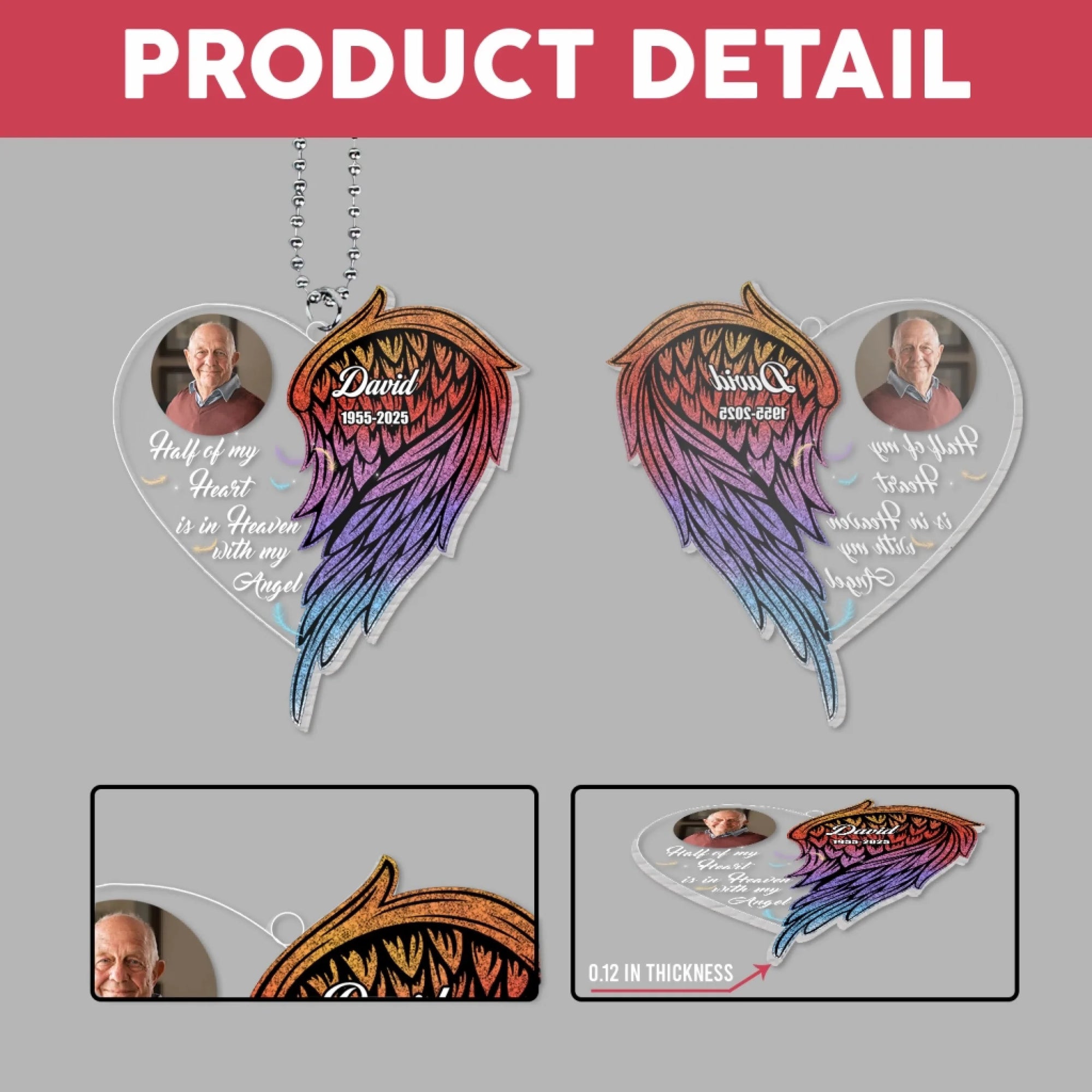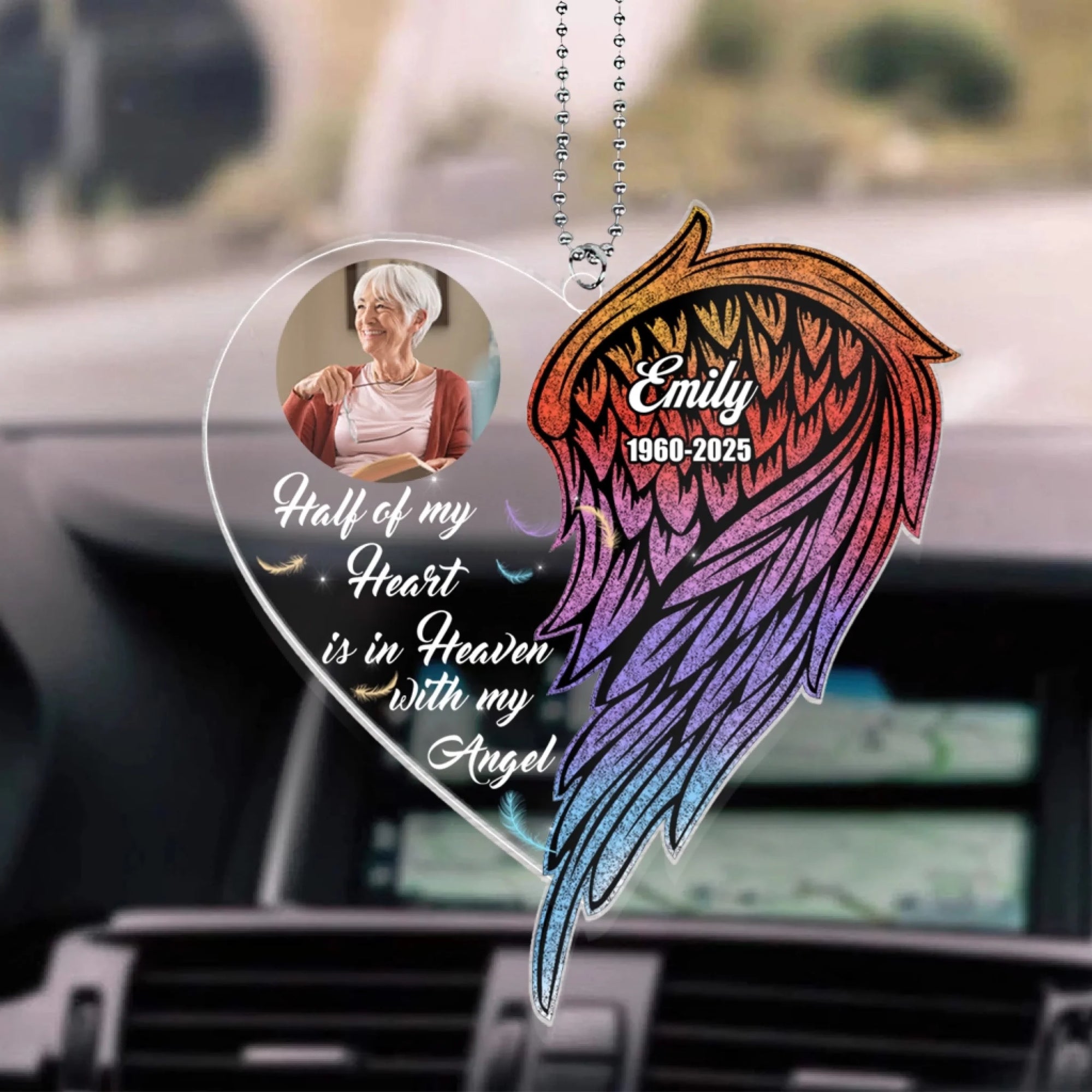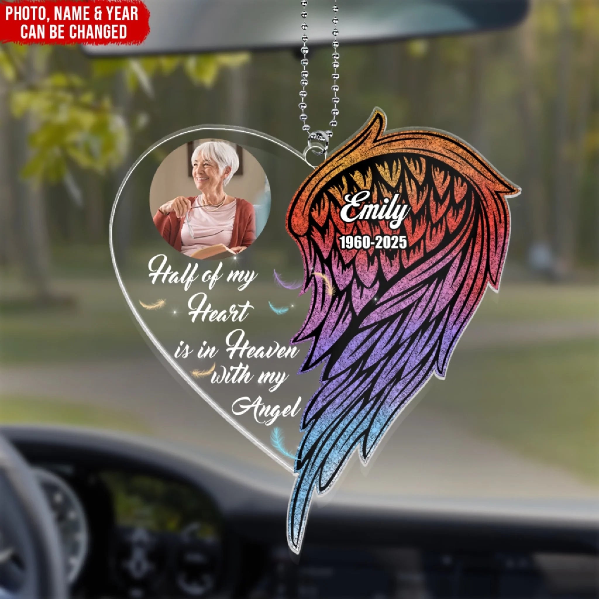 Angel Wings, Half Of My Heart Is In Heaven With My Angel - Personalized Acrylic Car Hanger