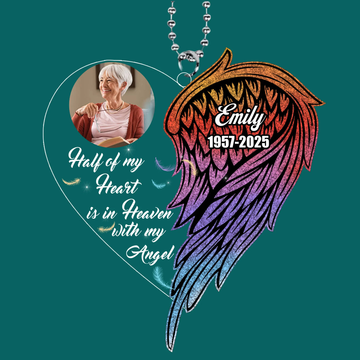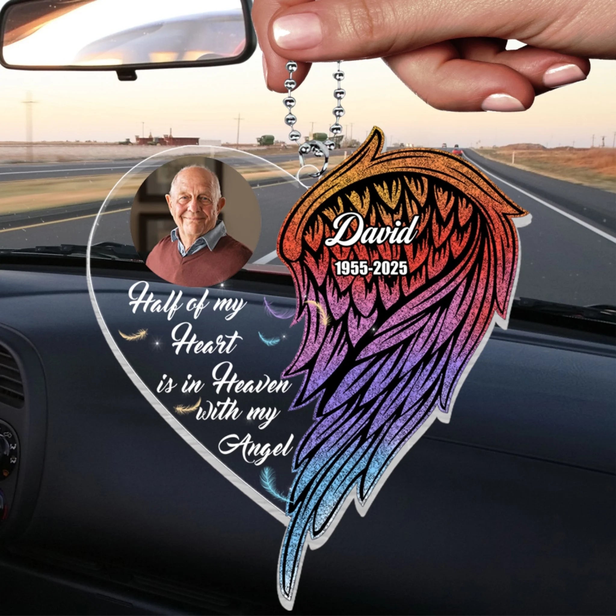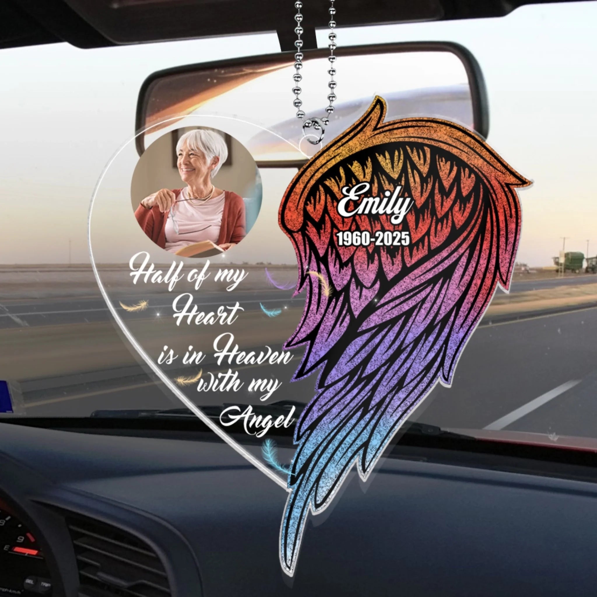 Angel Wings, Half Of My Heart Is In Heaven With My Angel - Personalized Acrylic Car Hanger