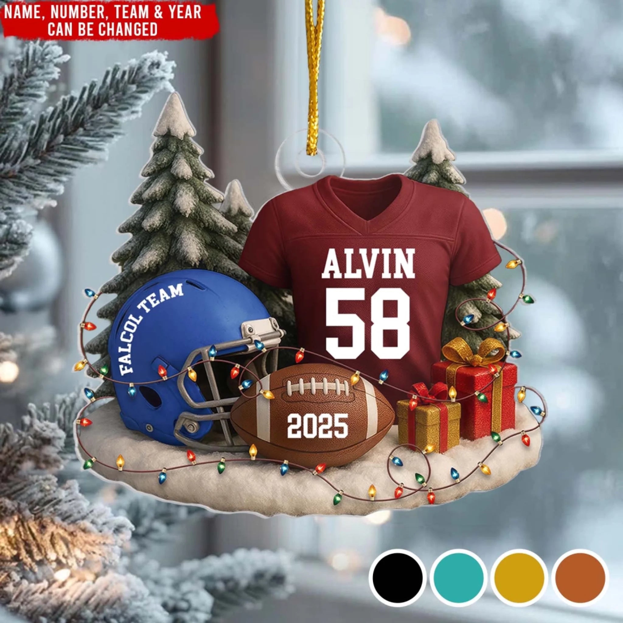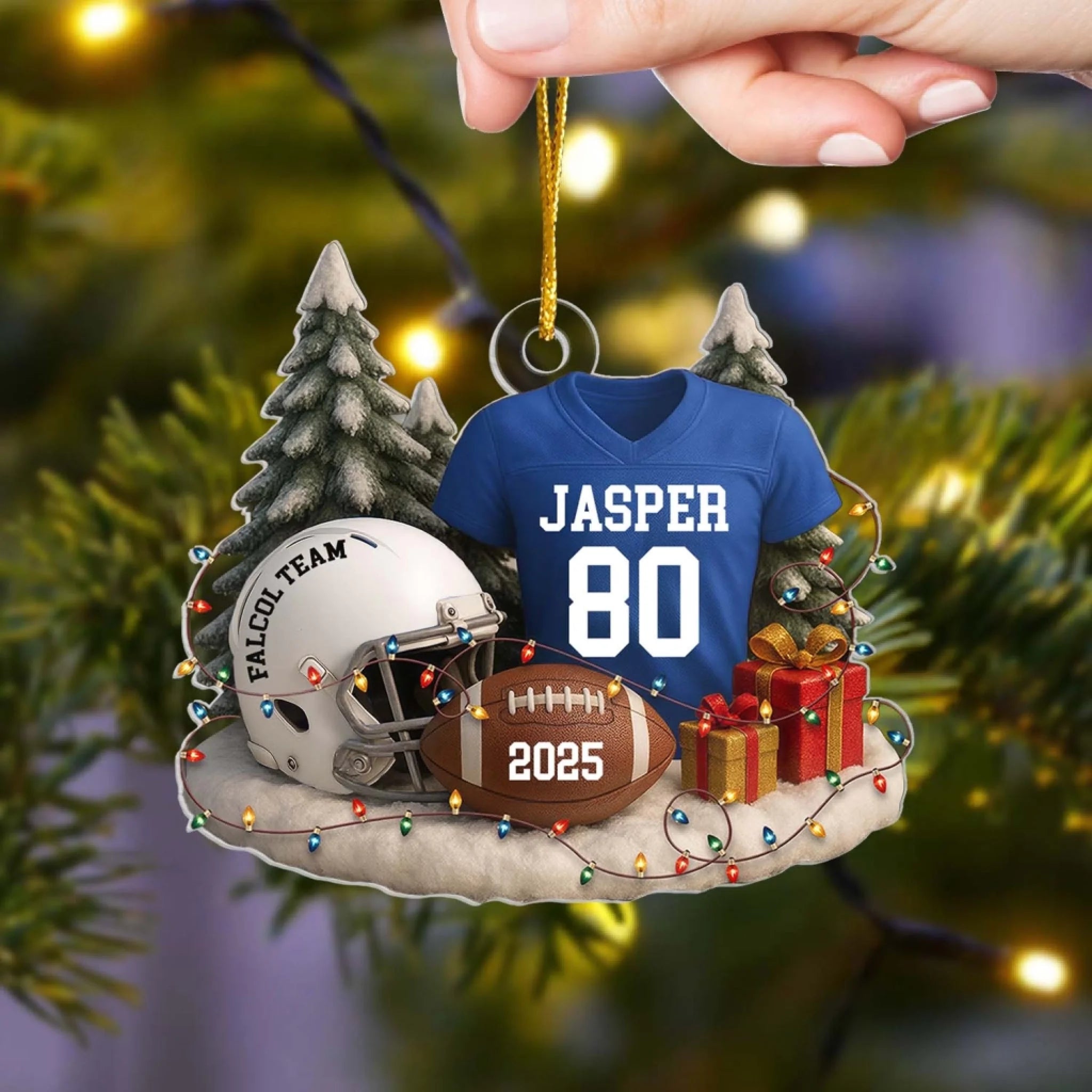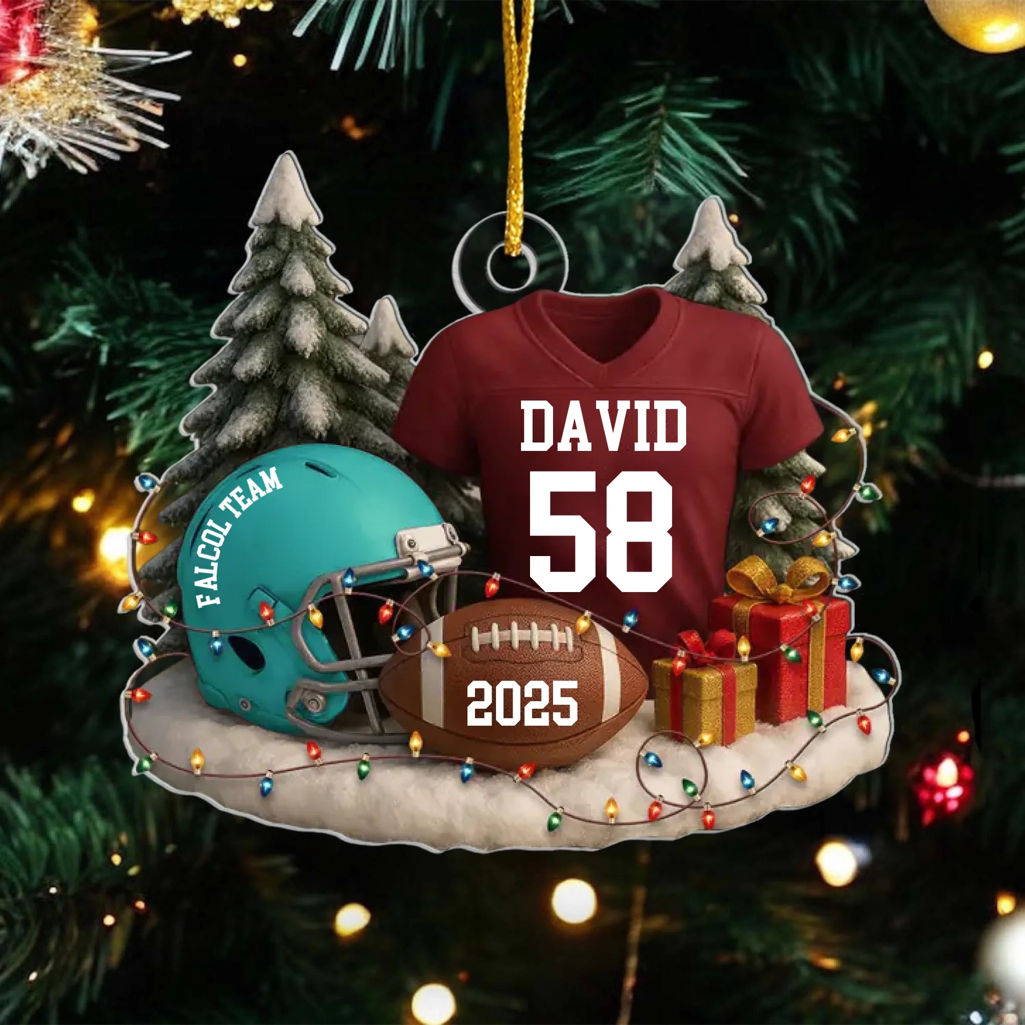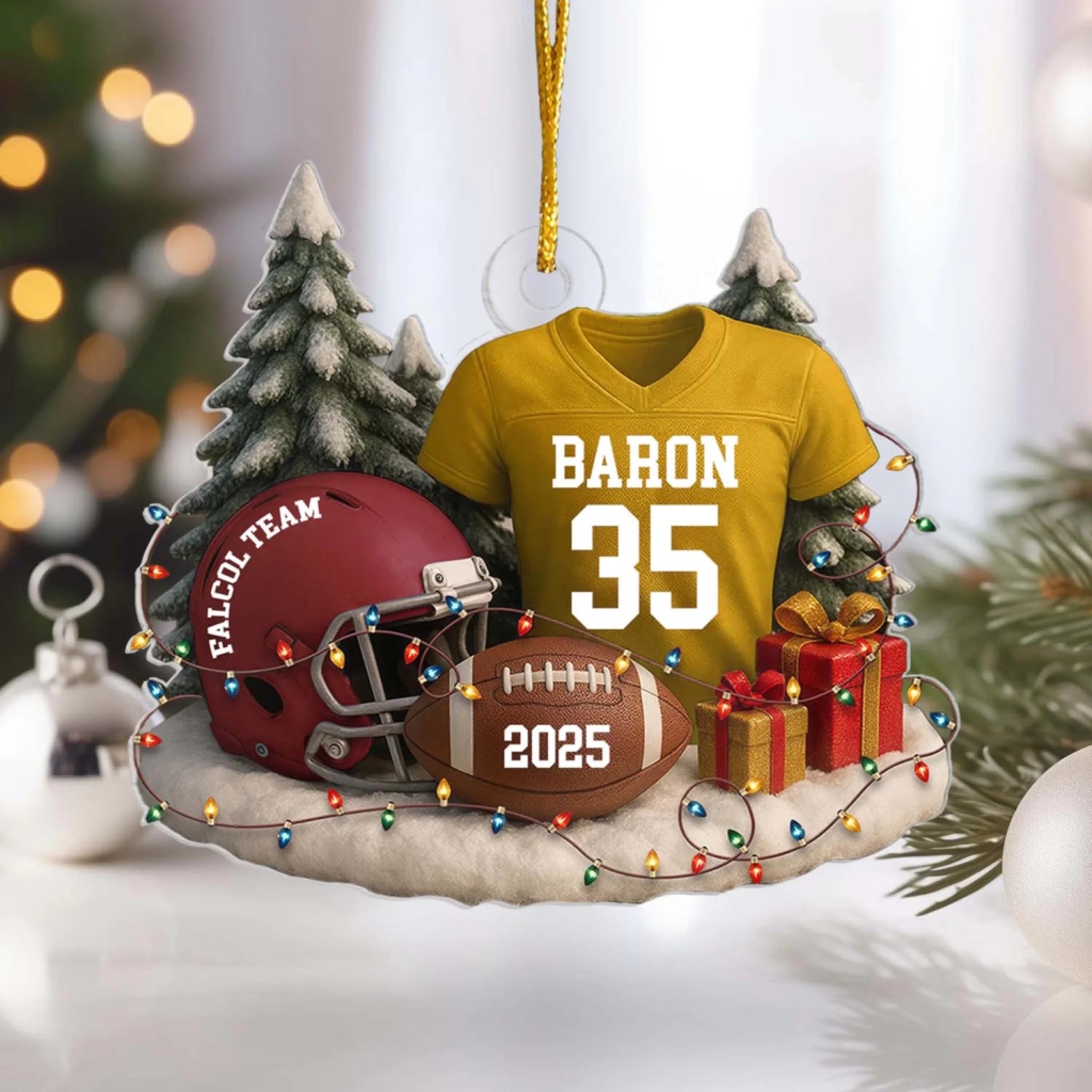Game Day Spirit – Personalized Acrylic Ornament, Custom Name & Team Football Ornament With Jersey & Helmet