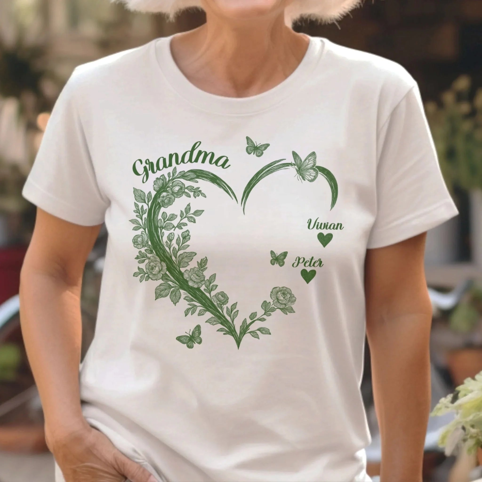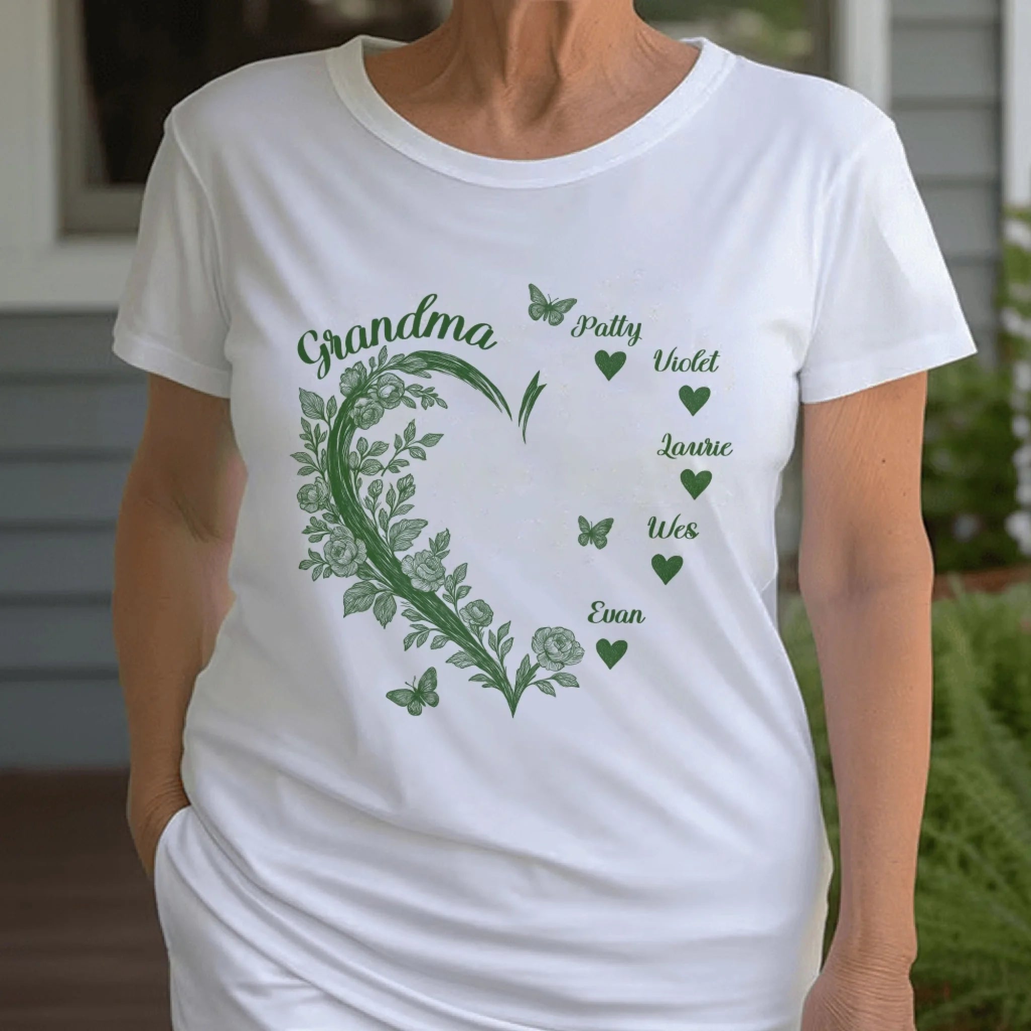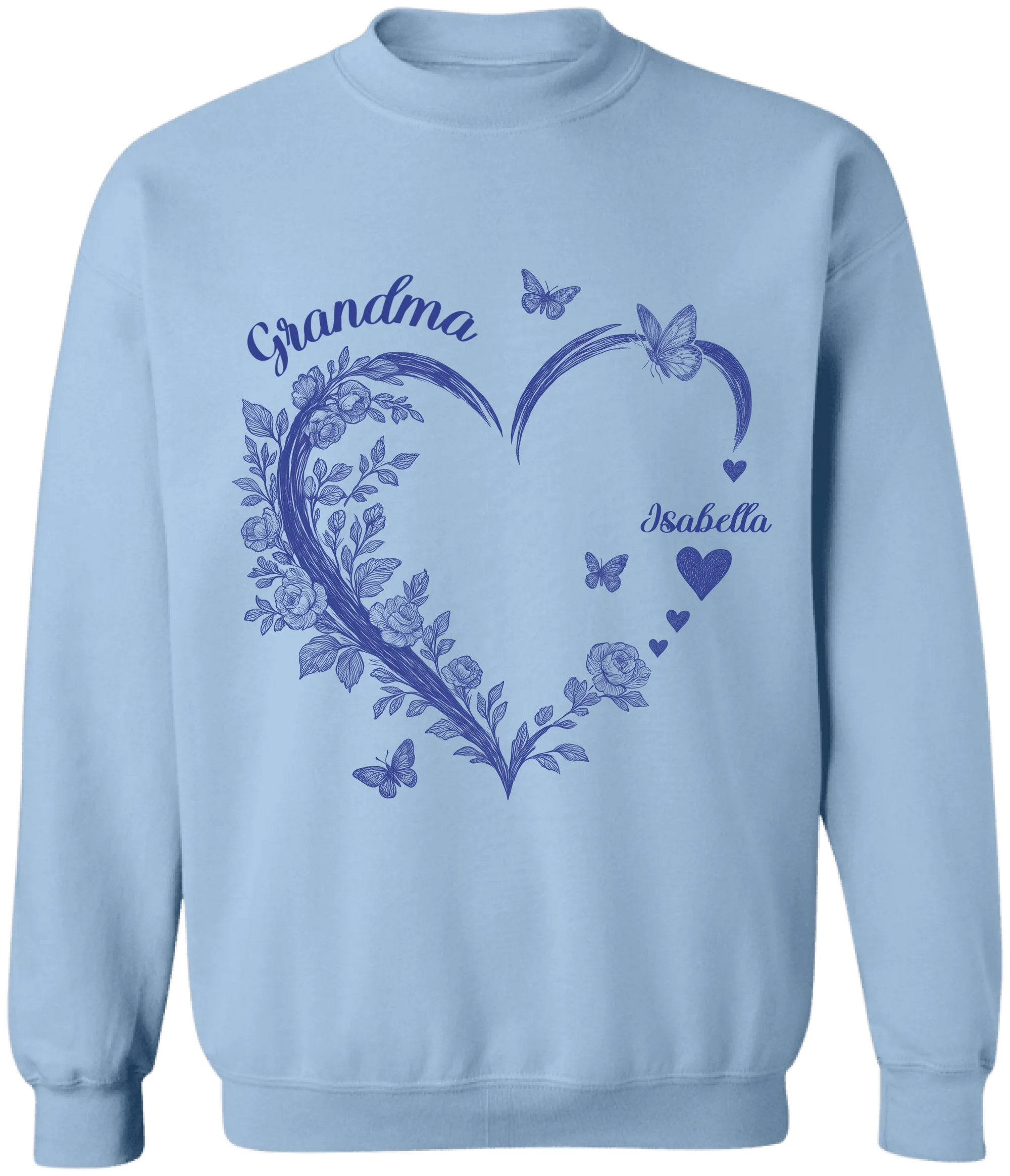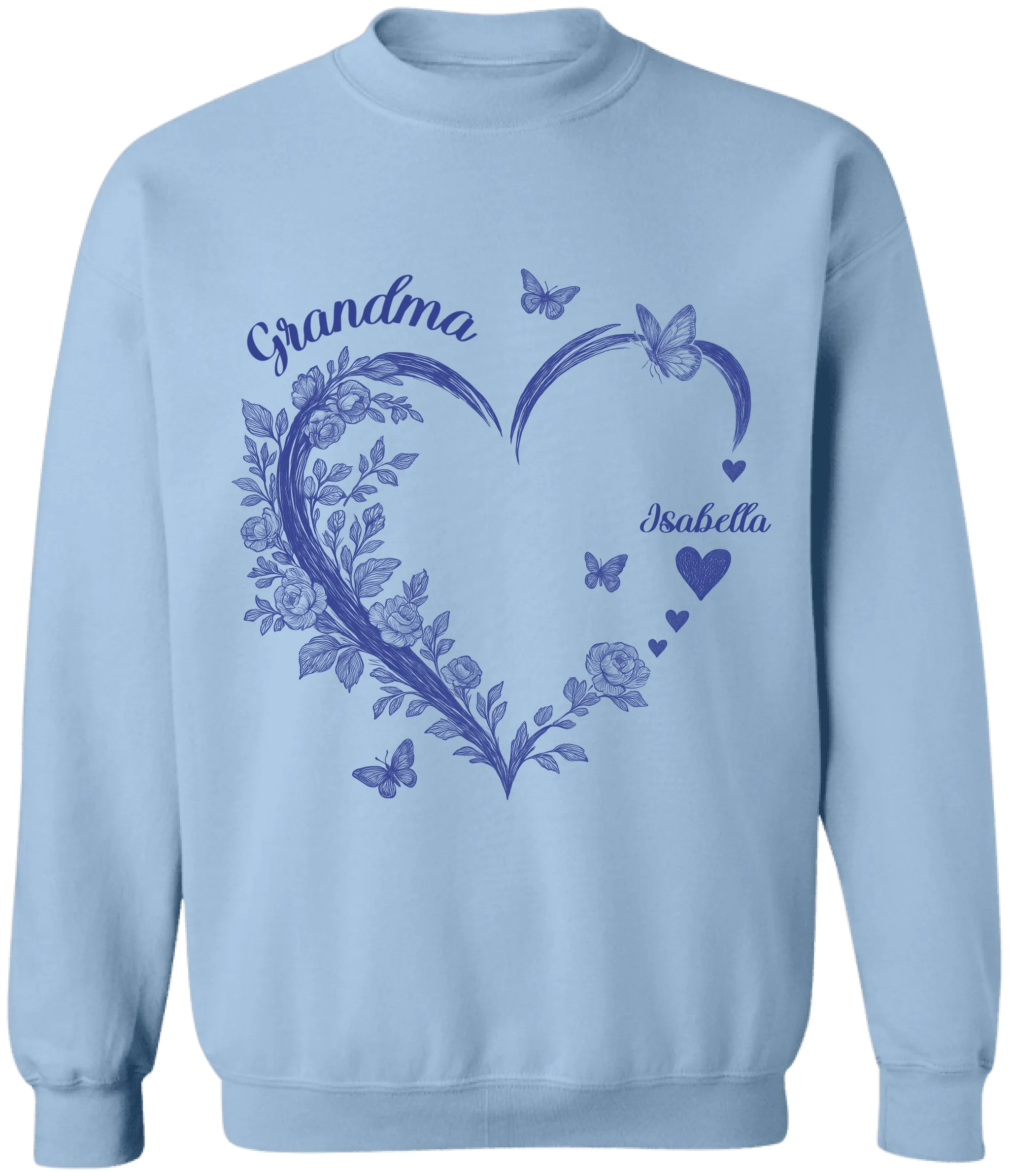 Grandma and Grandkids, Forever In Grandma's Heart - Personalized T-Shirt, Gift For Grandma, Blue Toile De Jouy Shirt