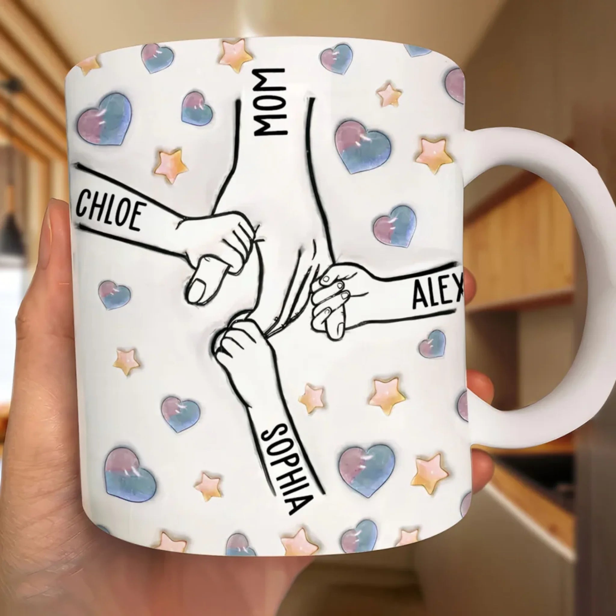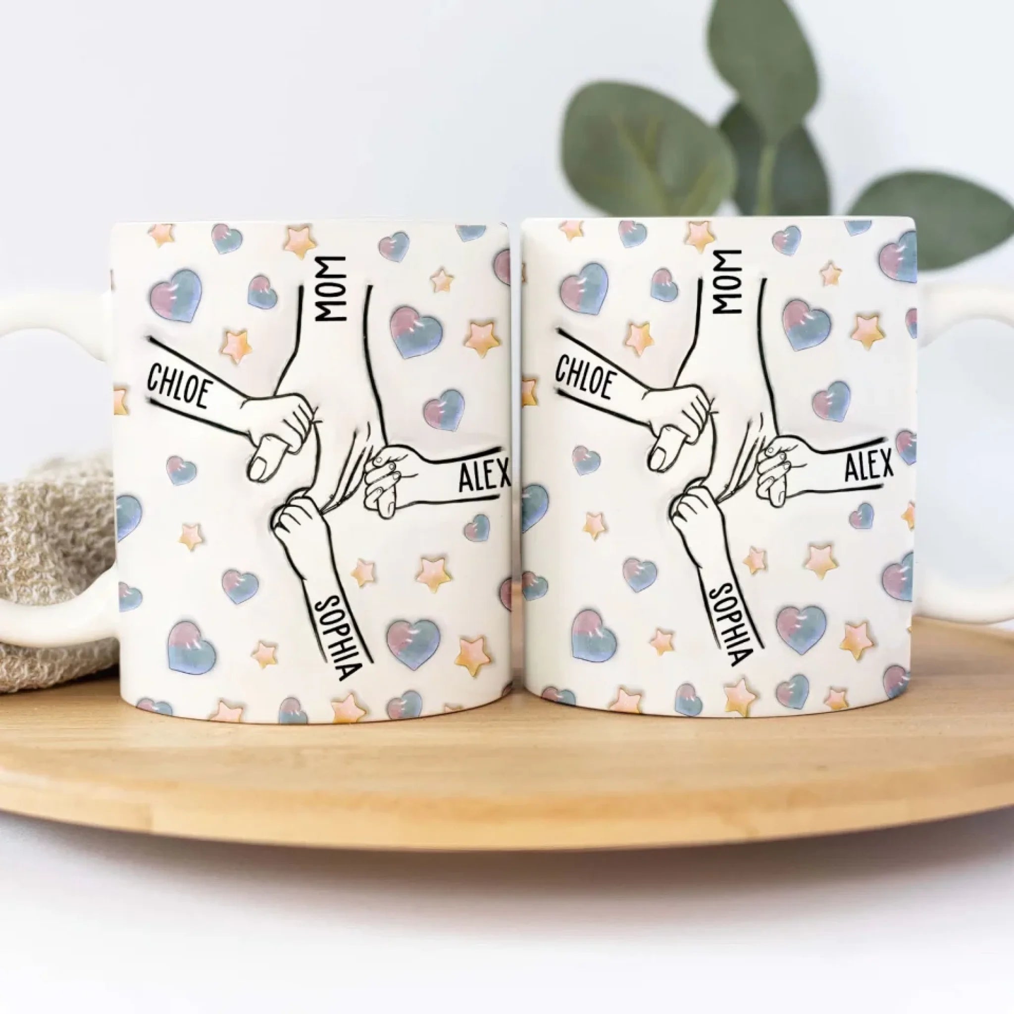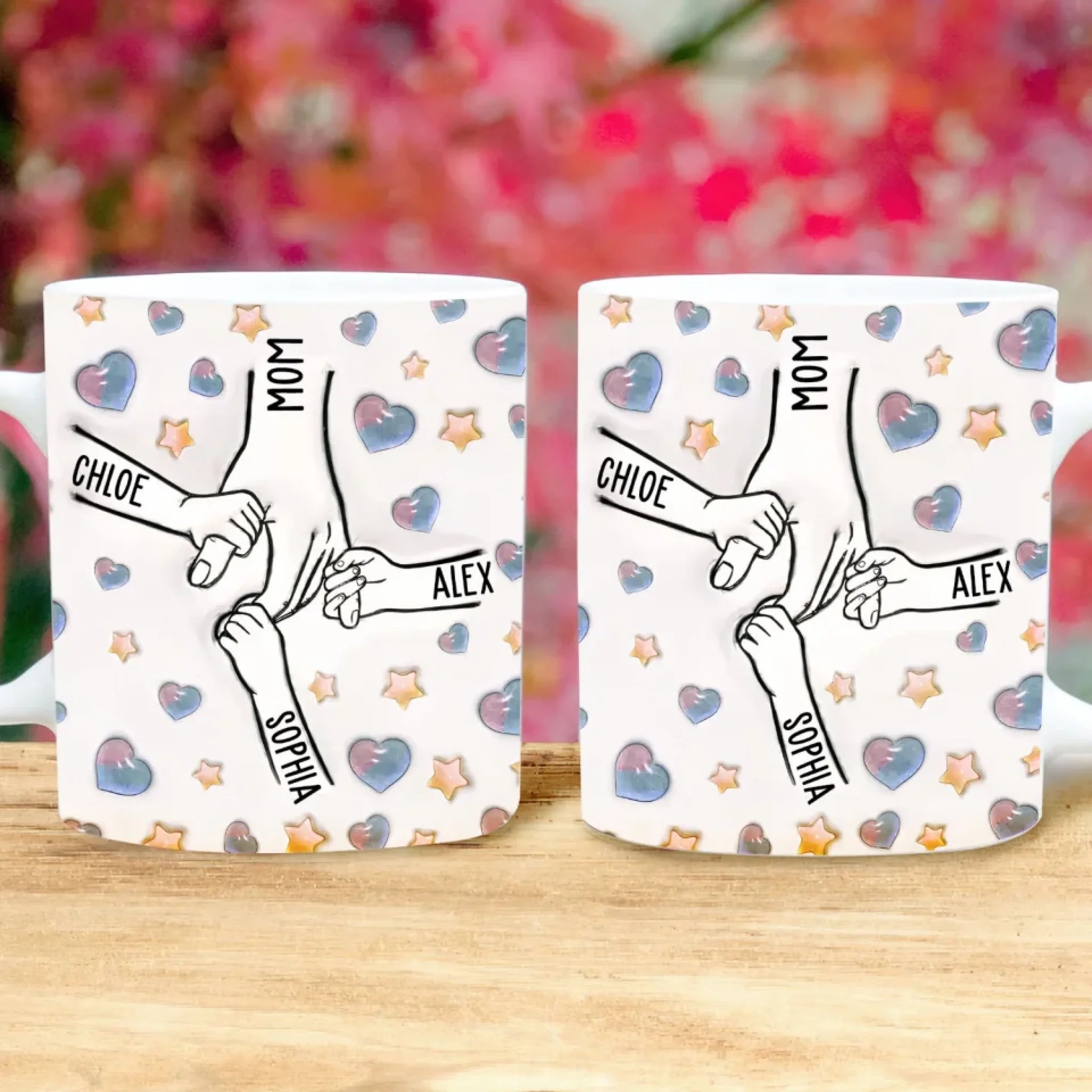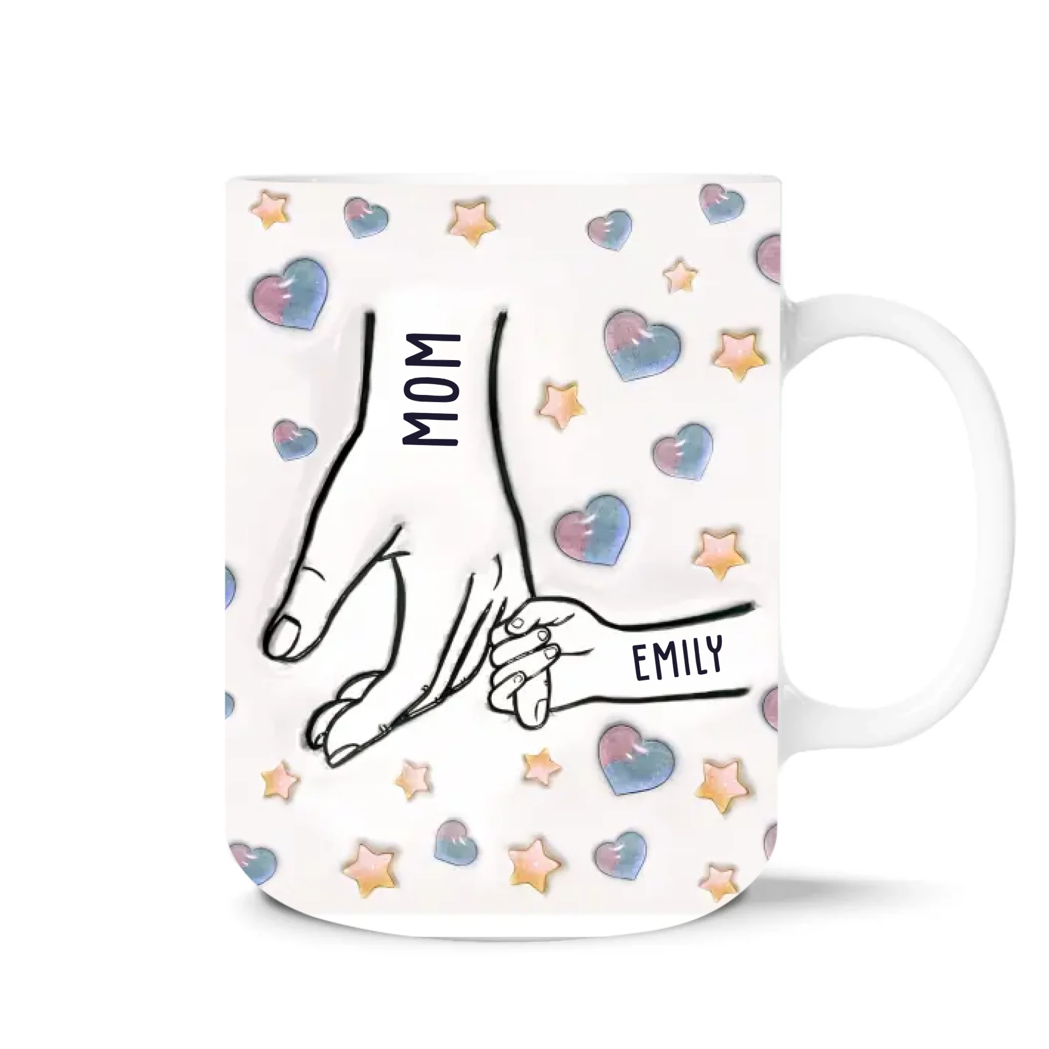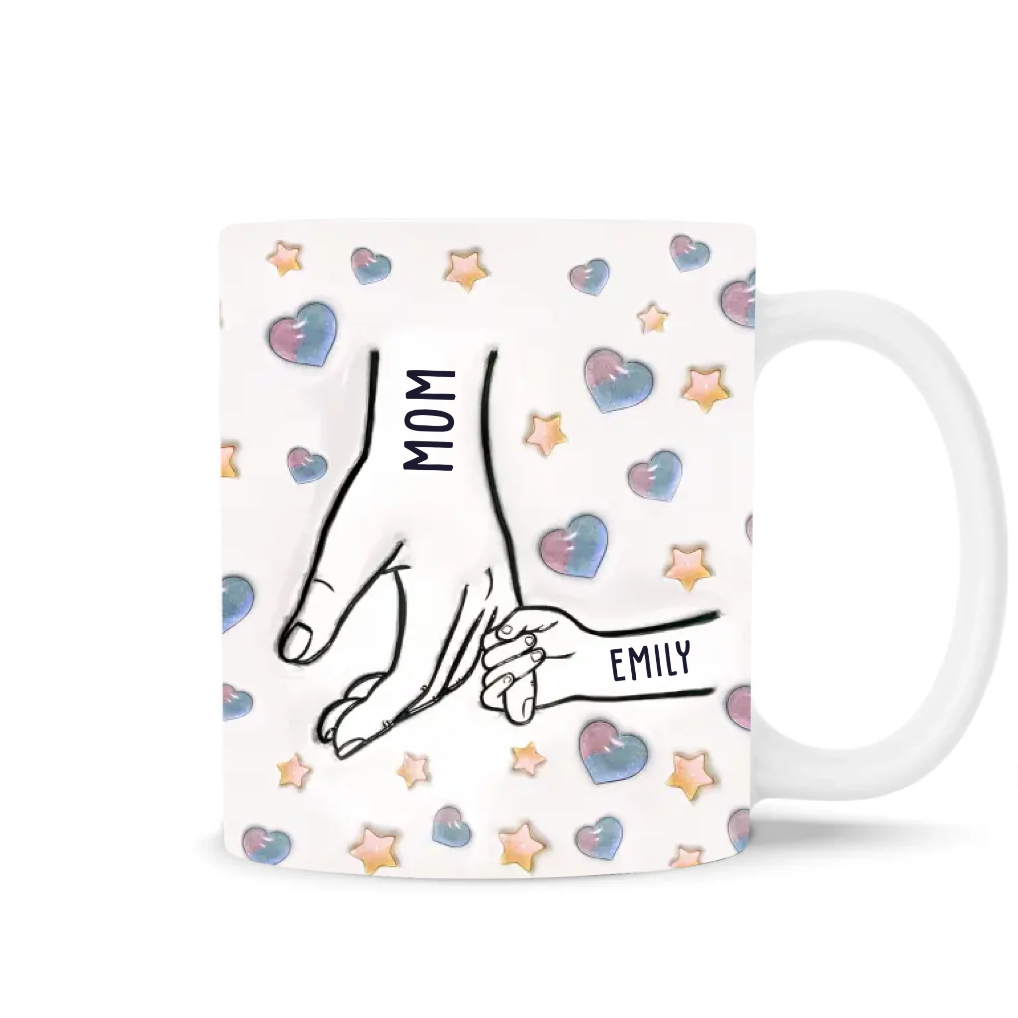 Holding Mama’s Love Forever - Personalized 3D Inflated Effect Mug, Happy Mother’s Day, Star Heart Mug Mama Hand