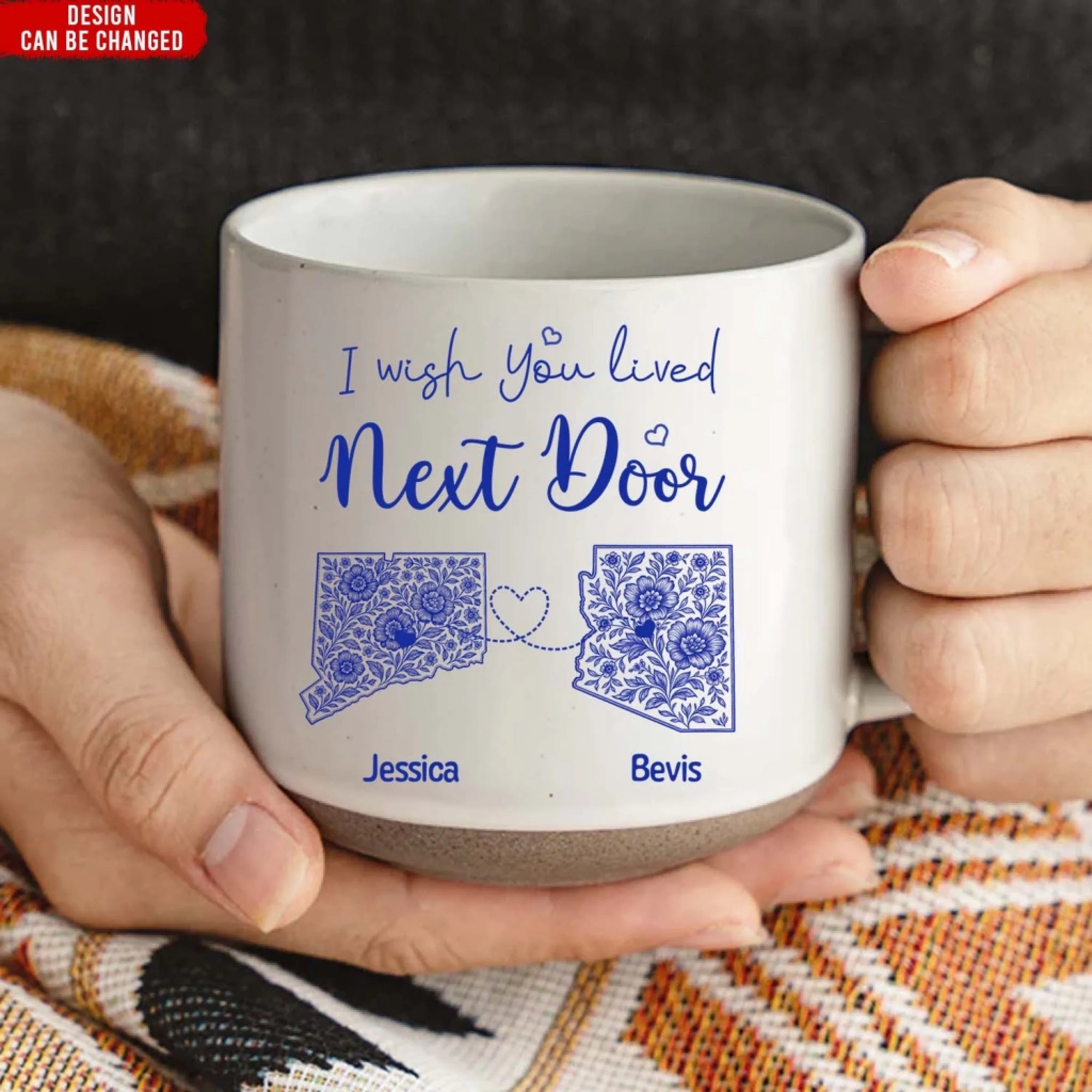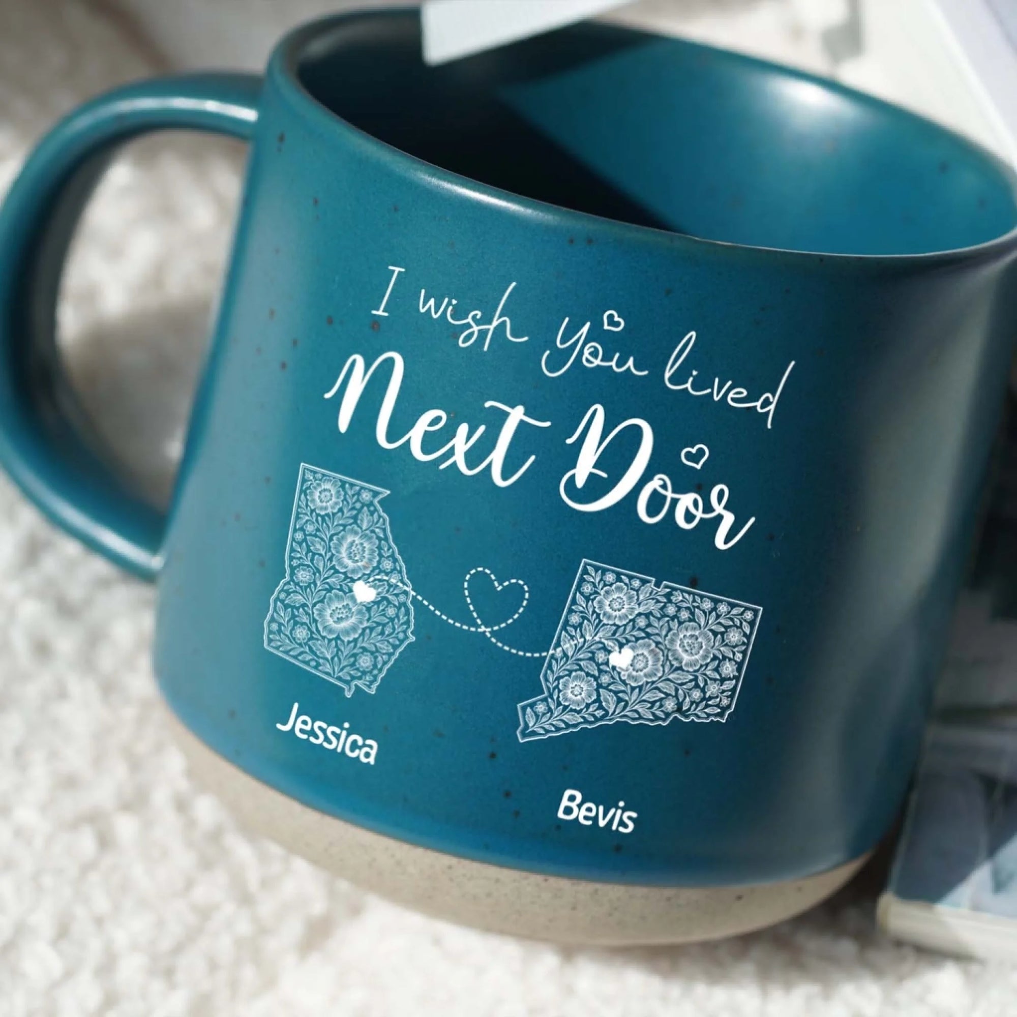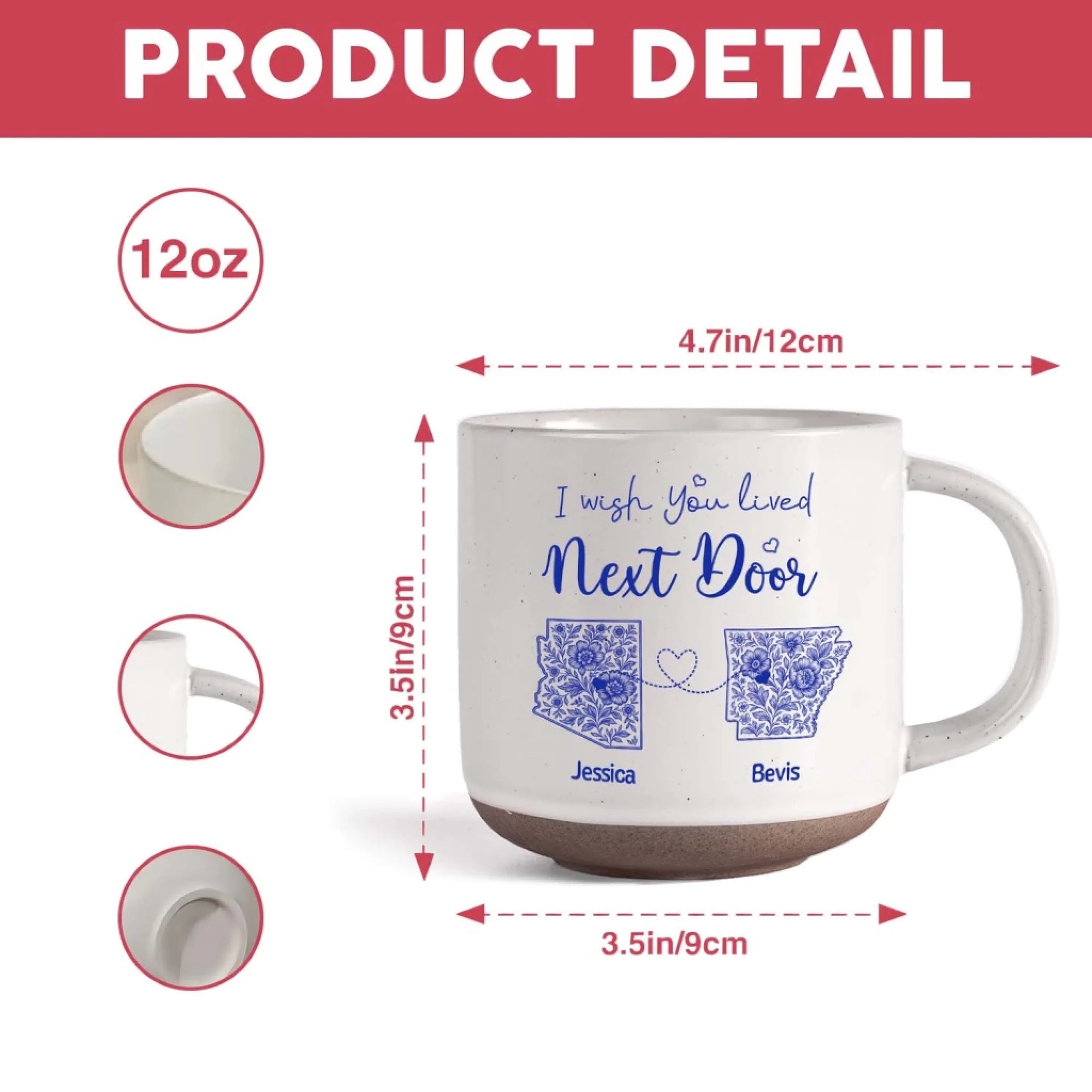 I Wish You Lived Next Door - Personalized Pottery Mug, Gift For Couple
