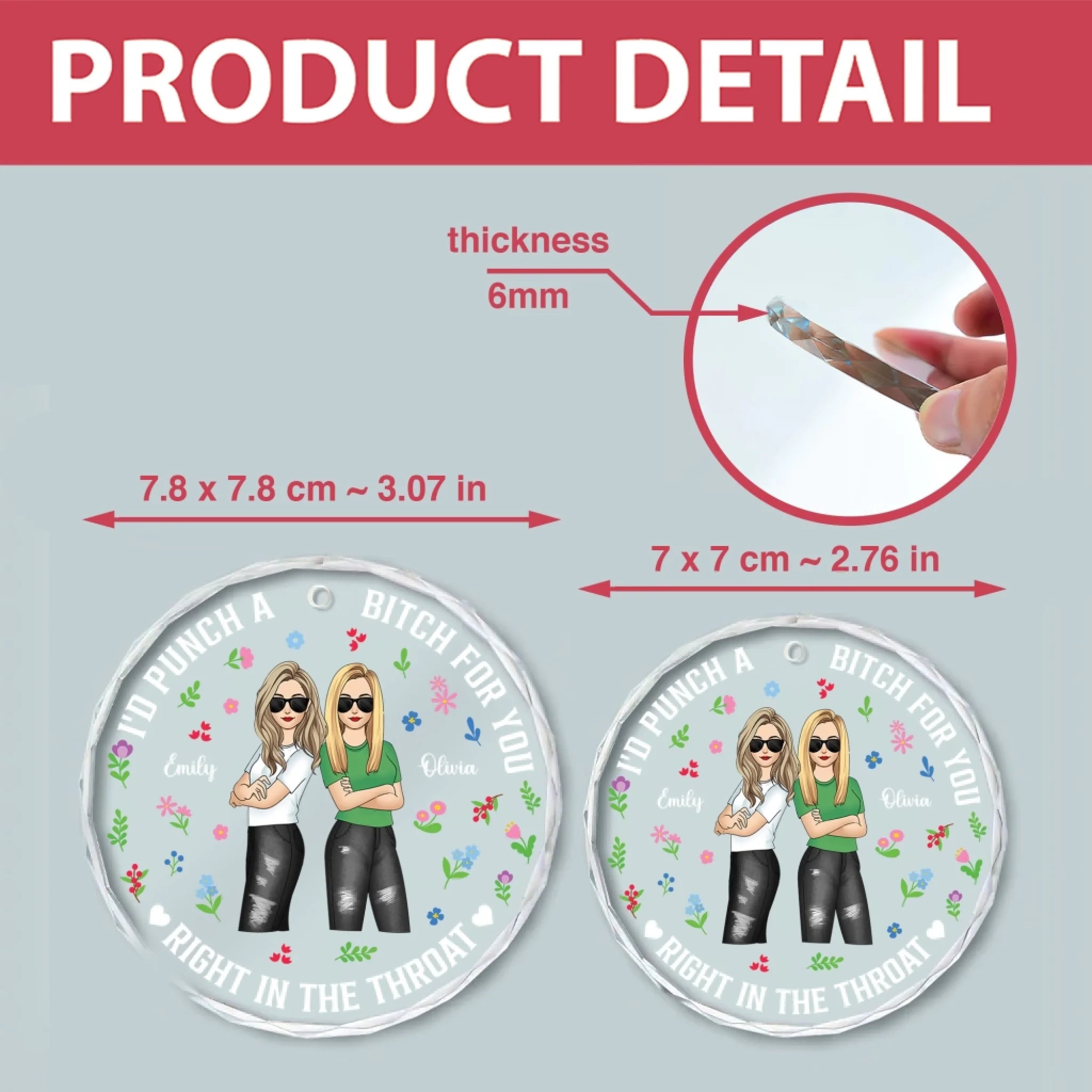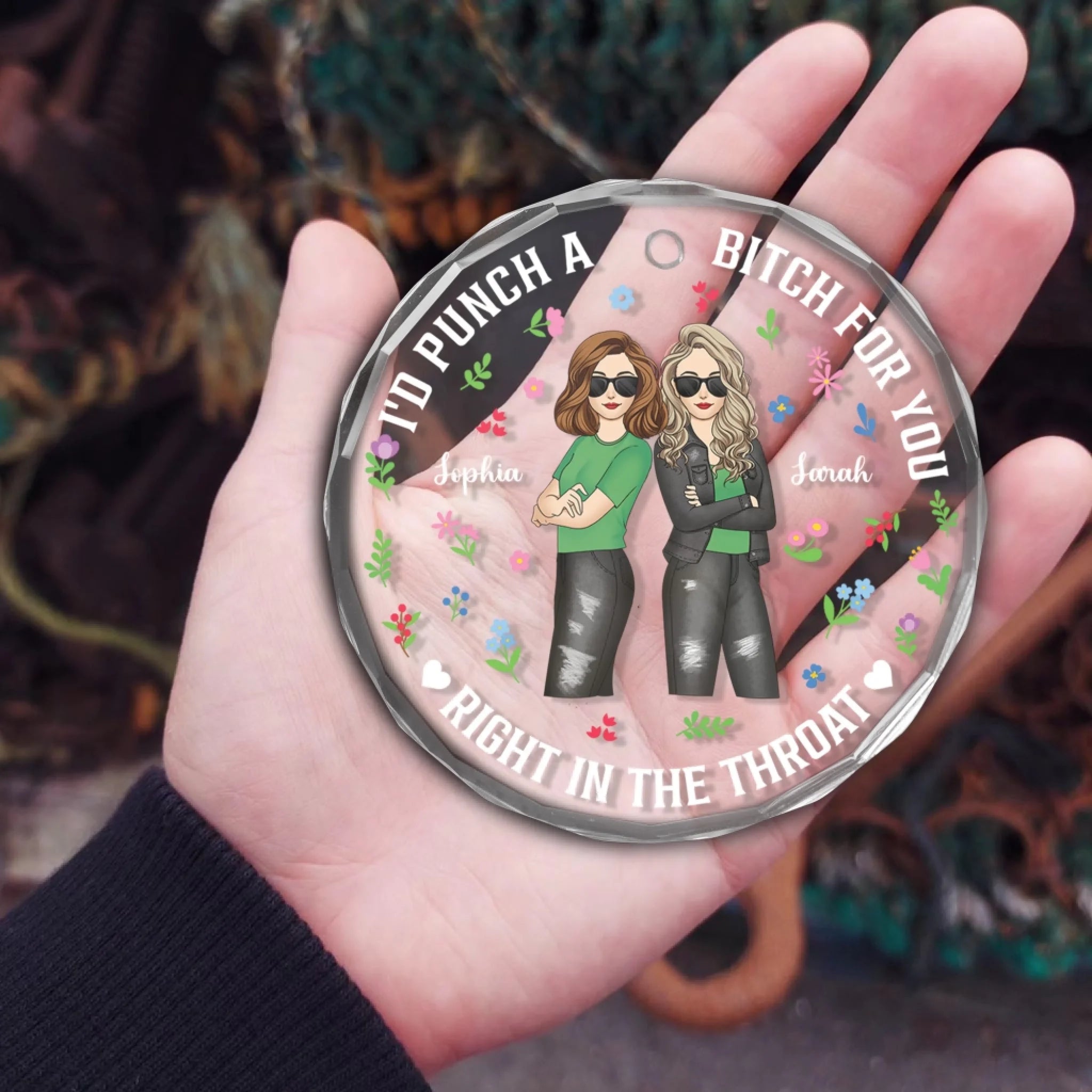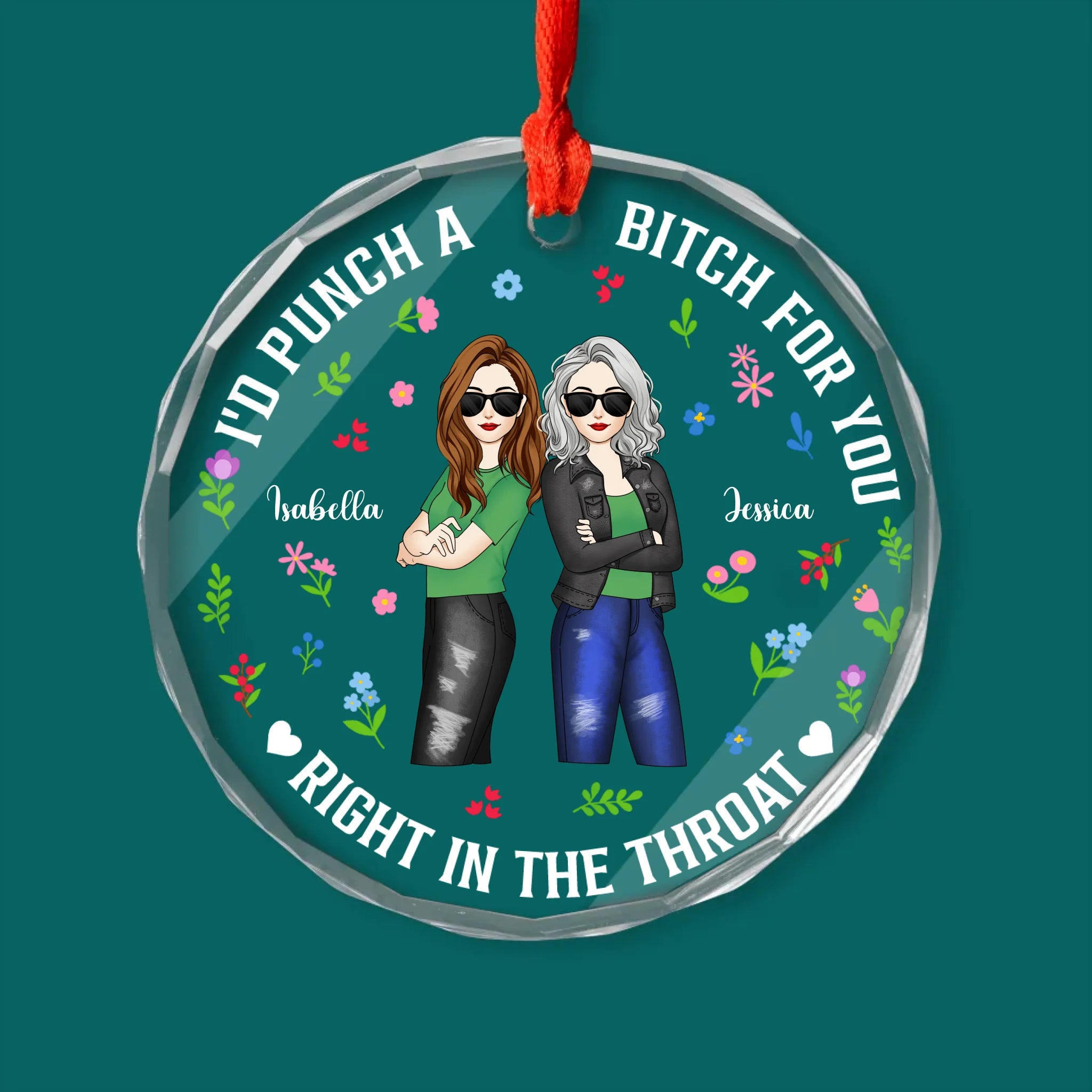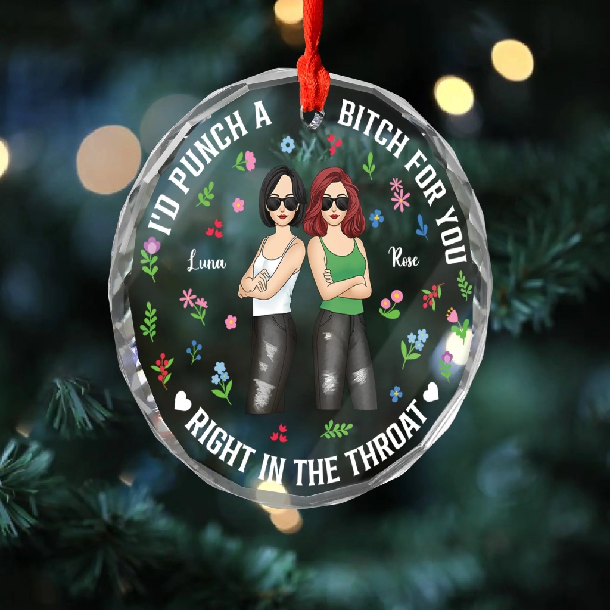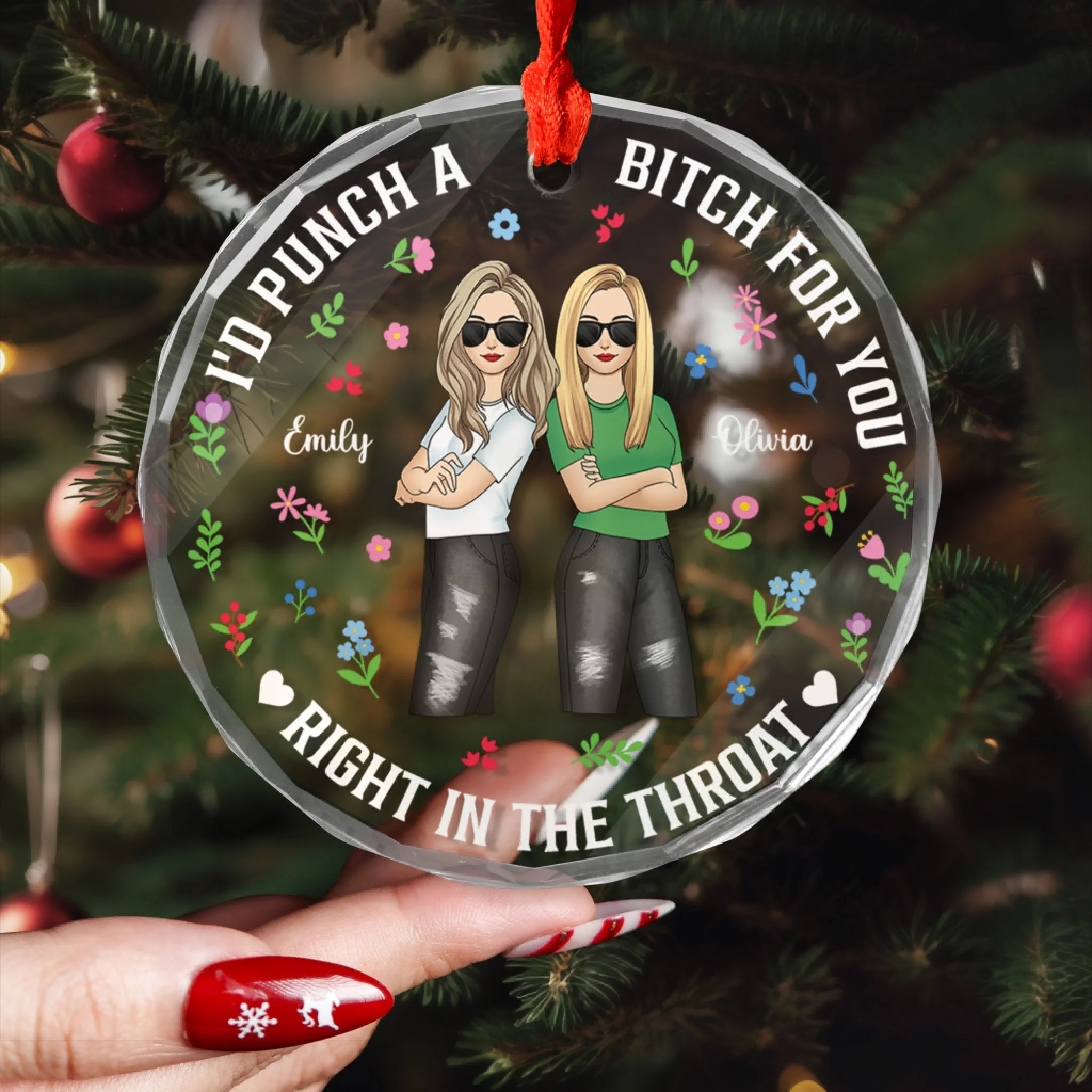 I'd Punch a Bitch For You Right In the Throat - Personalized Glass Ornament, Gift Friends, Friendship Ornament