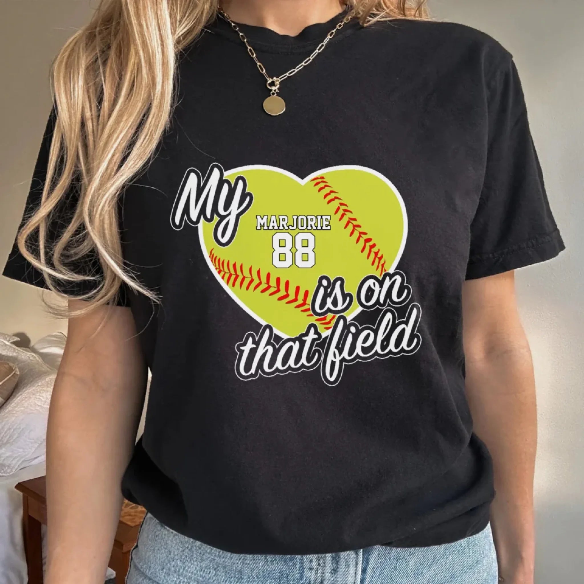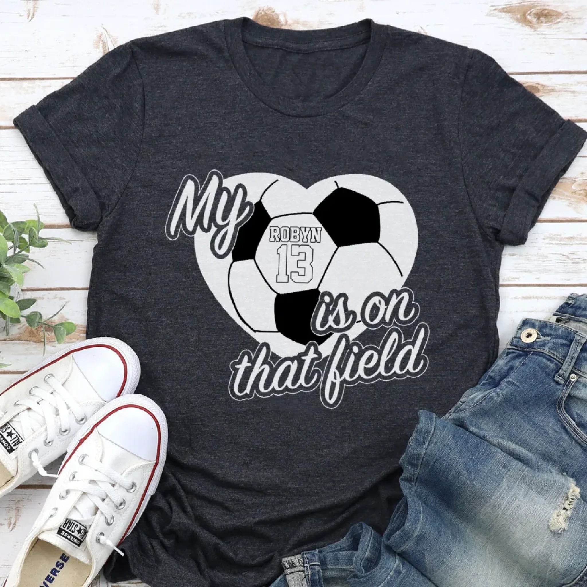 My Heart Is On That Field - Personalized T-Shirt, Gift For Sport Mom, Grandma
