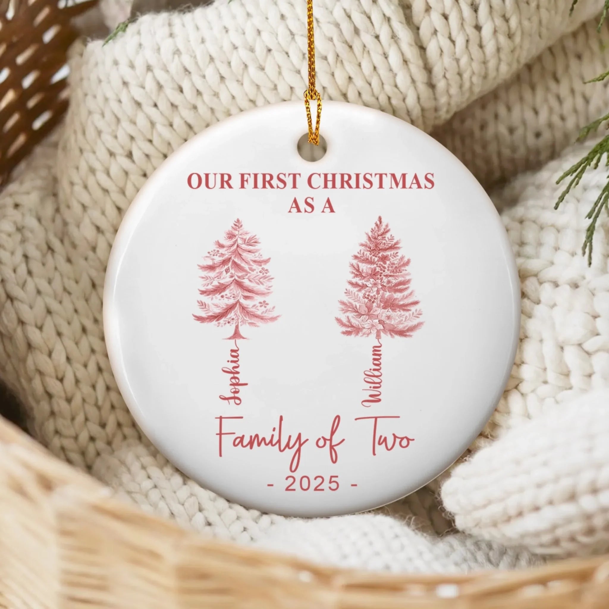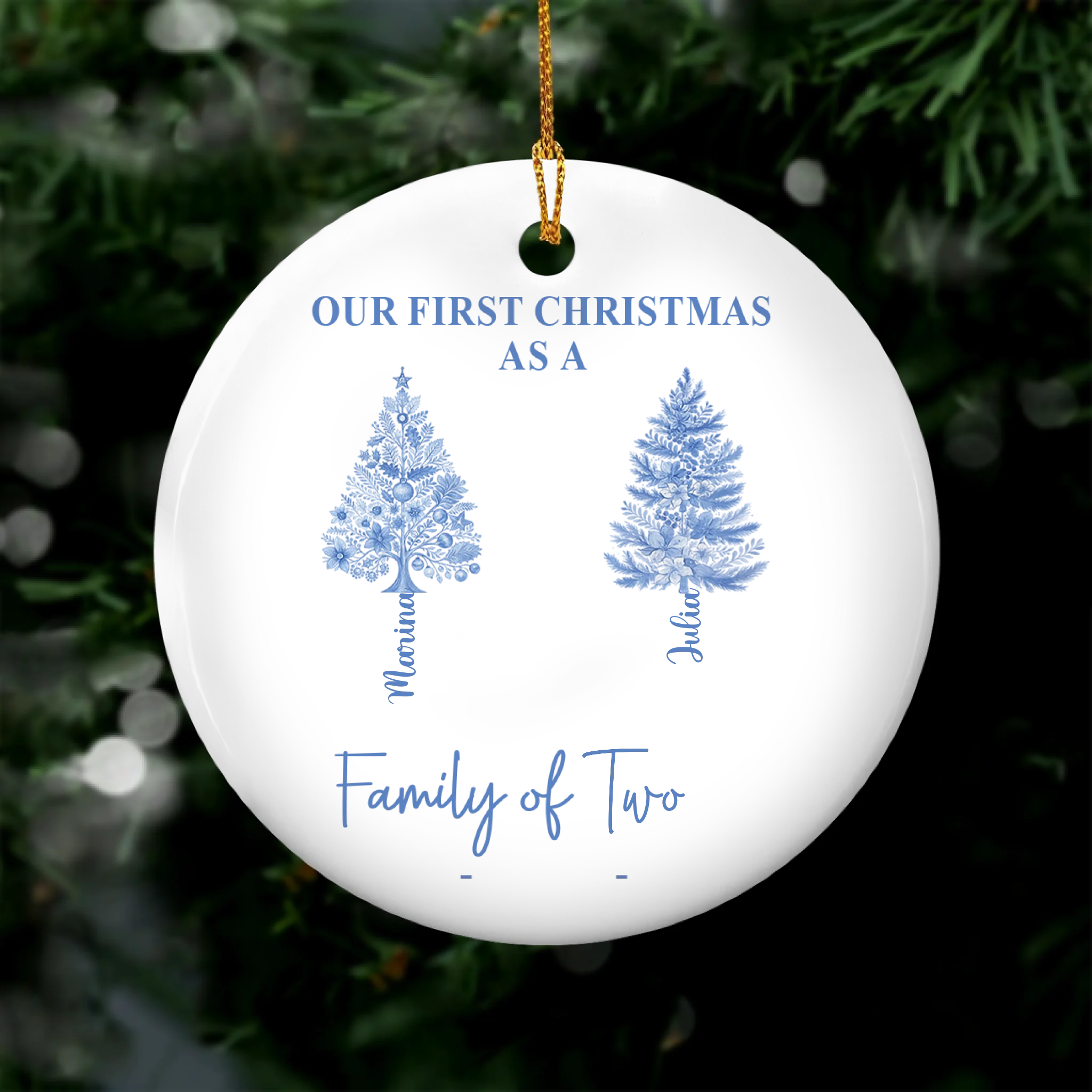 Our First Christmas As A Family Chinoiseries Toile Version - Personalized Ceramic Ornament, Family Gift