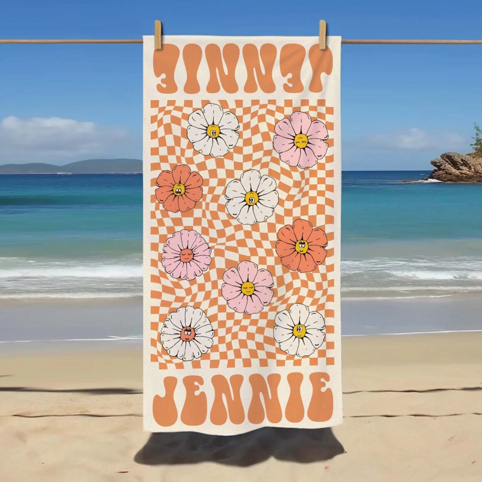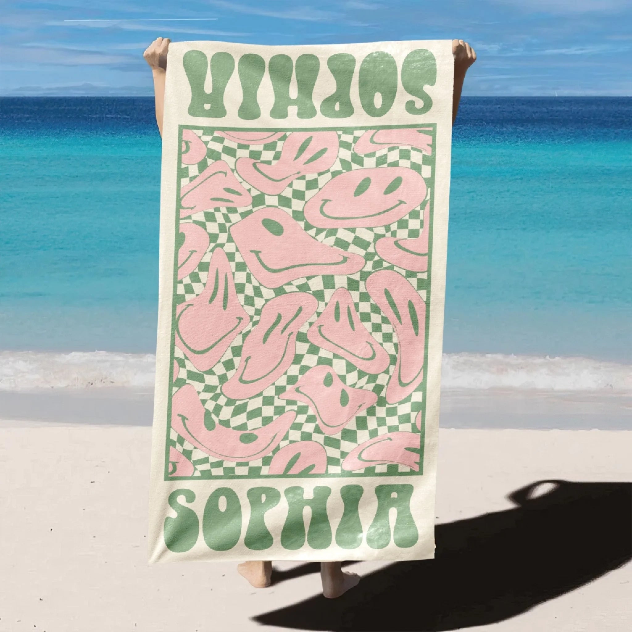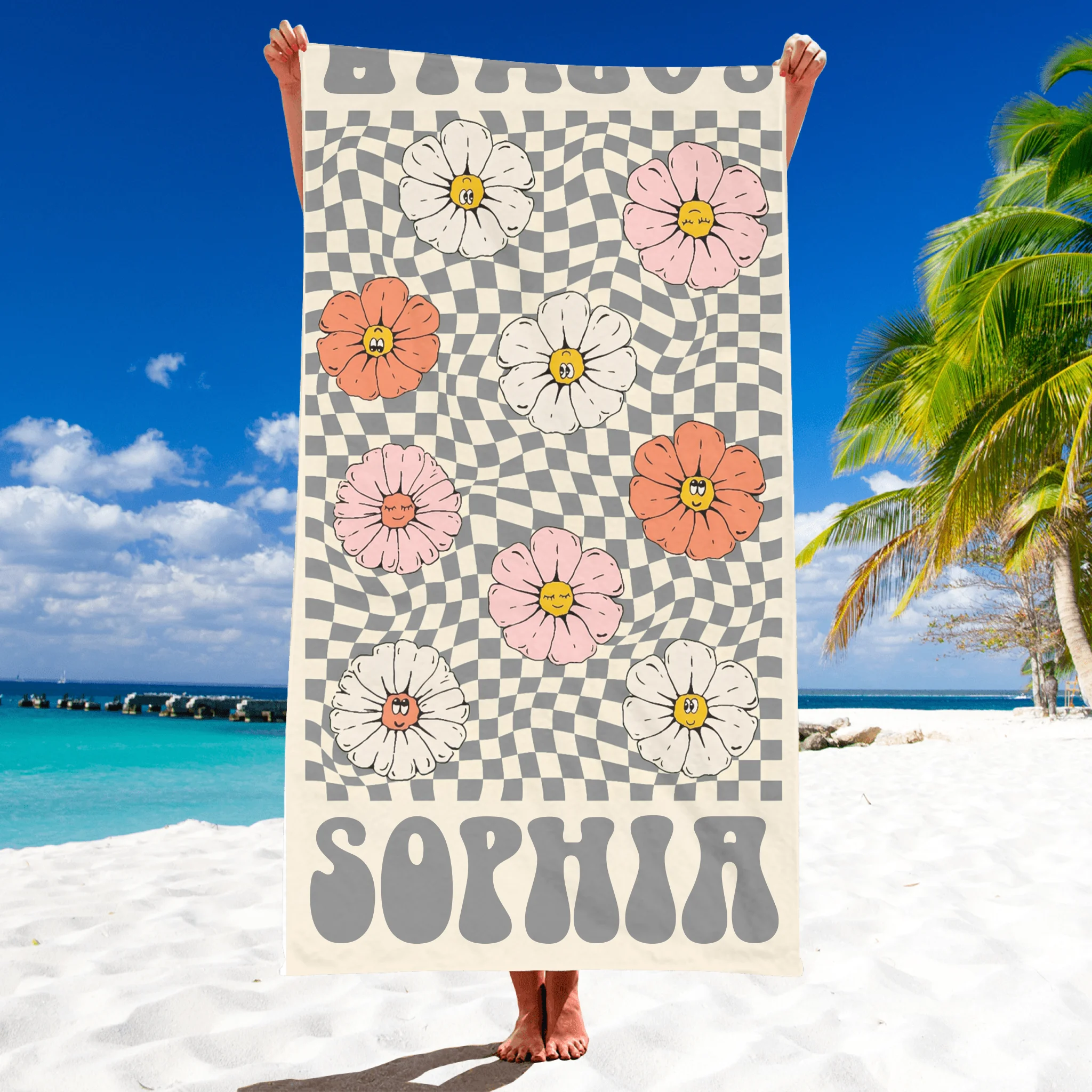 Retro Multi Style - Personalized Beach Towel, Beach Towel With Name, Birthday Vacation Gift