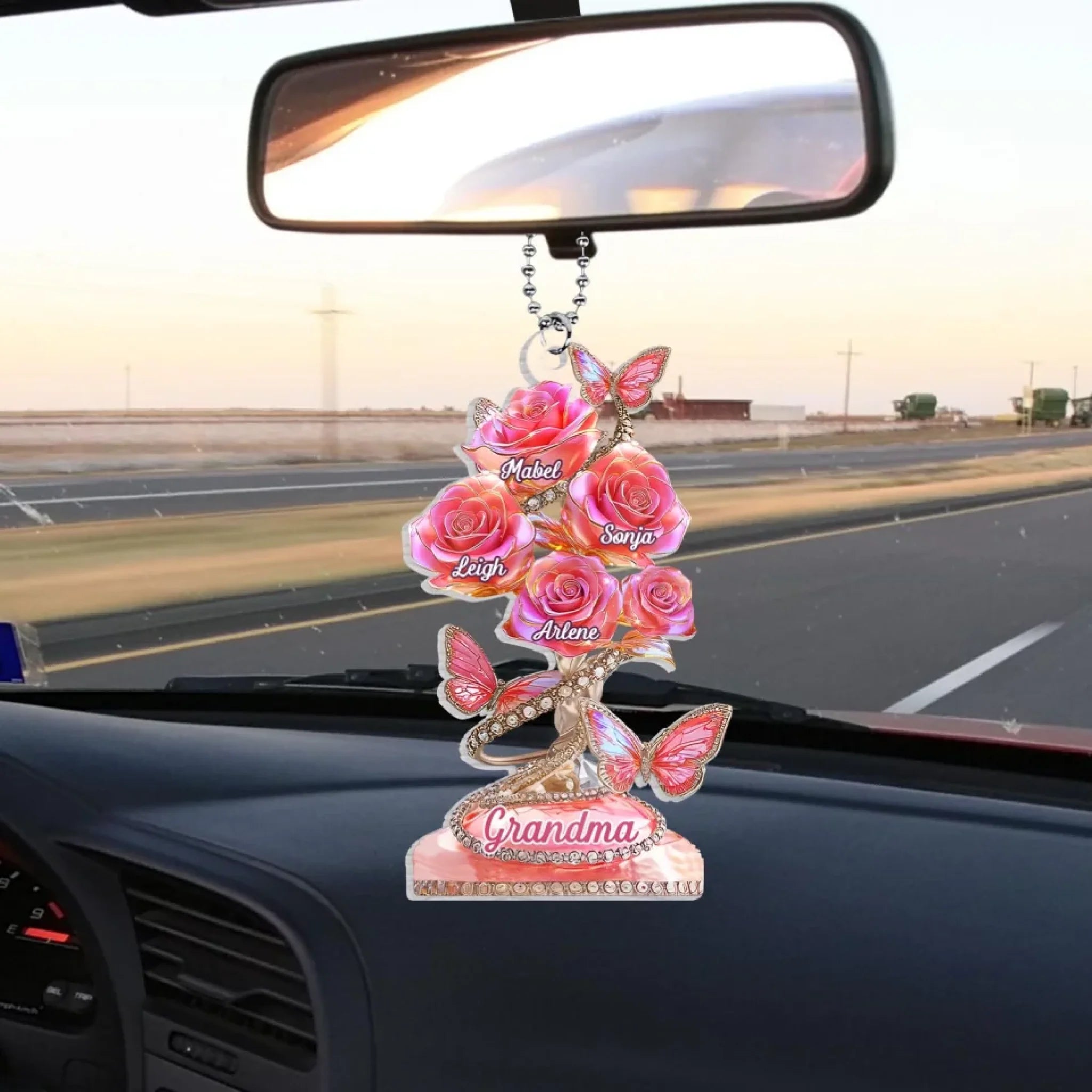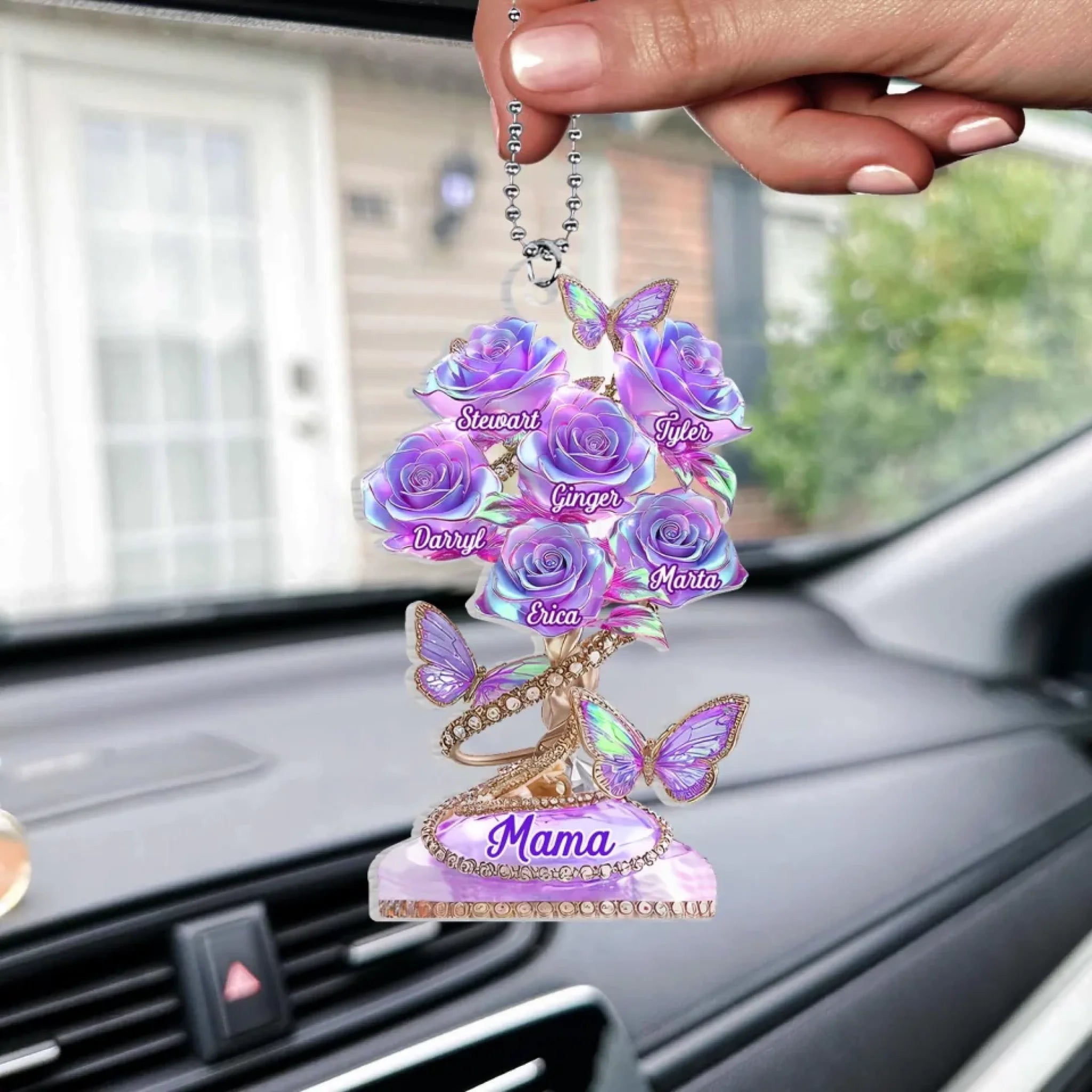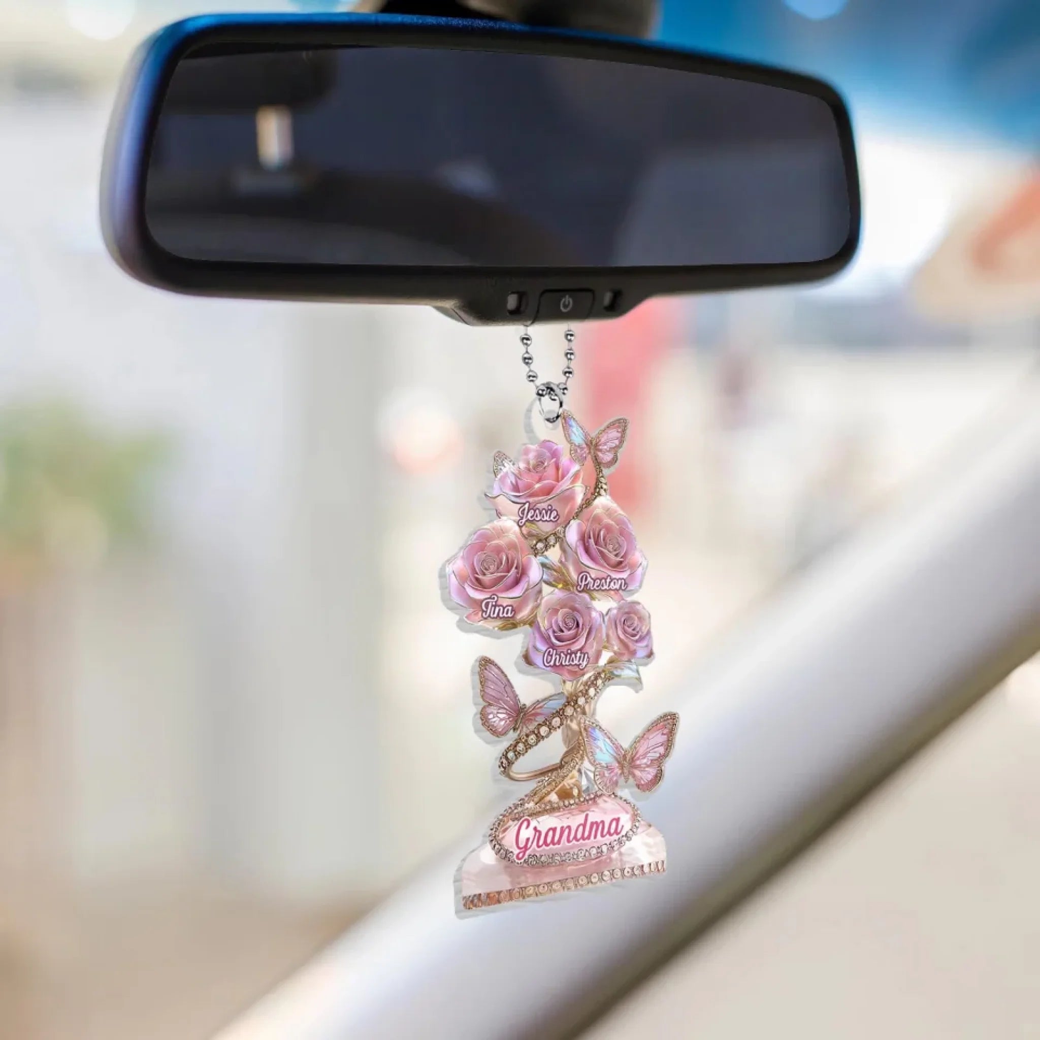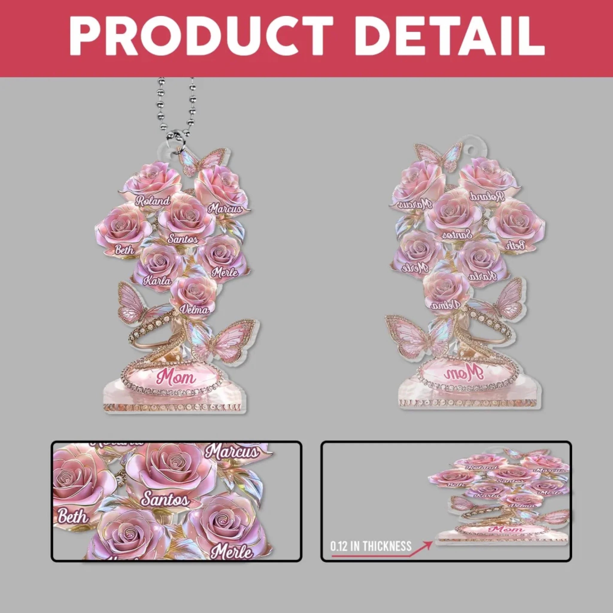 Rose Love Between Mom And Kid Is Forever - Personalized Acrylic Car Hanger, My Garden Gift For Mom, Grandma