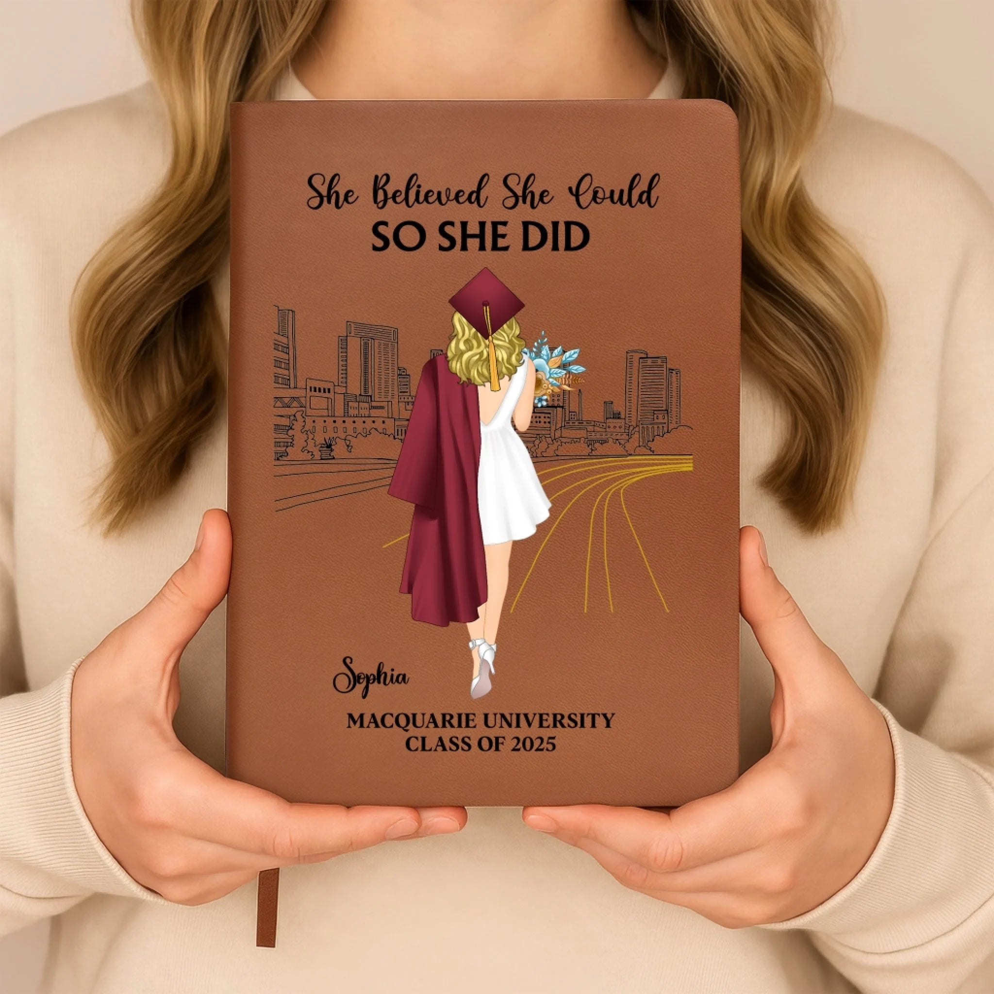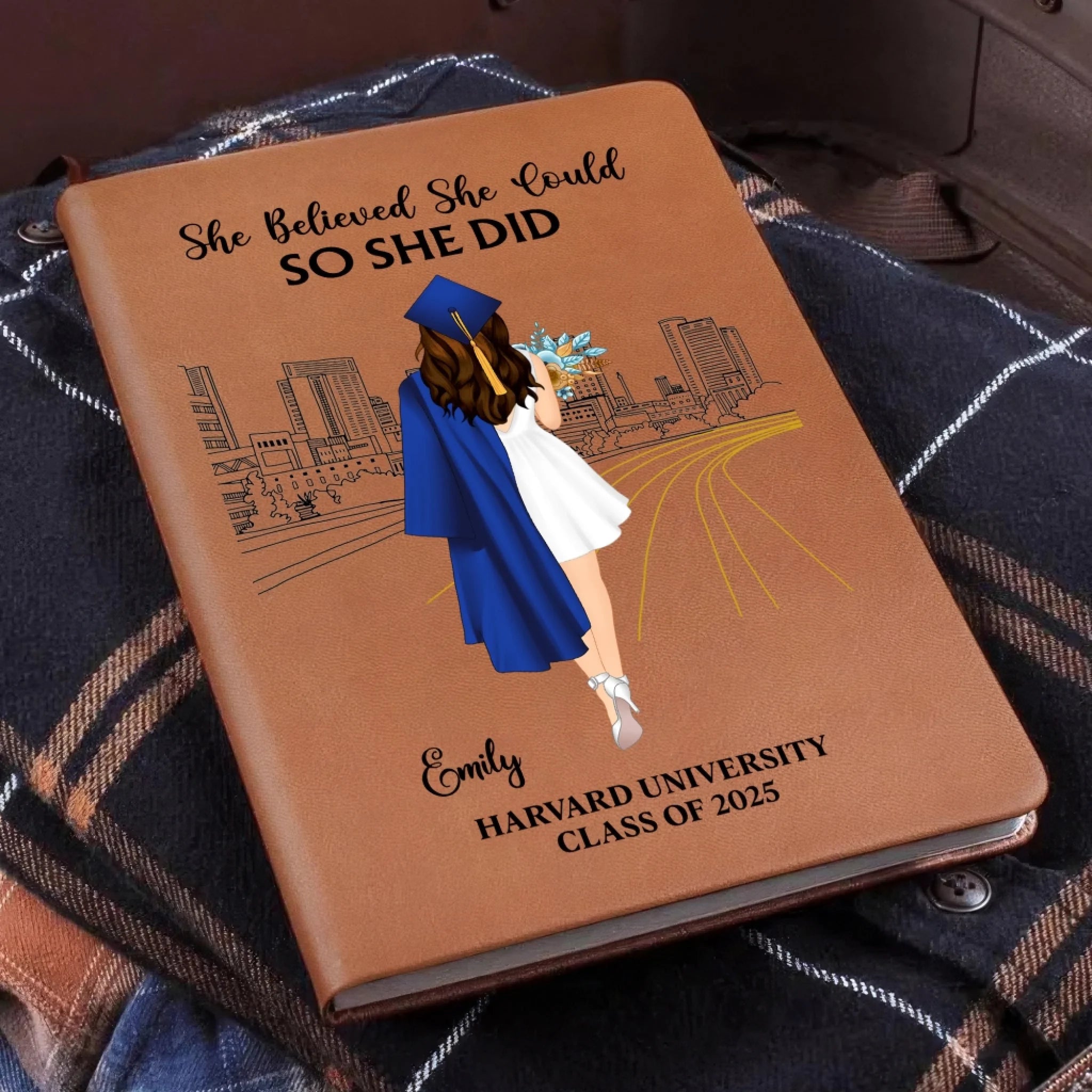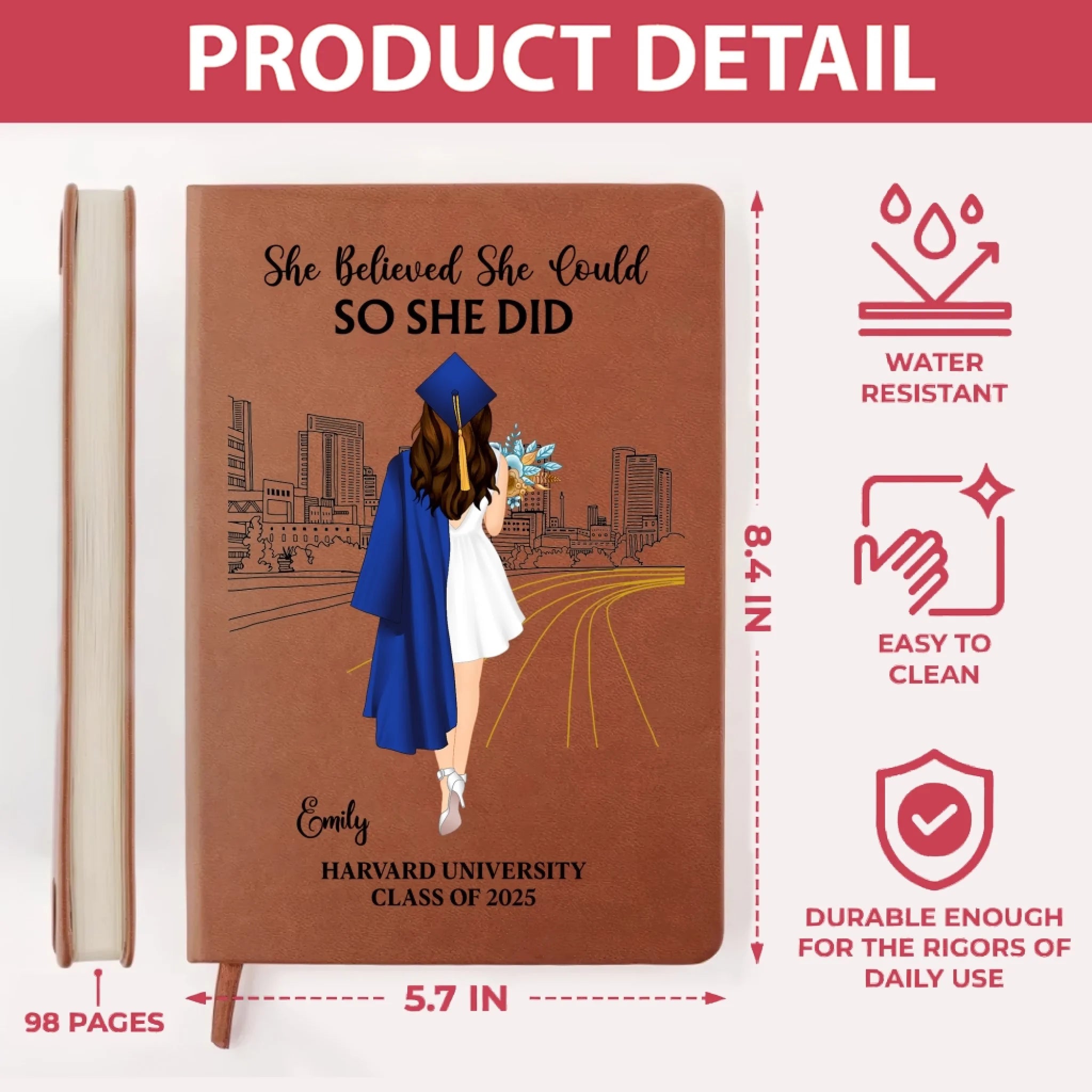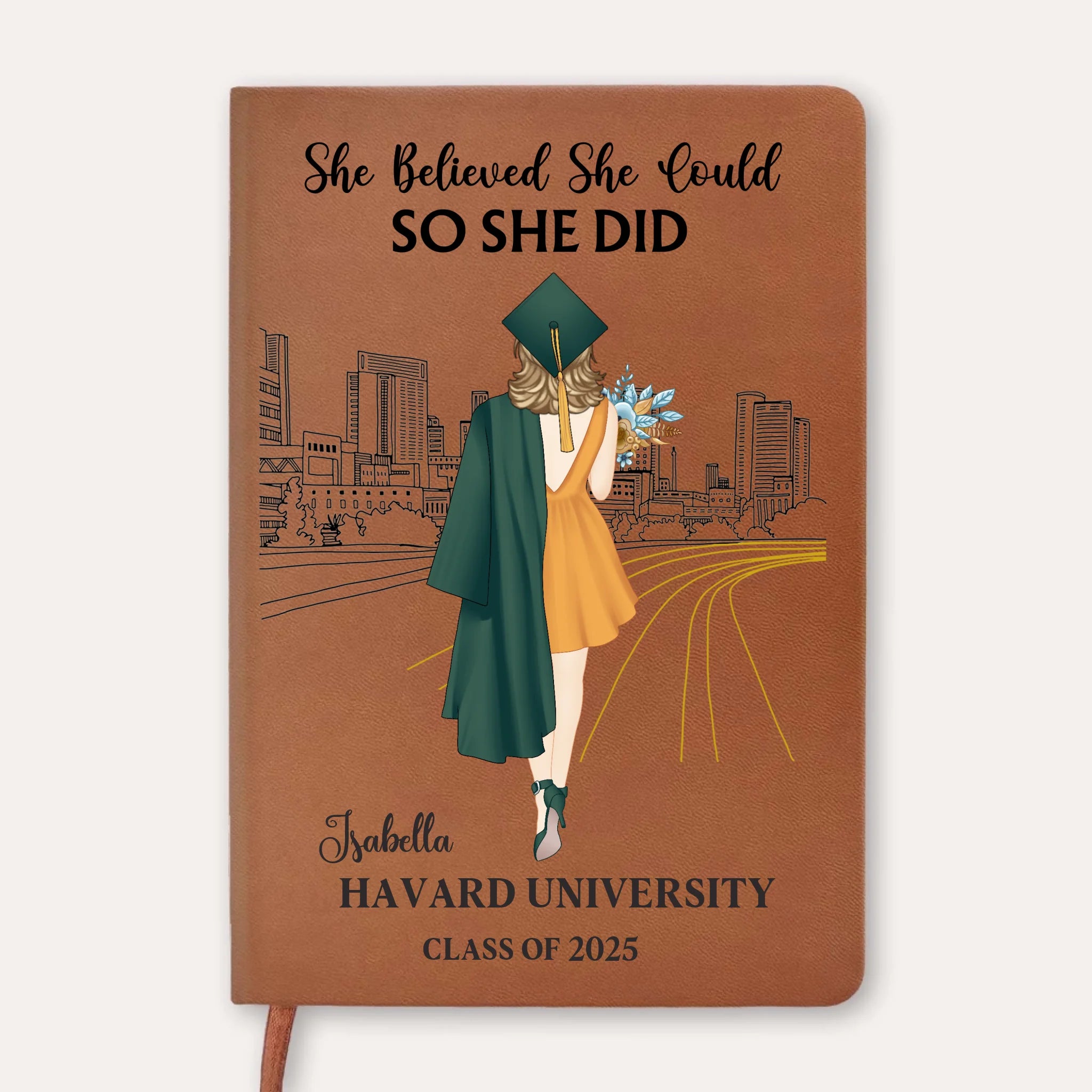 She Believed She Could So She Did - Personalized Leather Journal, Grad Gift for Daughter/Sister/Girlfriend
