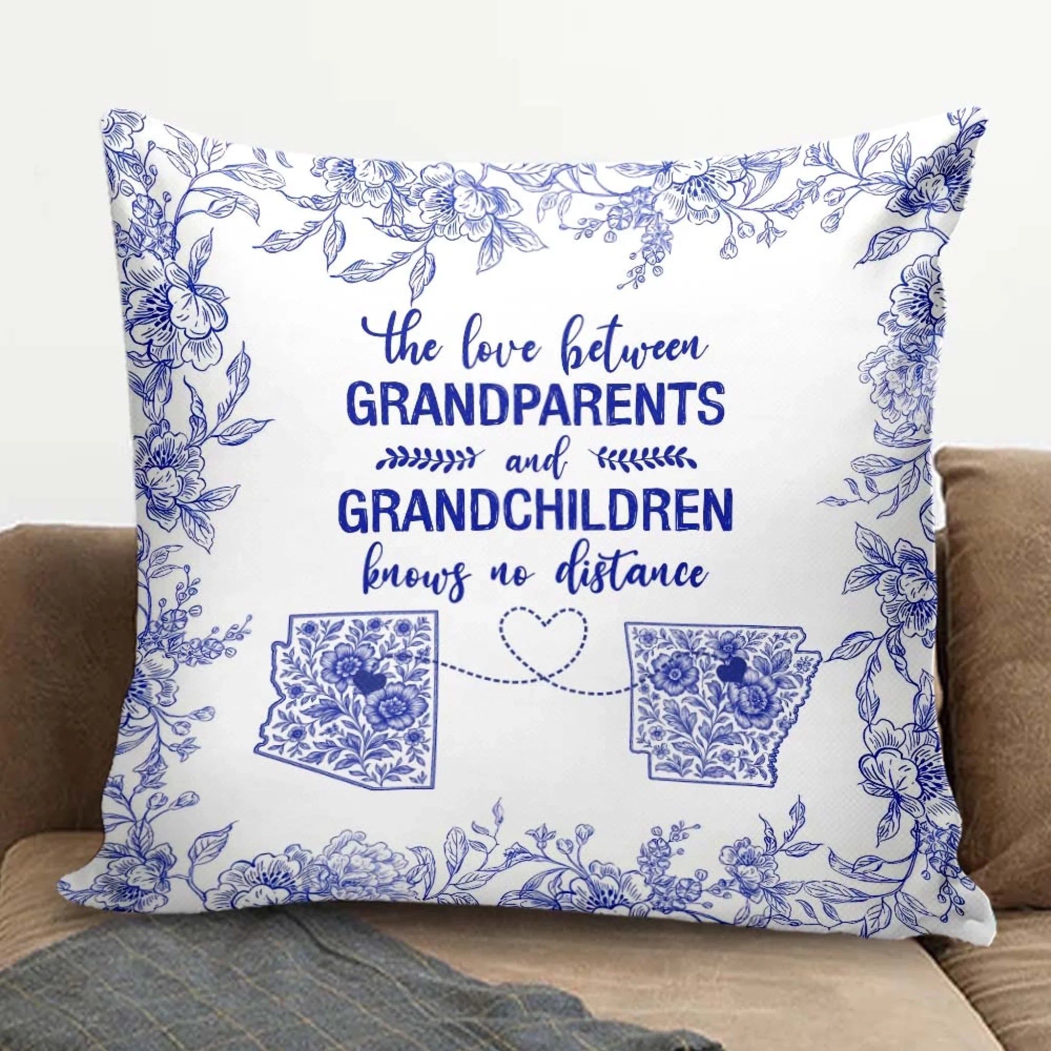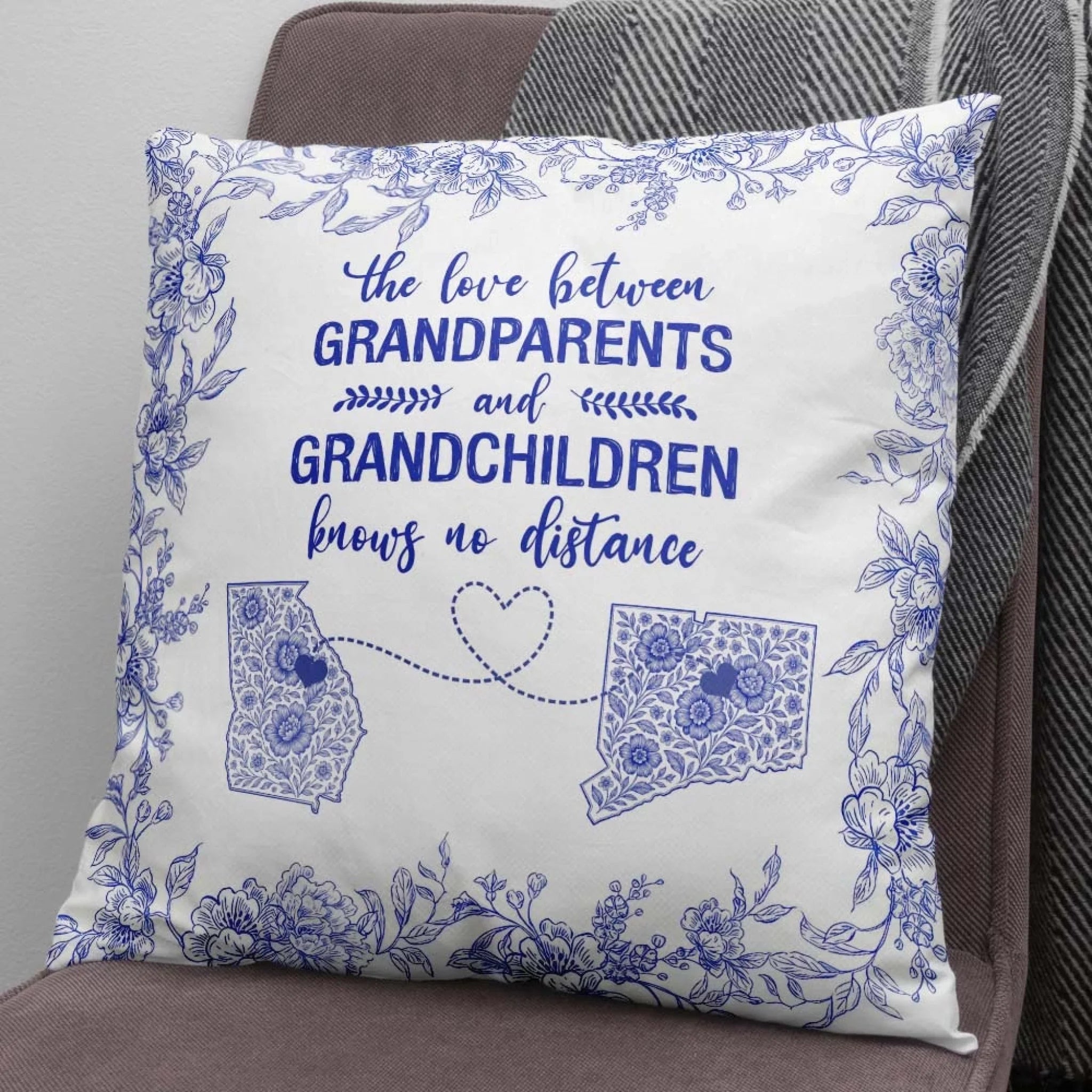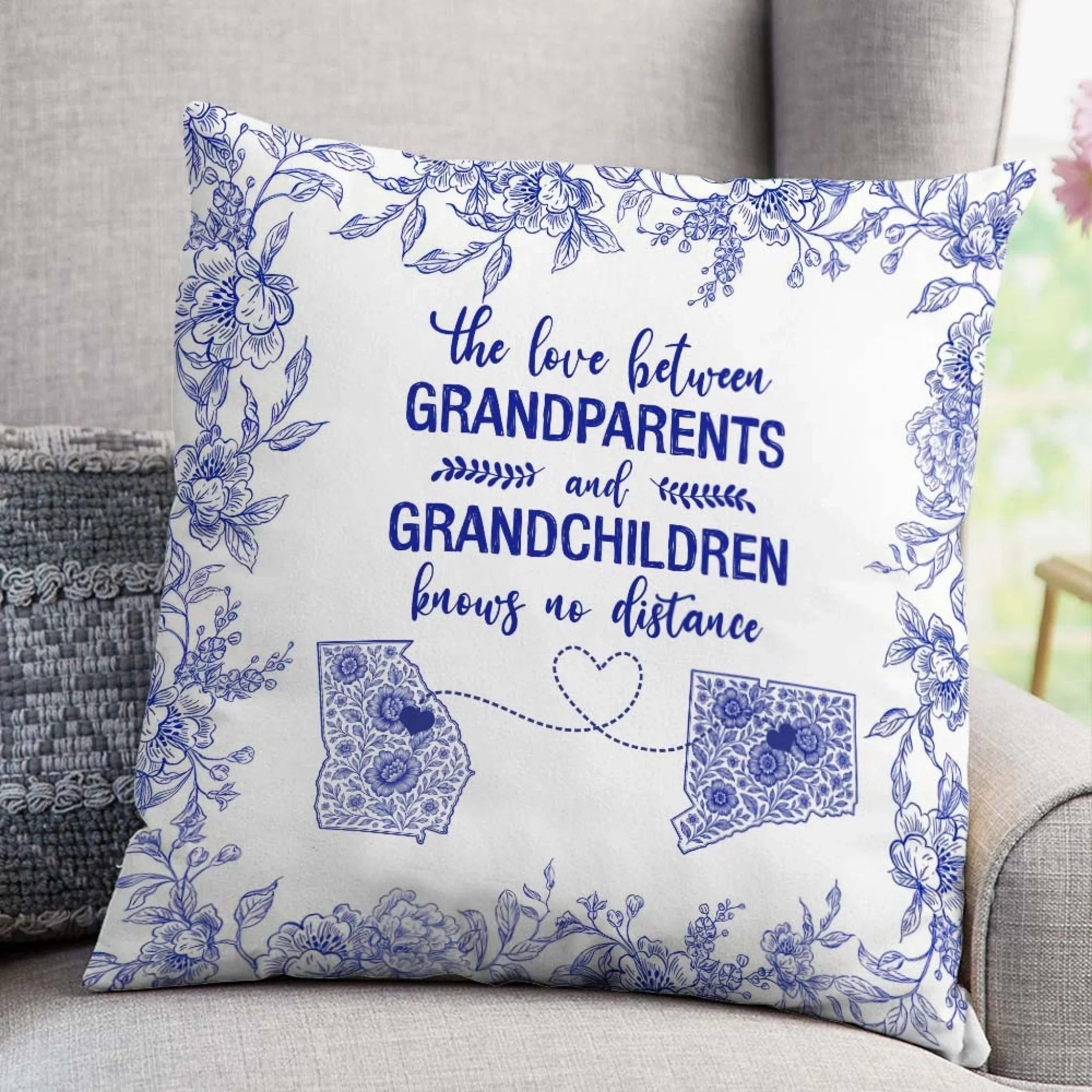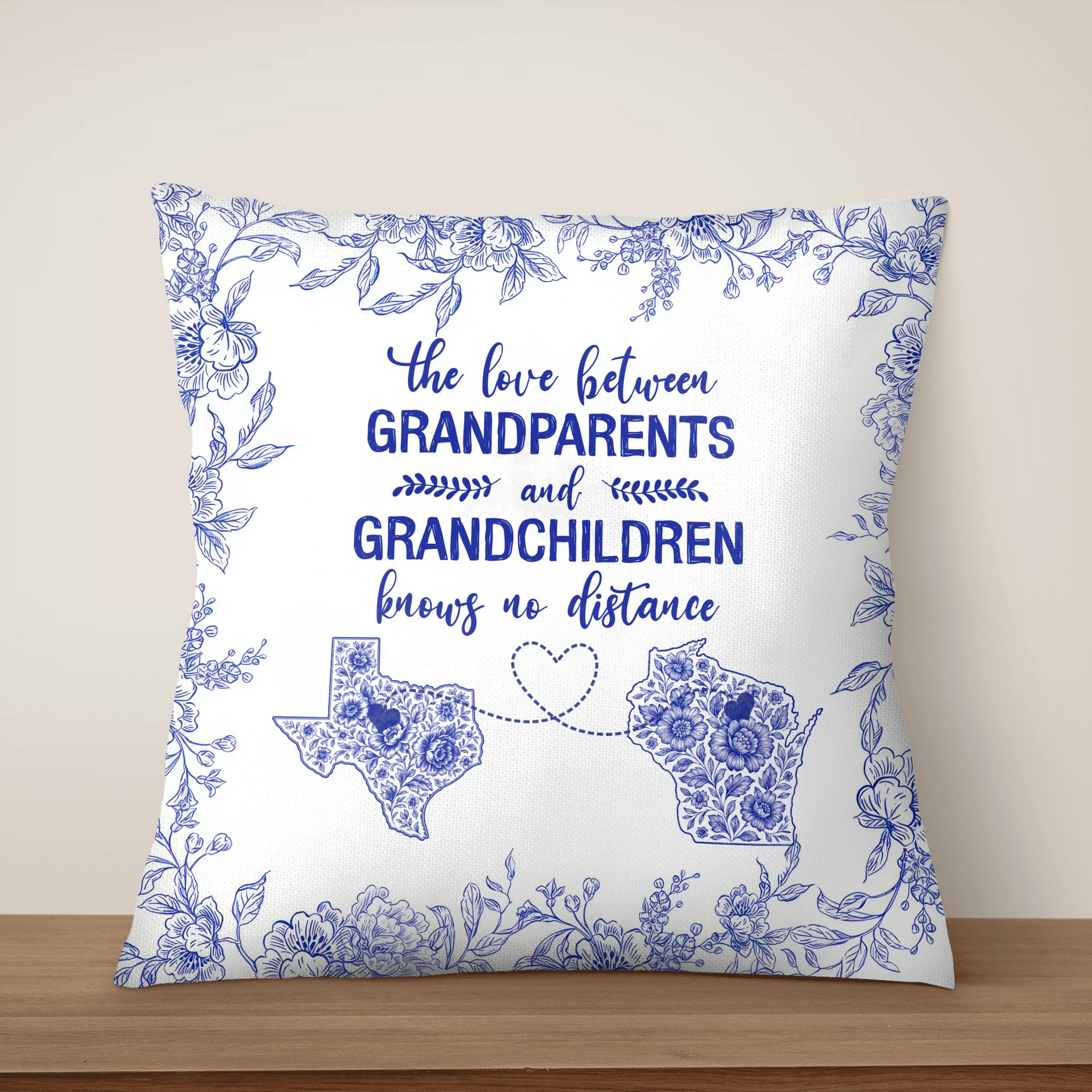 The Love Between Grandparents and Grandchildren Toile Floral Version - Personalized Pillow, Gift For Grandparents, State Map Heart Connection Gift