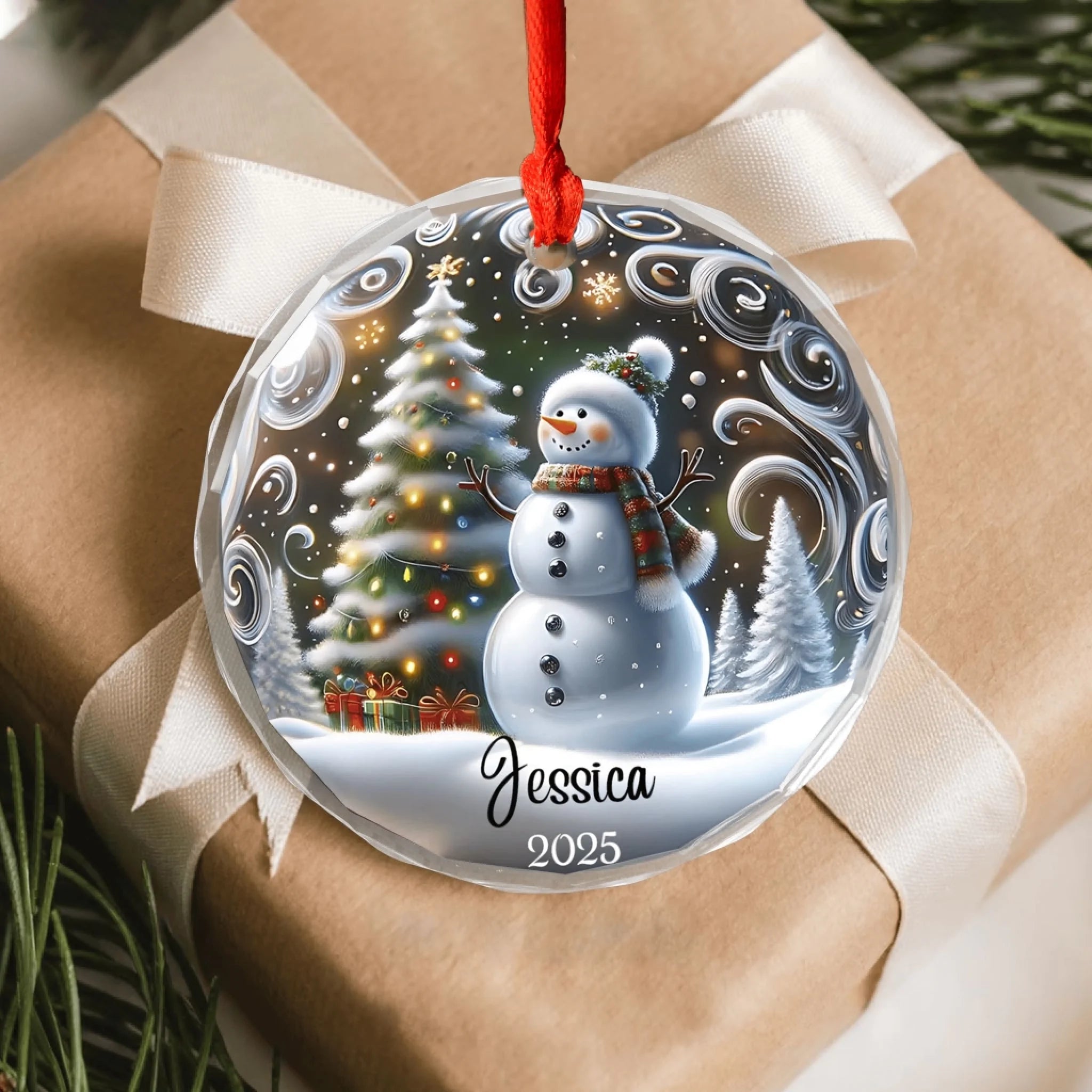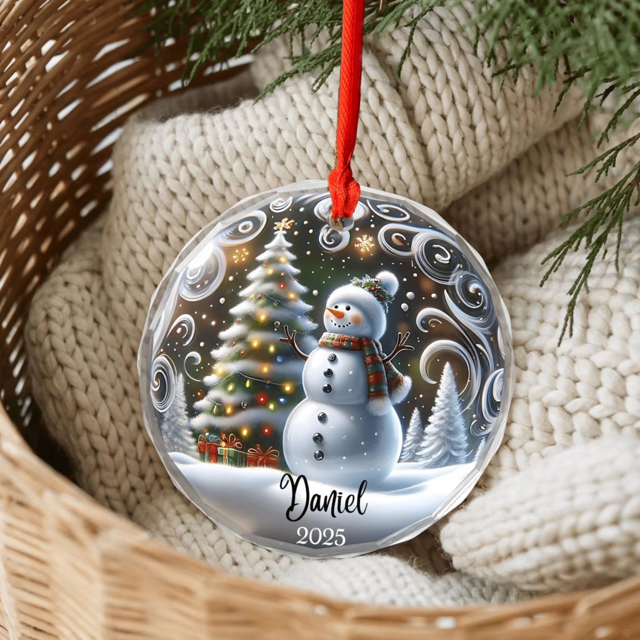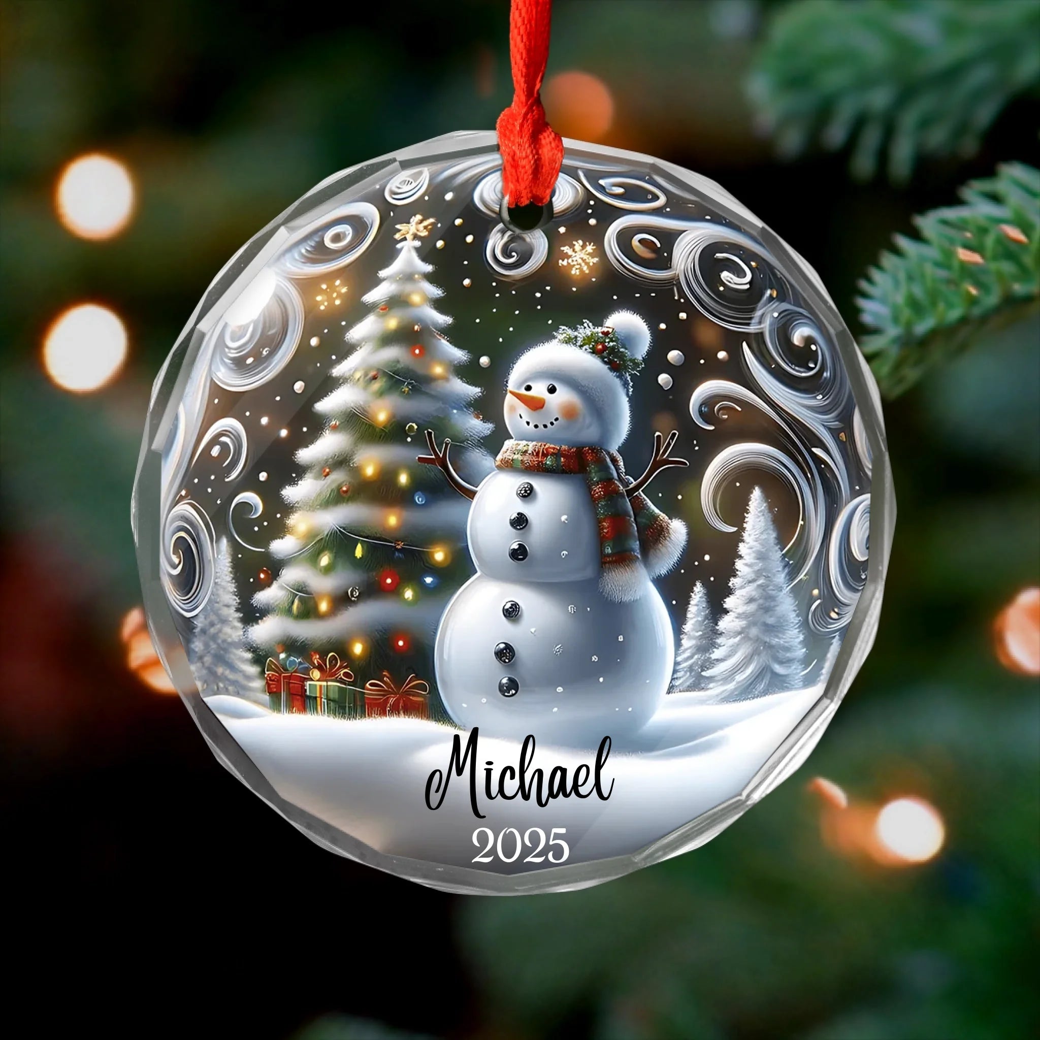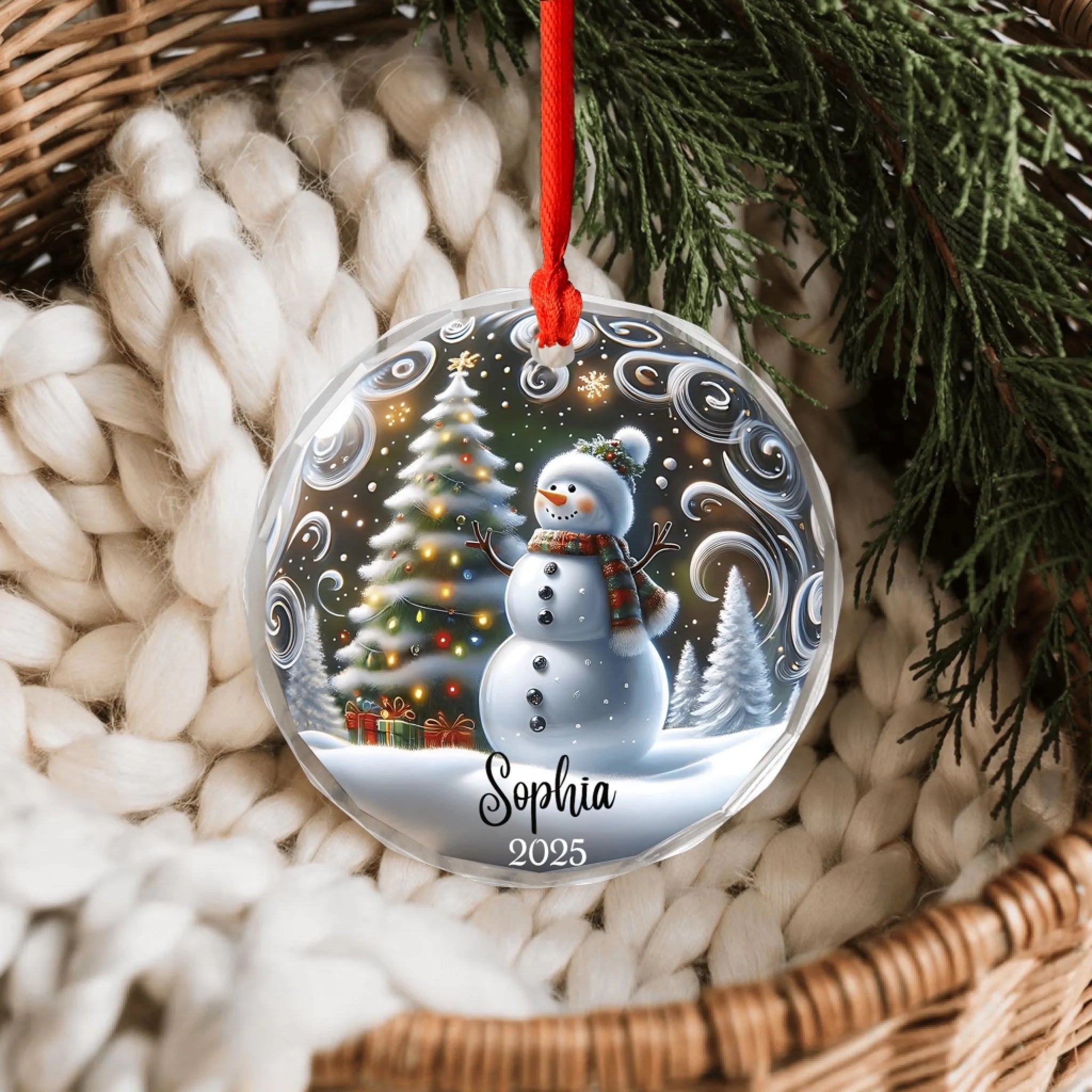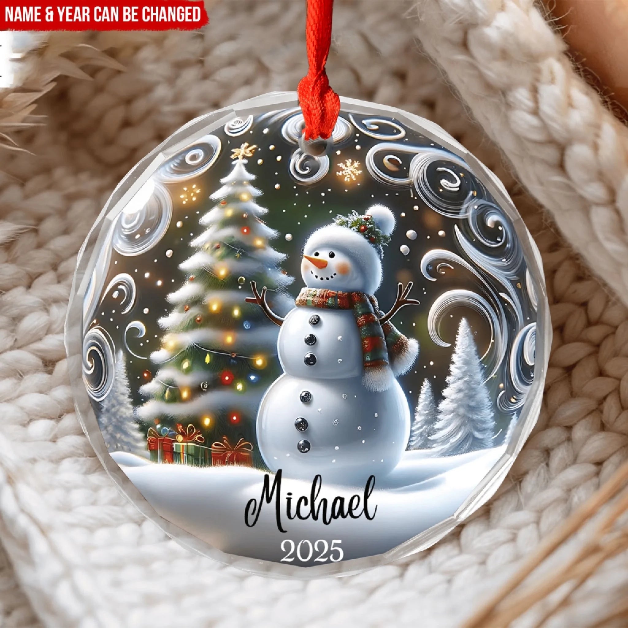 Whimsical Winter Wonderland Snowman - Personalized Glass Ornament, Christmas Gift For Family