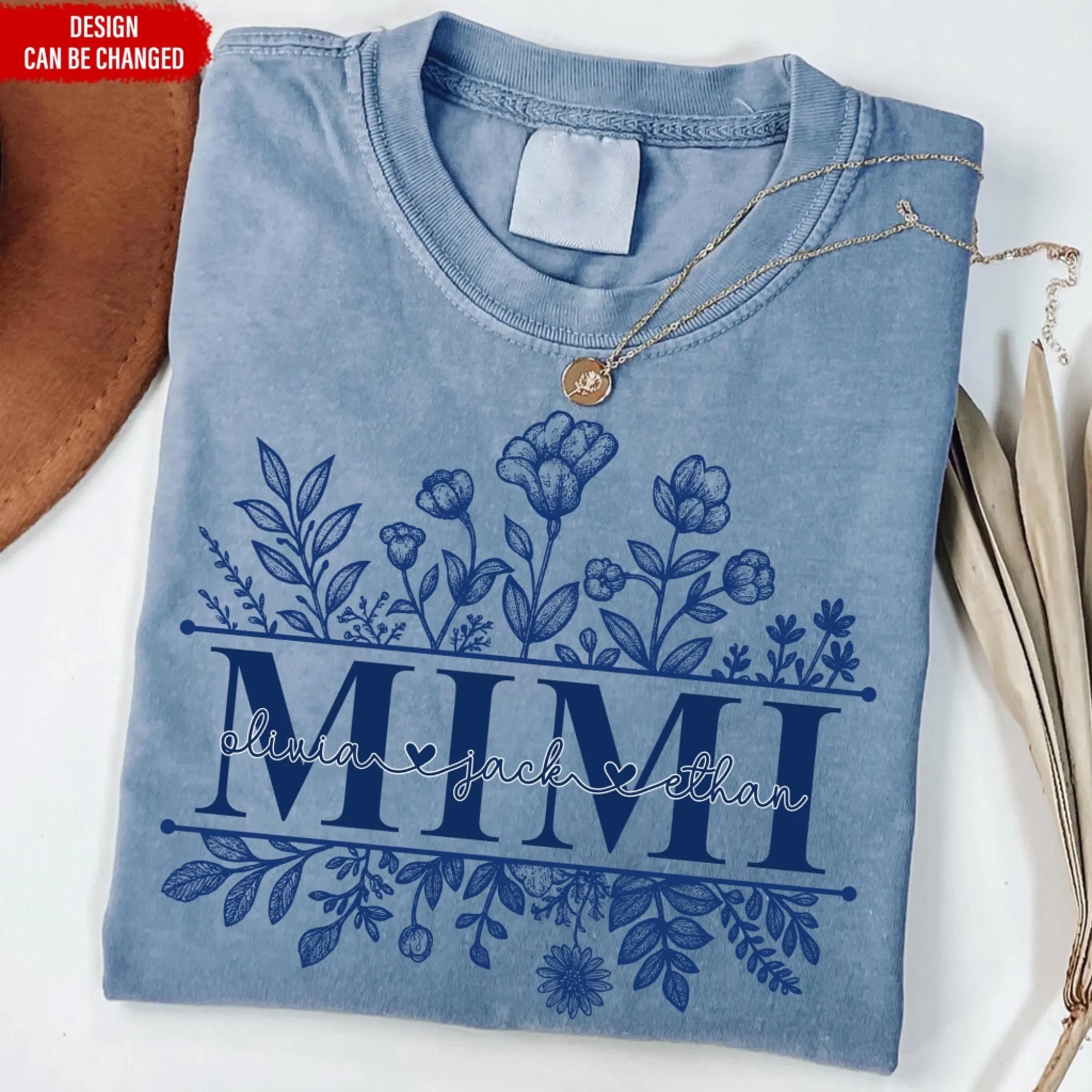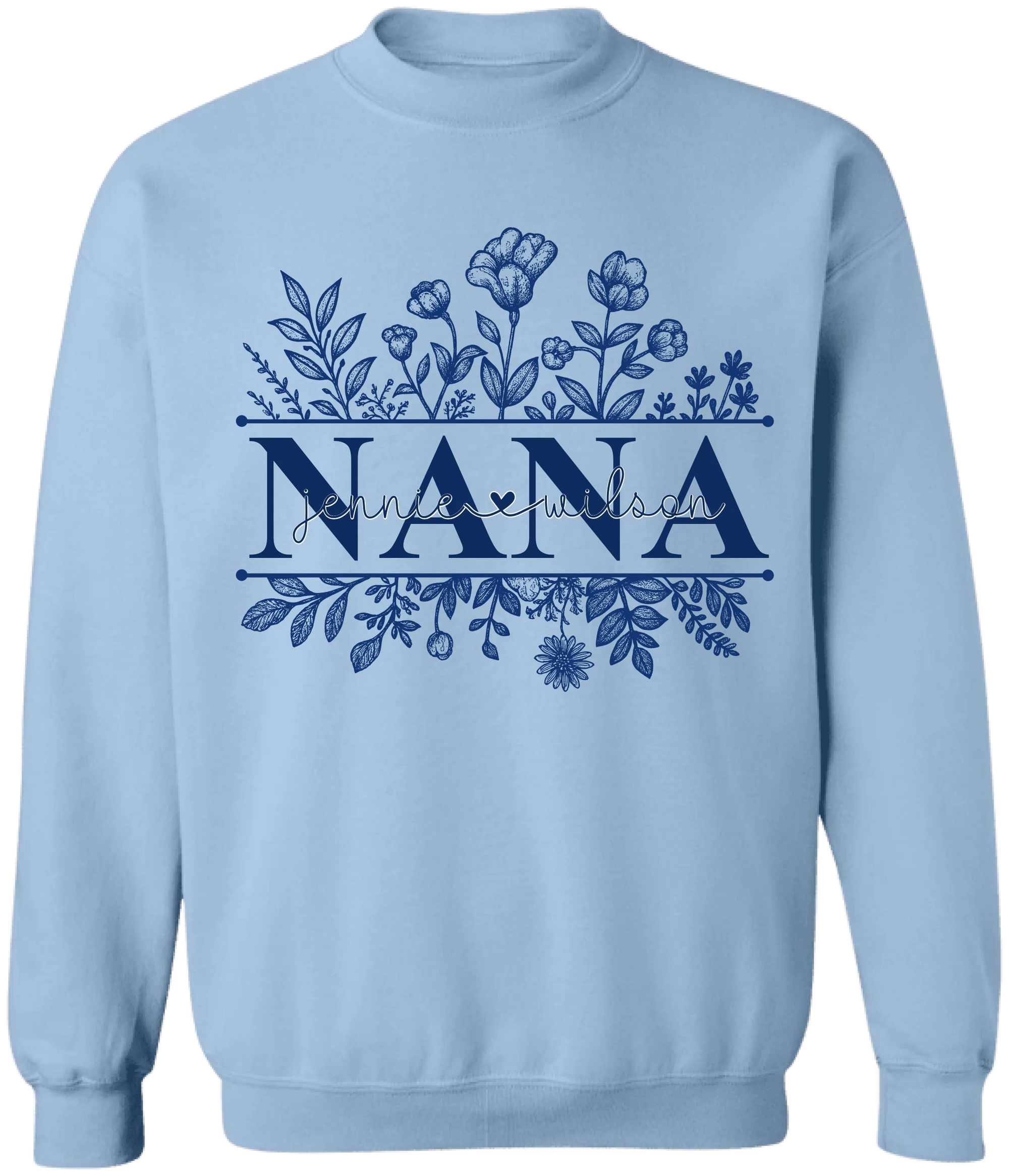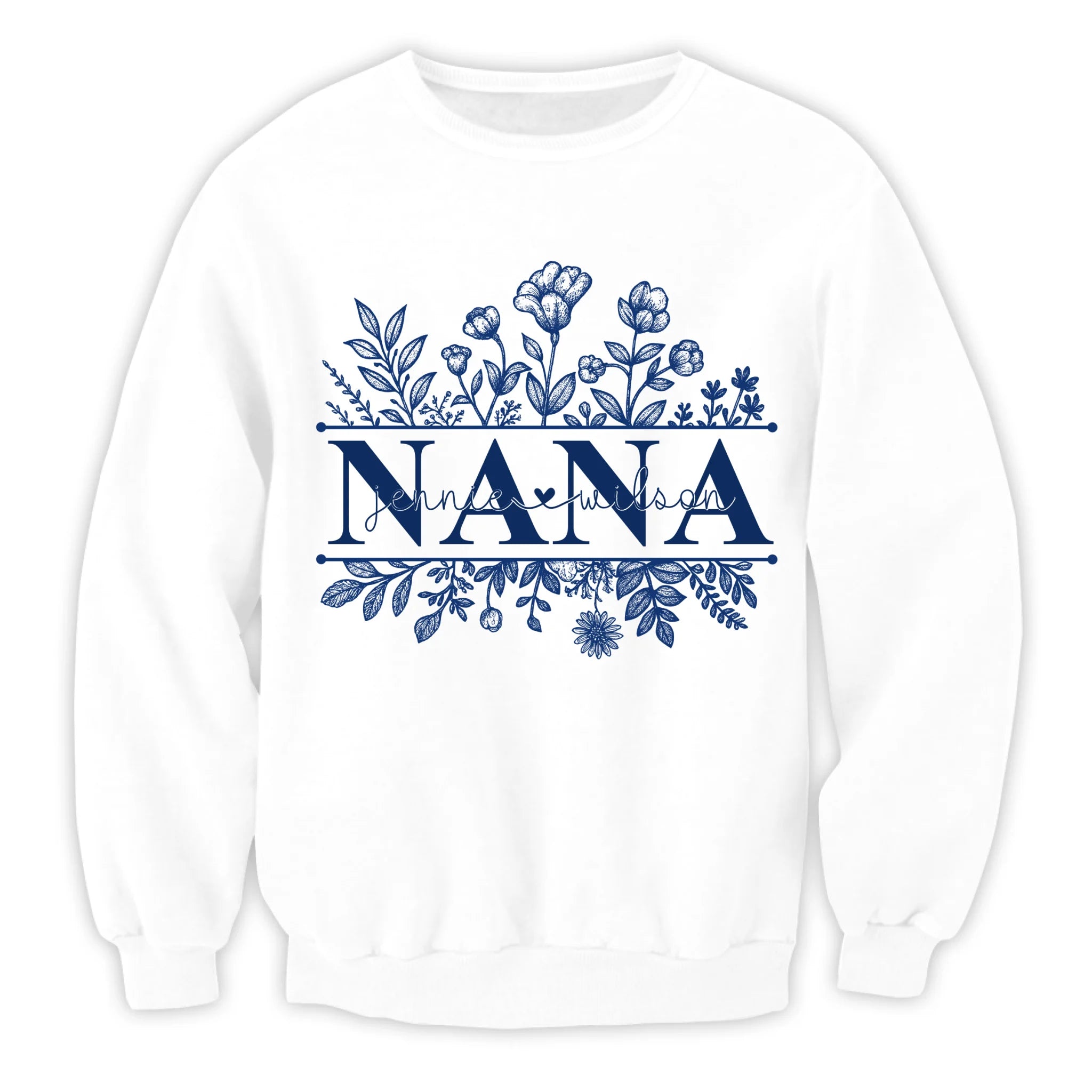 Wildflowers Grandma And Her Grandkids - Personalized T-Shirt, Gift For Grandma, Blue Toile De Jouy Wildflowers Gift