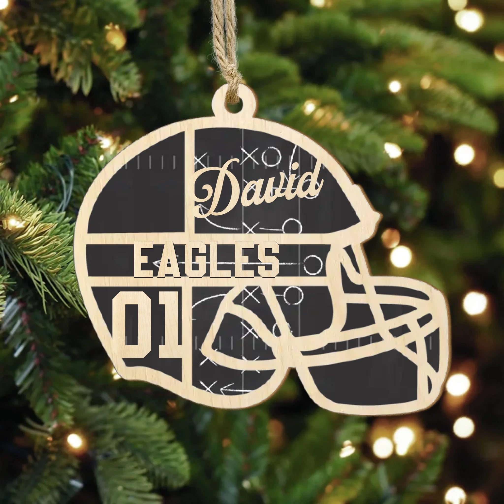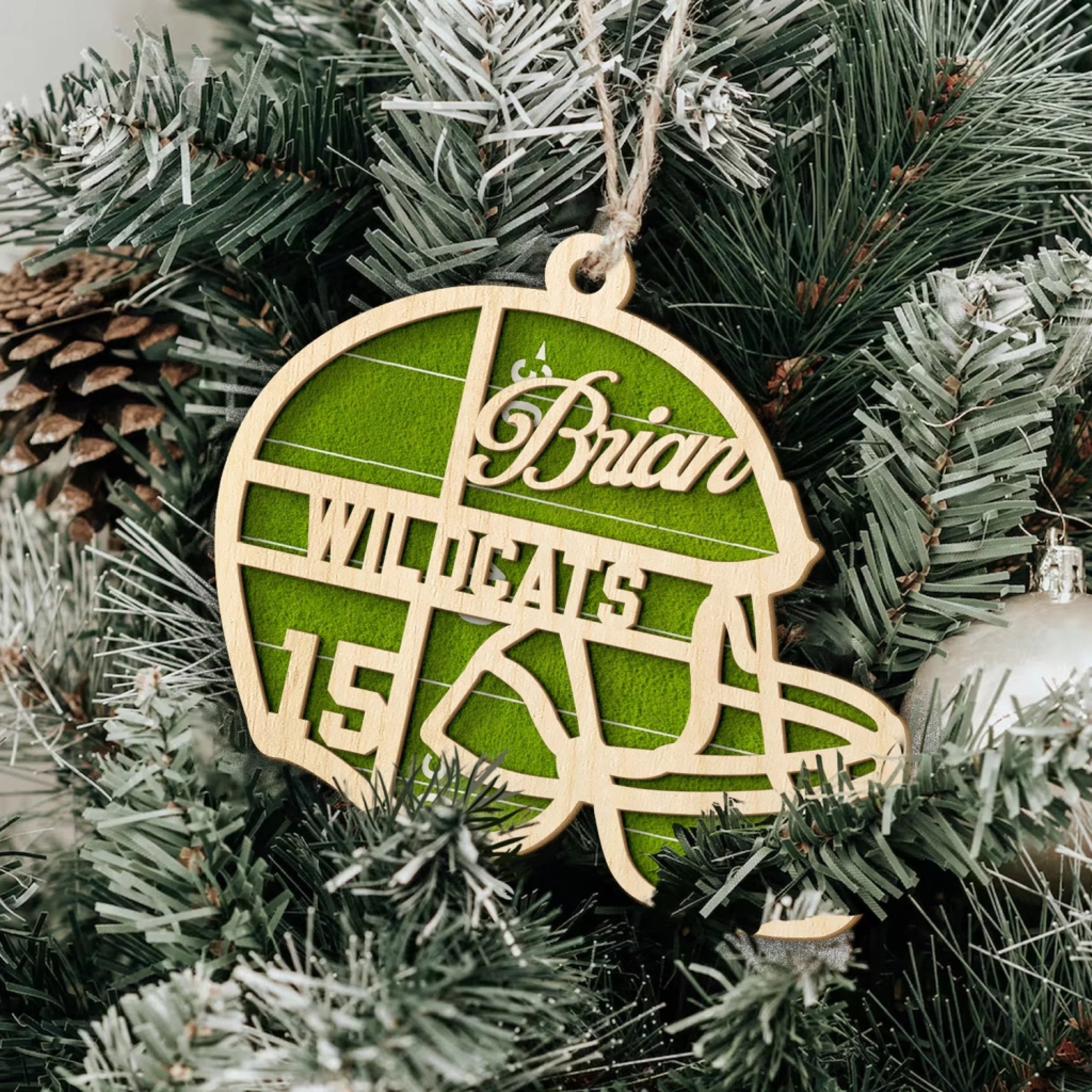 Football Helmet - Personalized 2-Layer Wooden Ornament, Football Christmas Gift, Gift for Football Lovers, Senior Football Gift