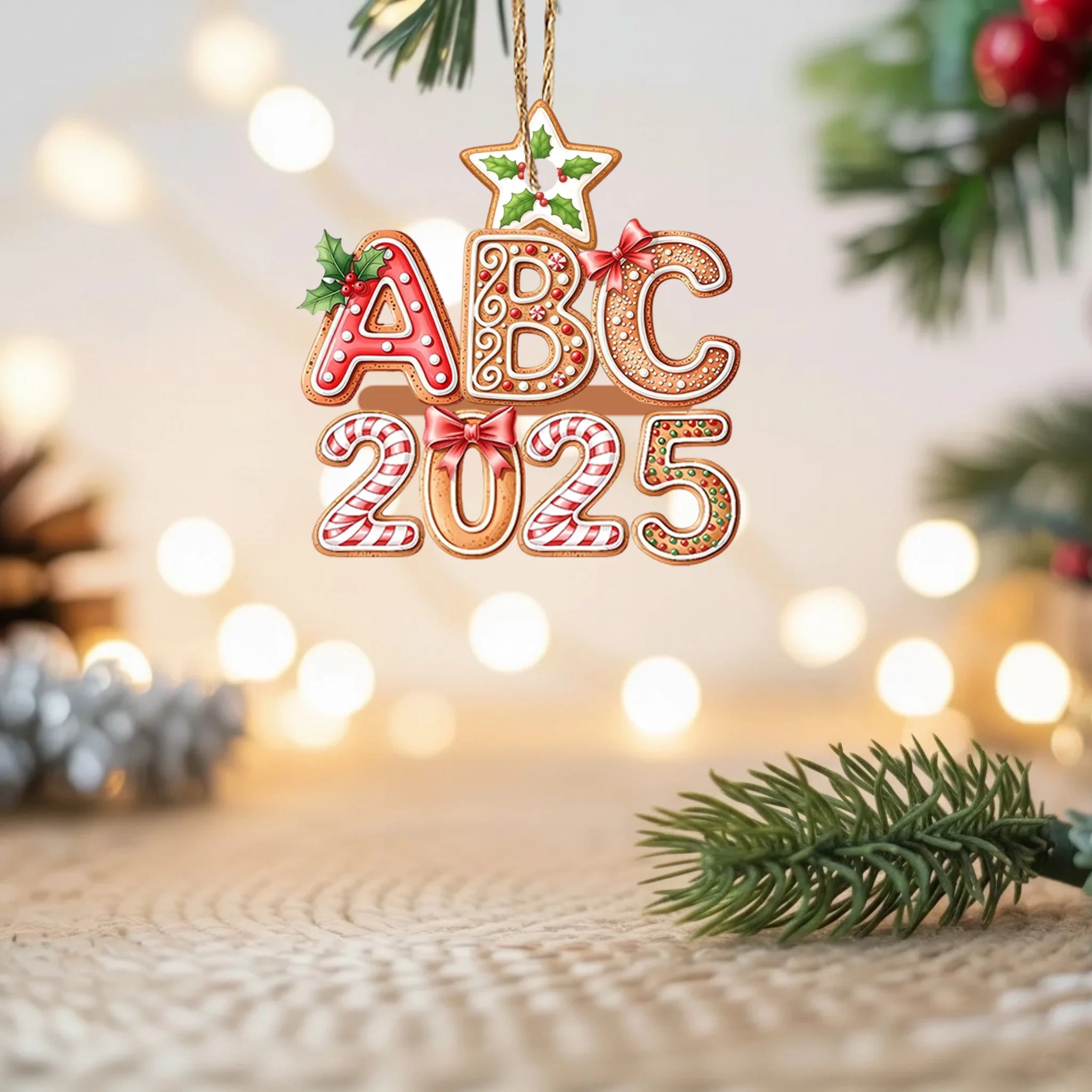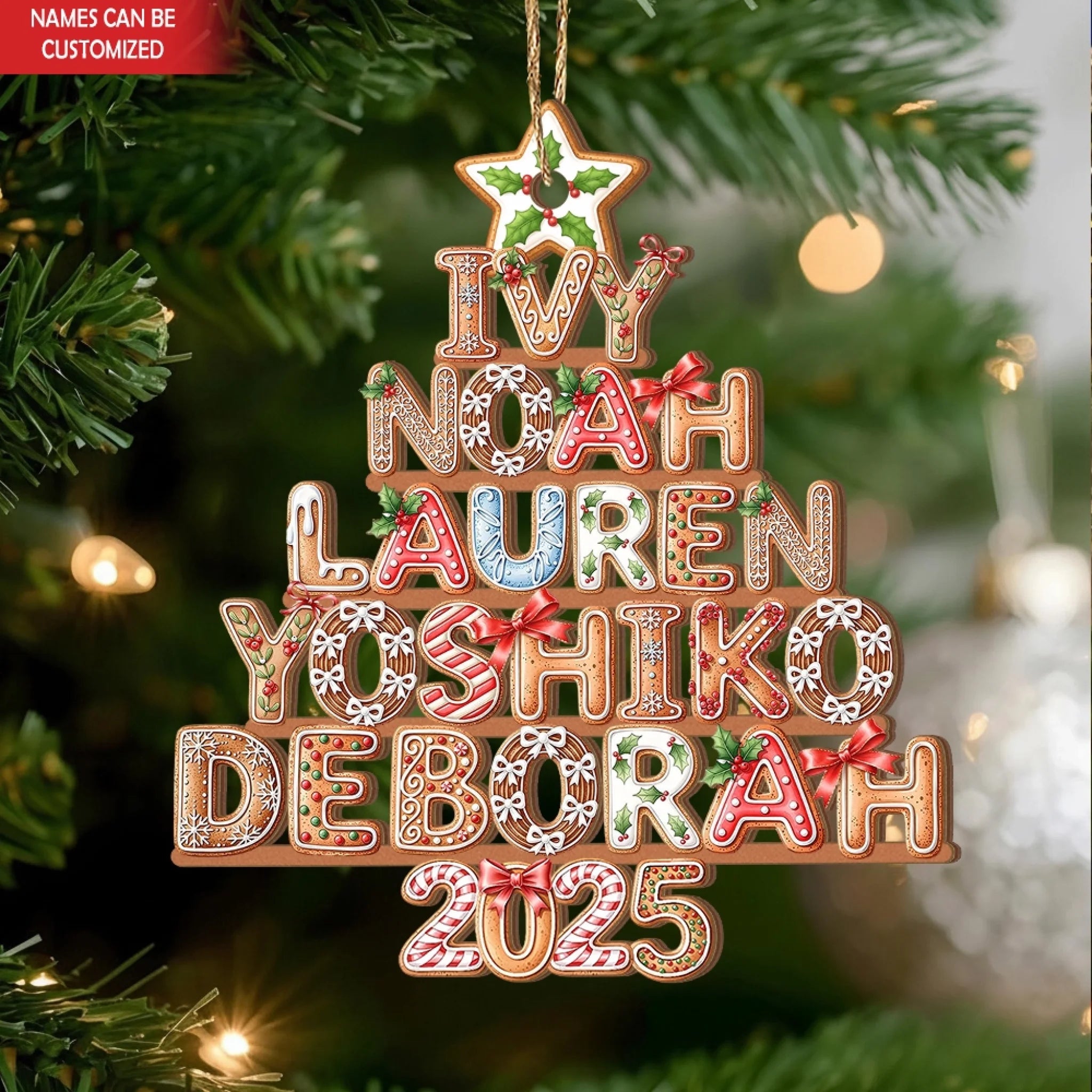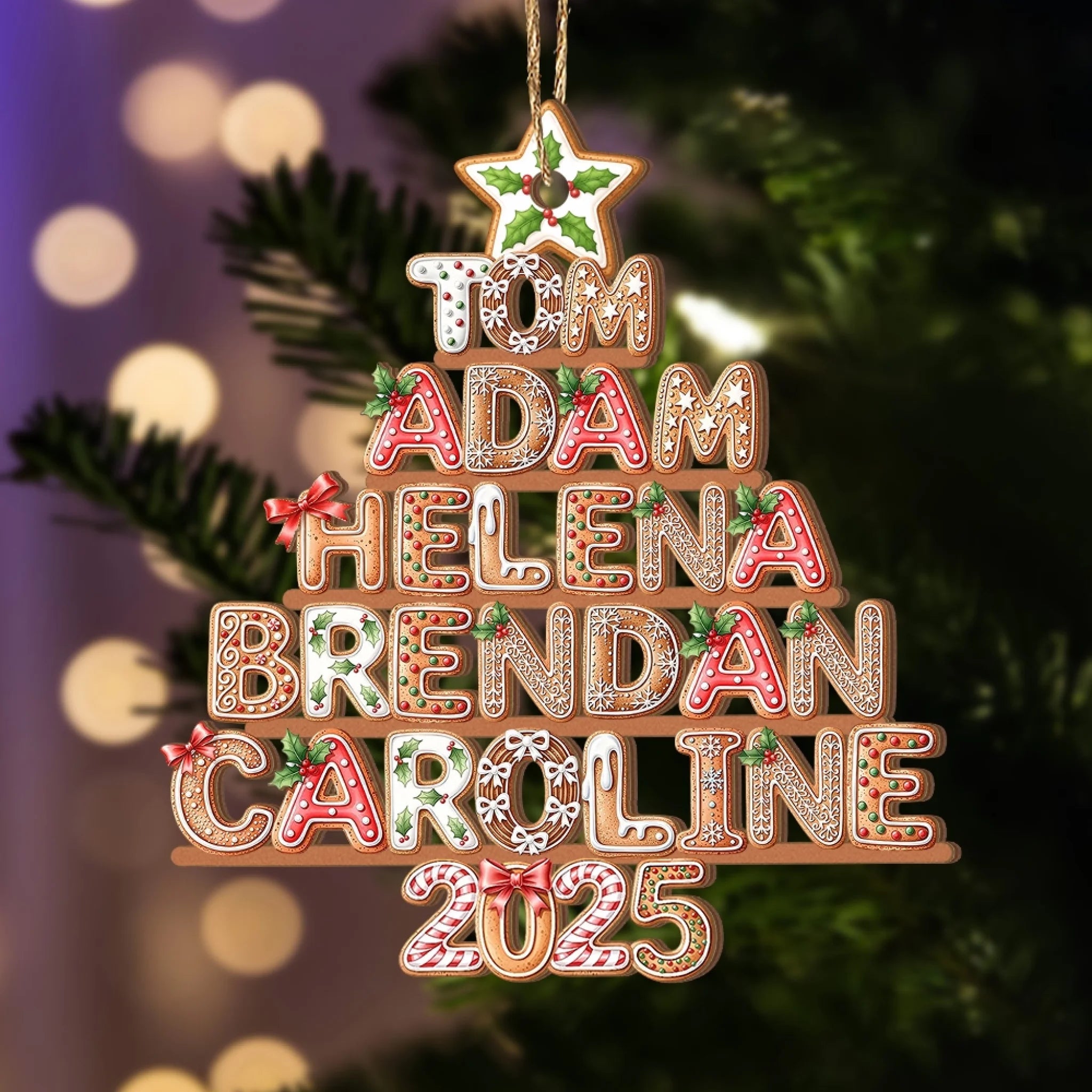 Gingerbread Alphabet With Family Name - Personalized Wooden Ornament, Gift For Family