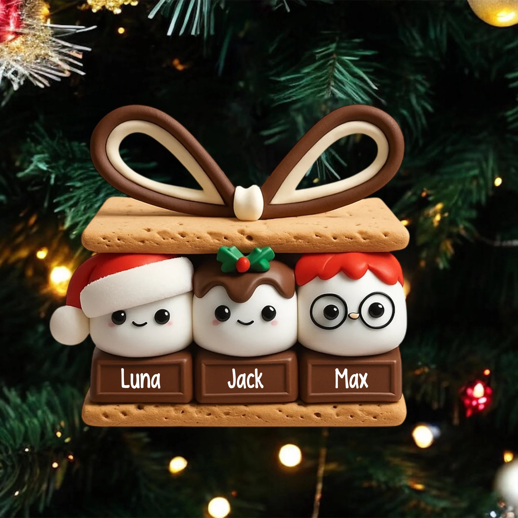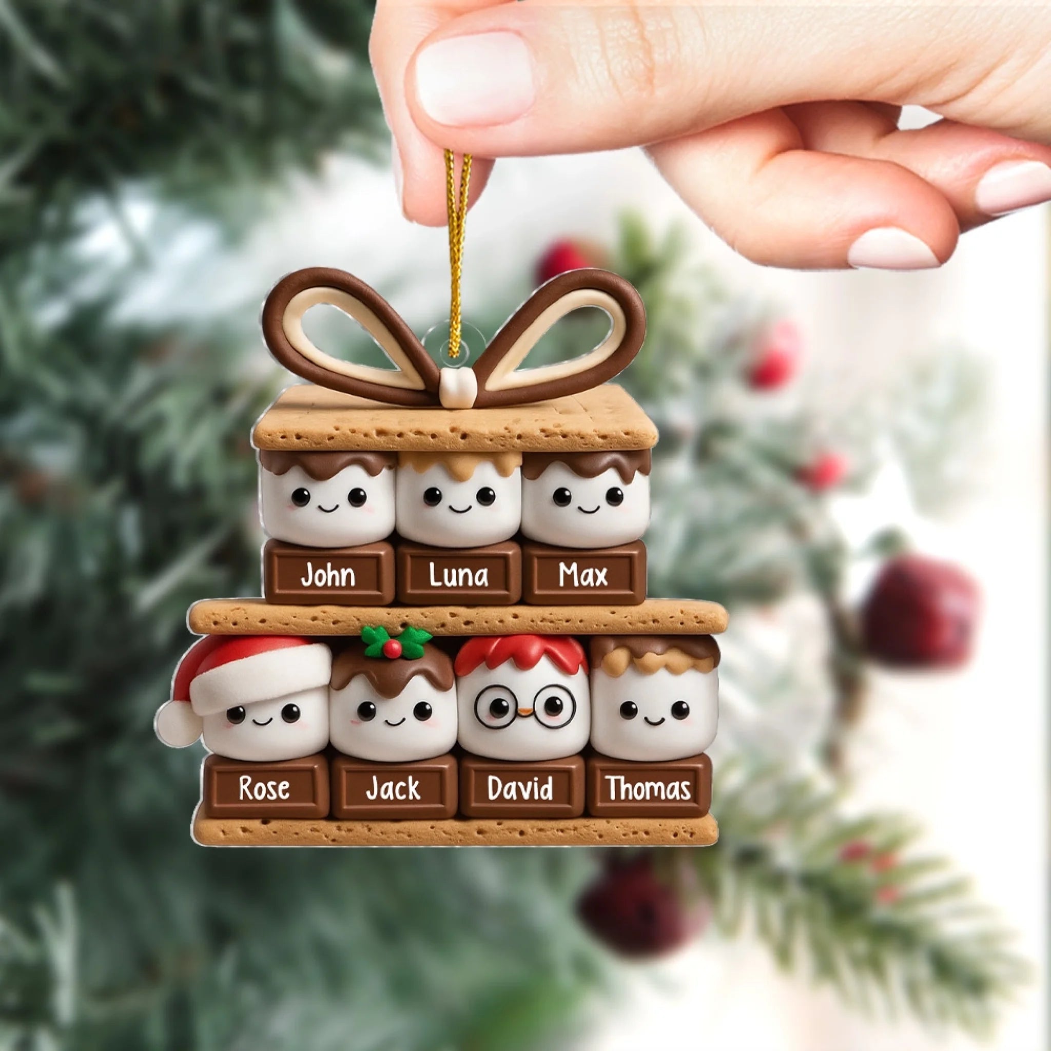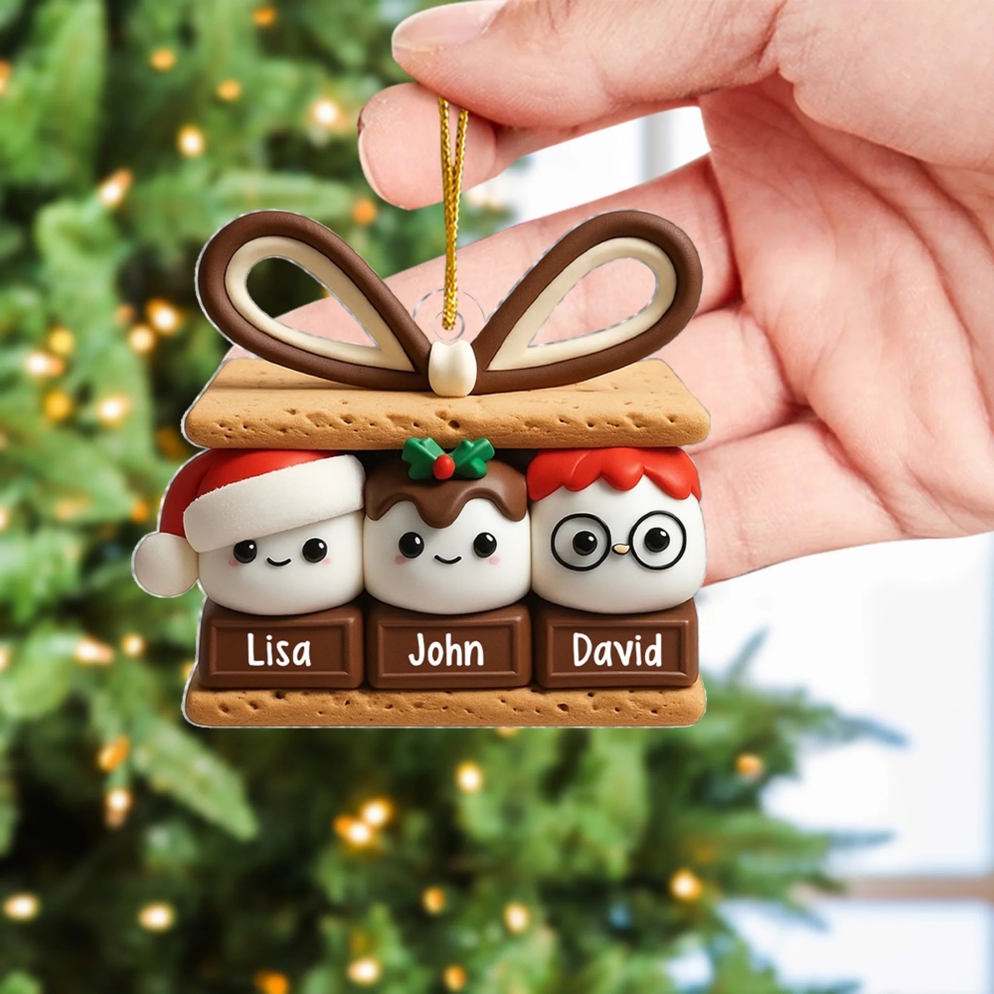 S’mores Family With Name - Personalized Acrylic Ornament, Custom Name Marshmallow, Cute Holiday Keepsake, Family Gift For Tree