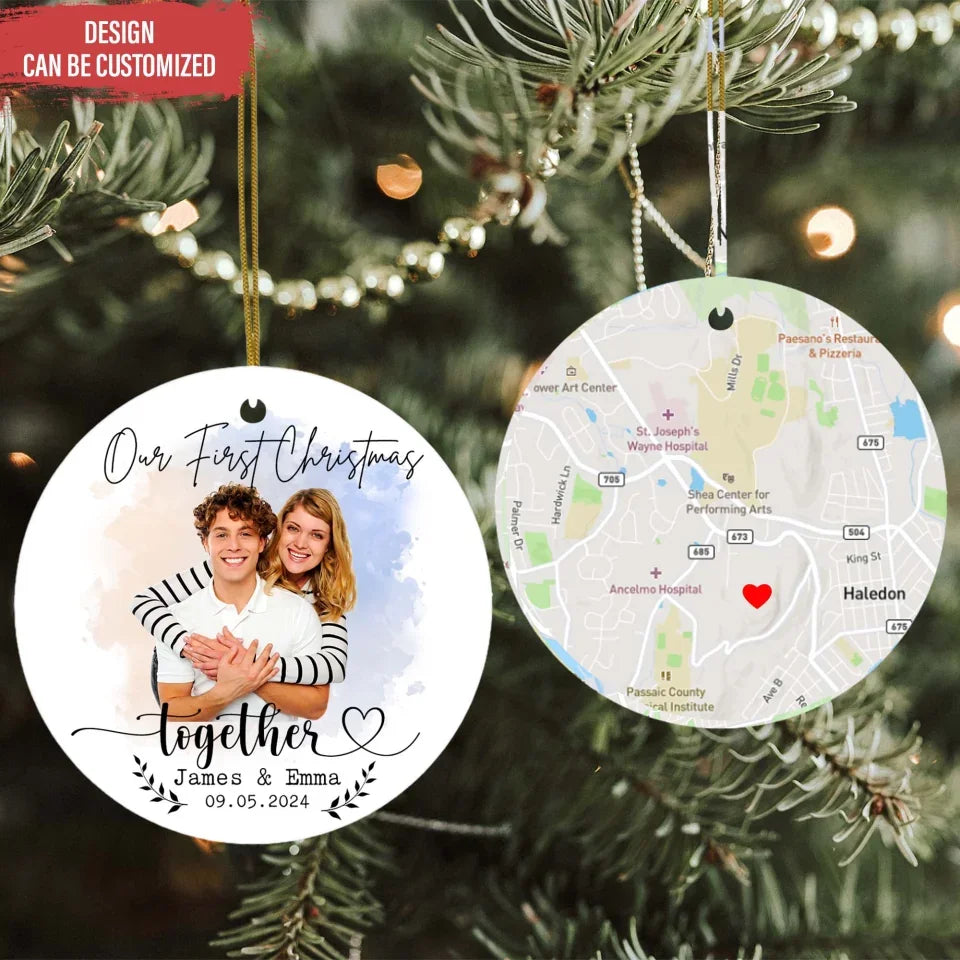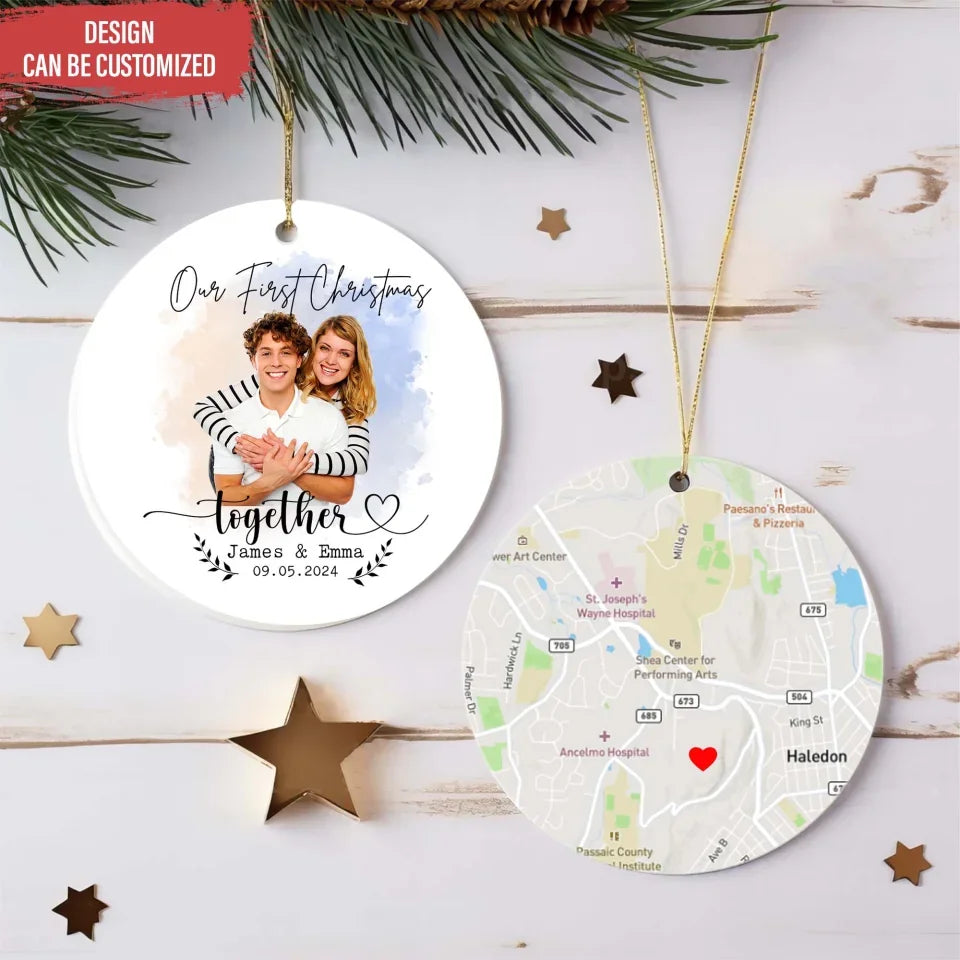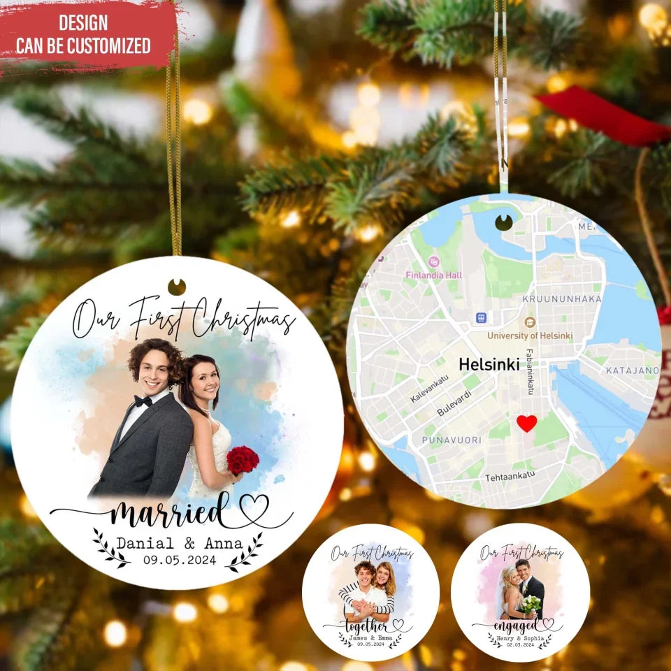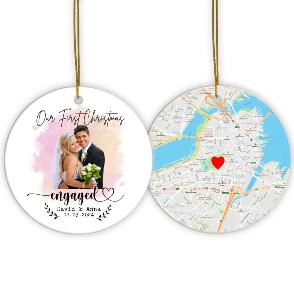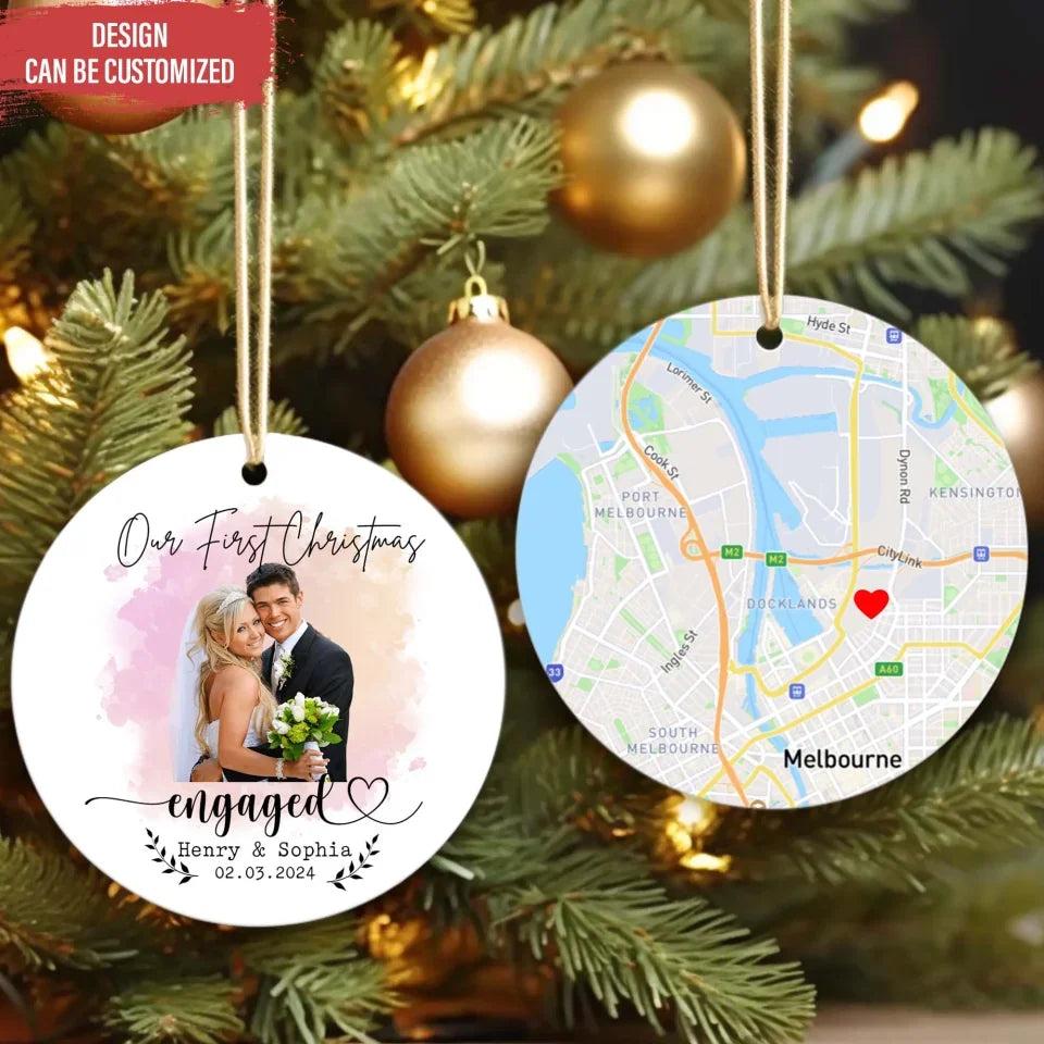 Location Engaged Couple - Personalized Ceramic Ornament, Newly Married Couple For Christmas - ORN388AN