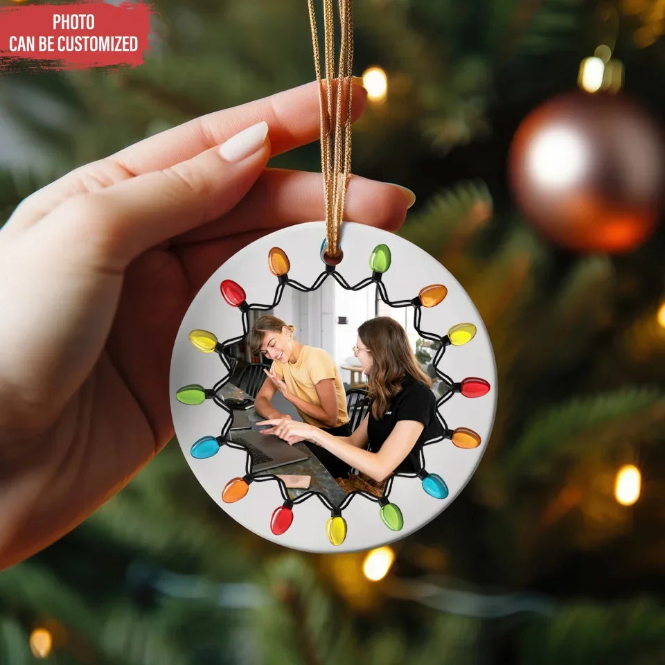 Our Personalized ceramic ornament is a great gift for your clients and friends to remember you year after year. From printing one color to full color, this ornament will be the perfect souvenir for holidays, weddings, graduations, engagements, and memorials. This beautiful ornament will shed some light on your Christmas tree this year.