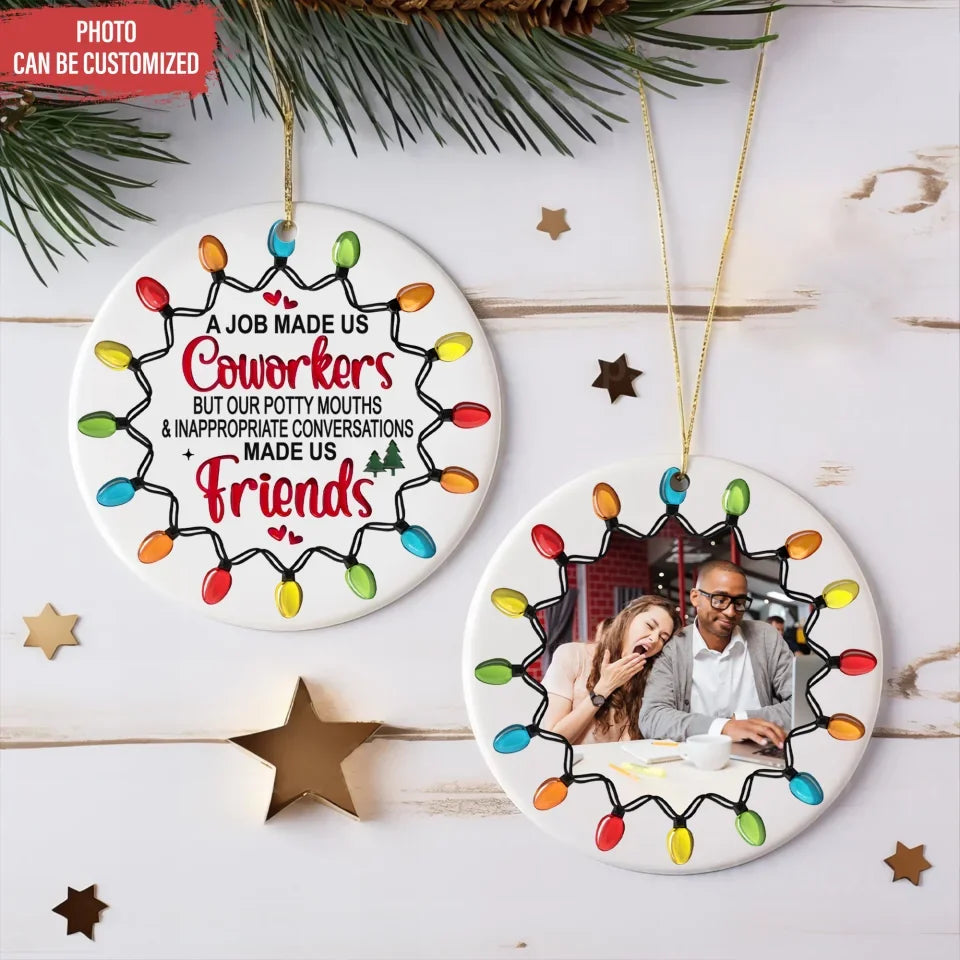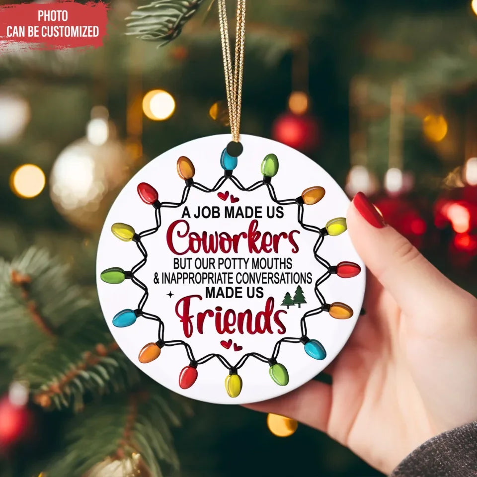 A Job Made Us Coworker But Our Potty Mouths Made Us Friends - Personalized Ceramic Ornament - ORN199YV