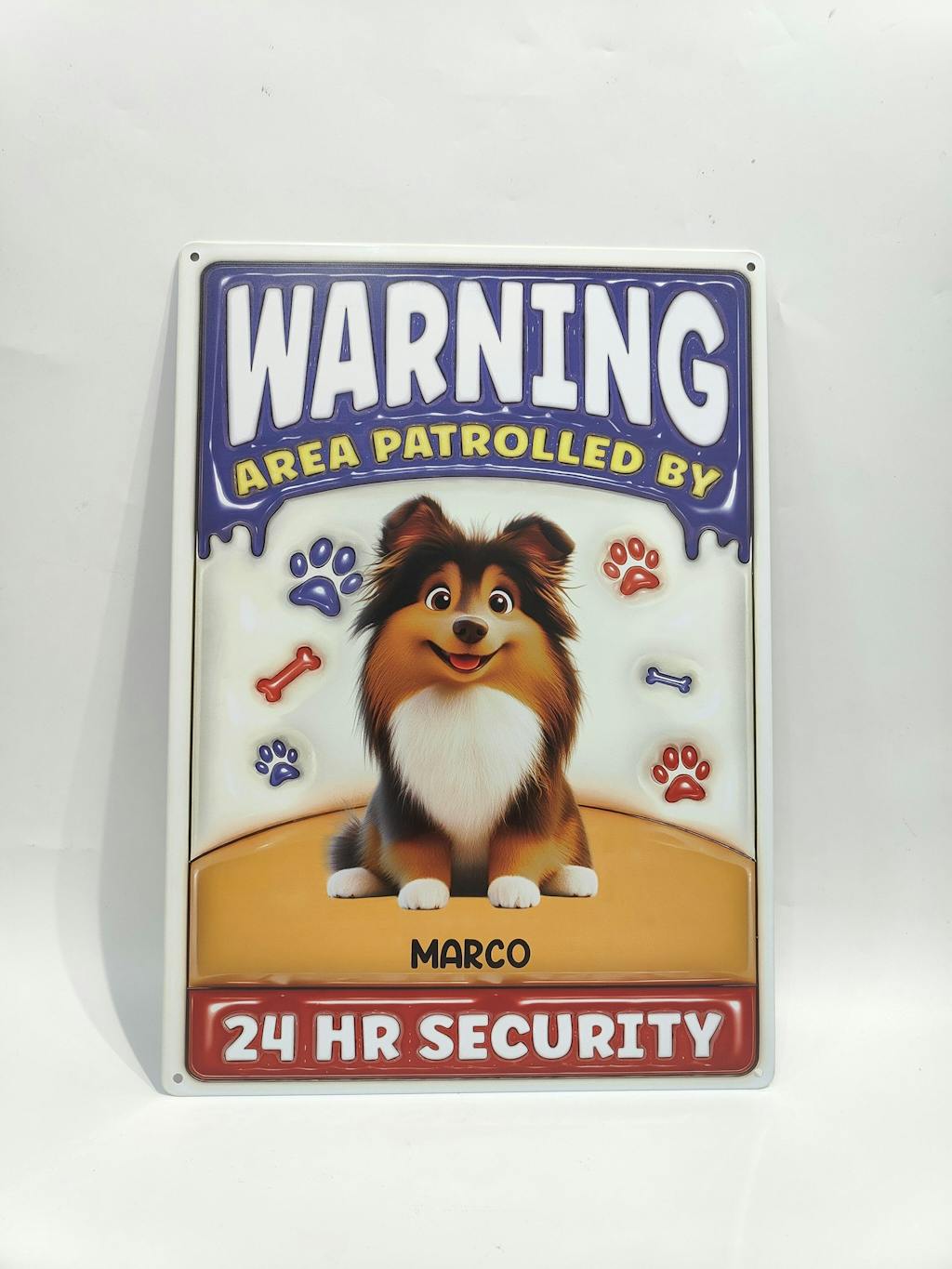 Funny Gift, Warning Area Patrolled By 24 Hr Security - Personalized Metal Sign, Gift For Dog Lover