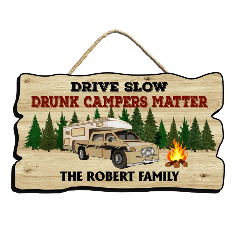 Wood Sign Style New, Drive Slow Drunk Campers Matter - Personalized Door Sign