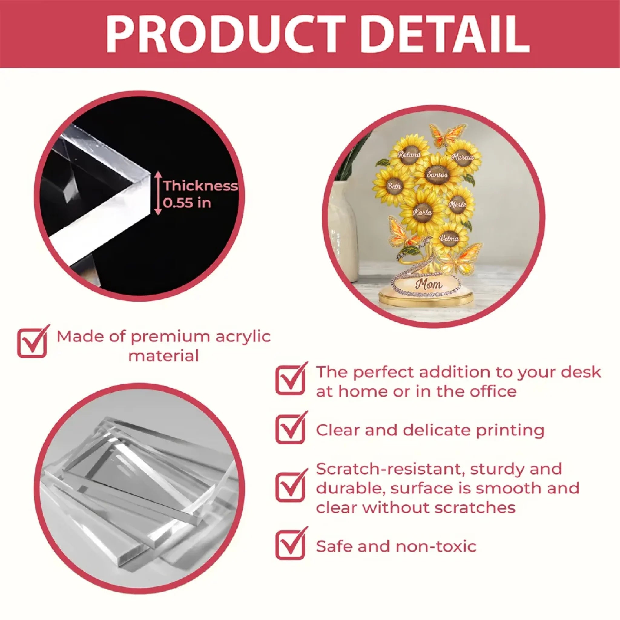 Sunflower Mom & Me, Always Connected - Personalized Acrylic Plaque, Gift For Mom/ grandma, Loving Gift