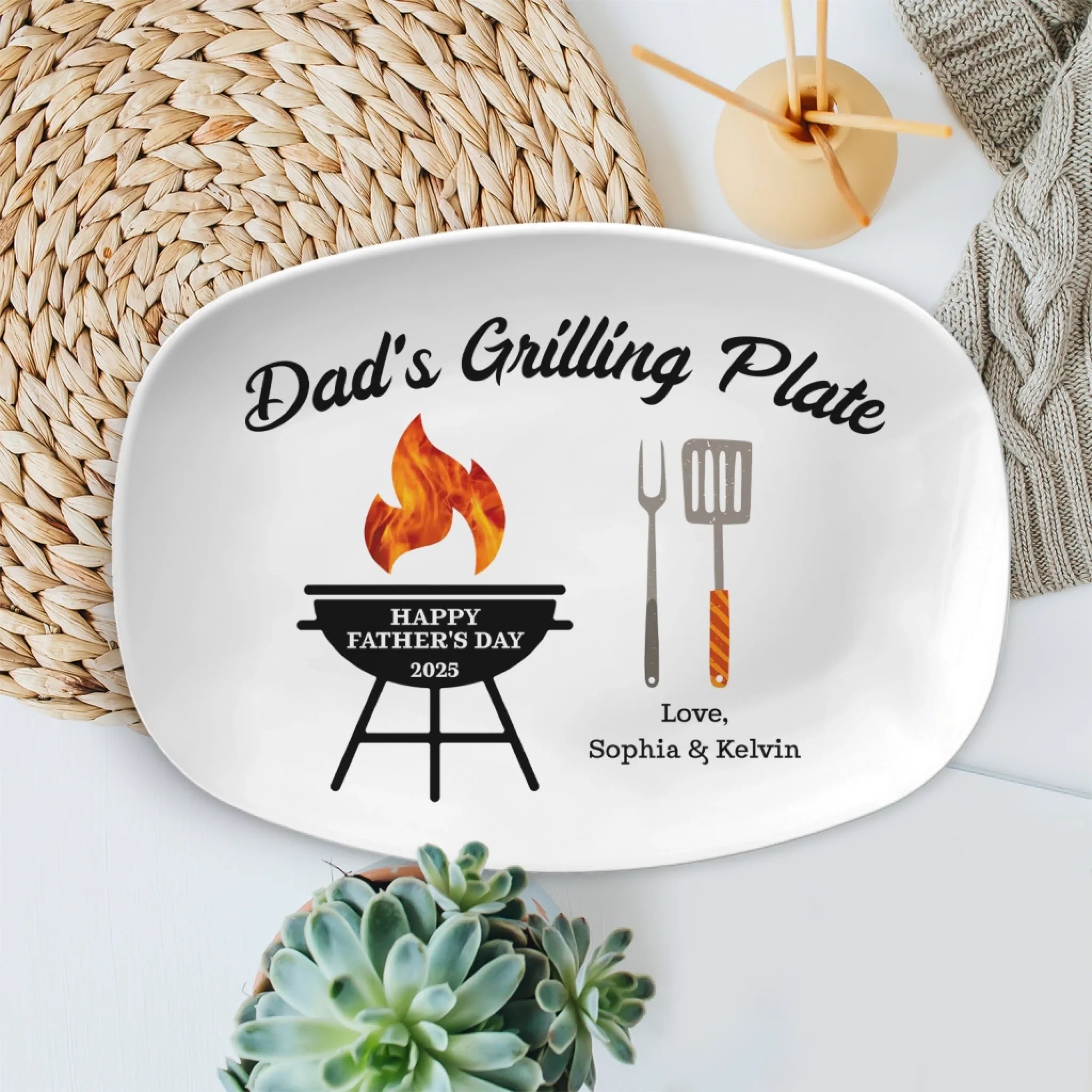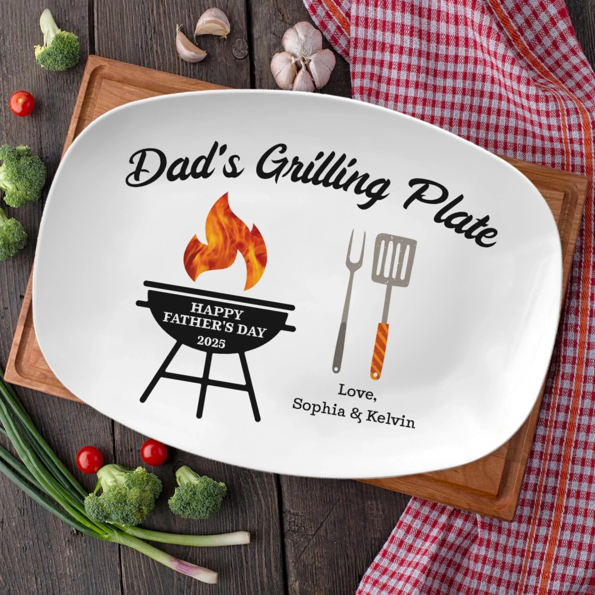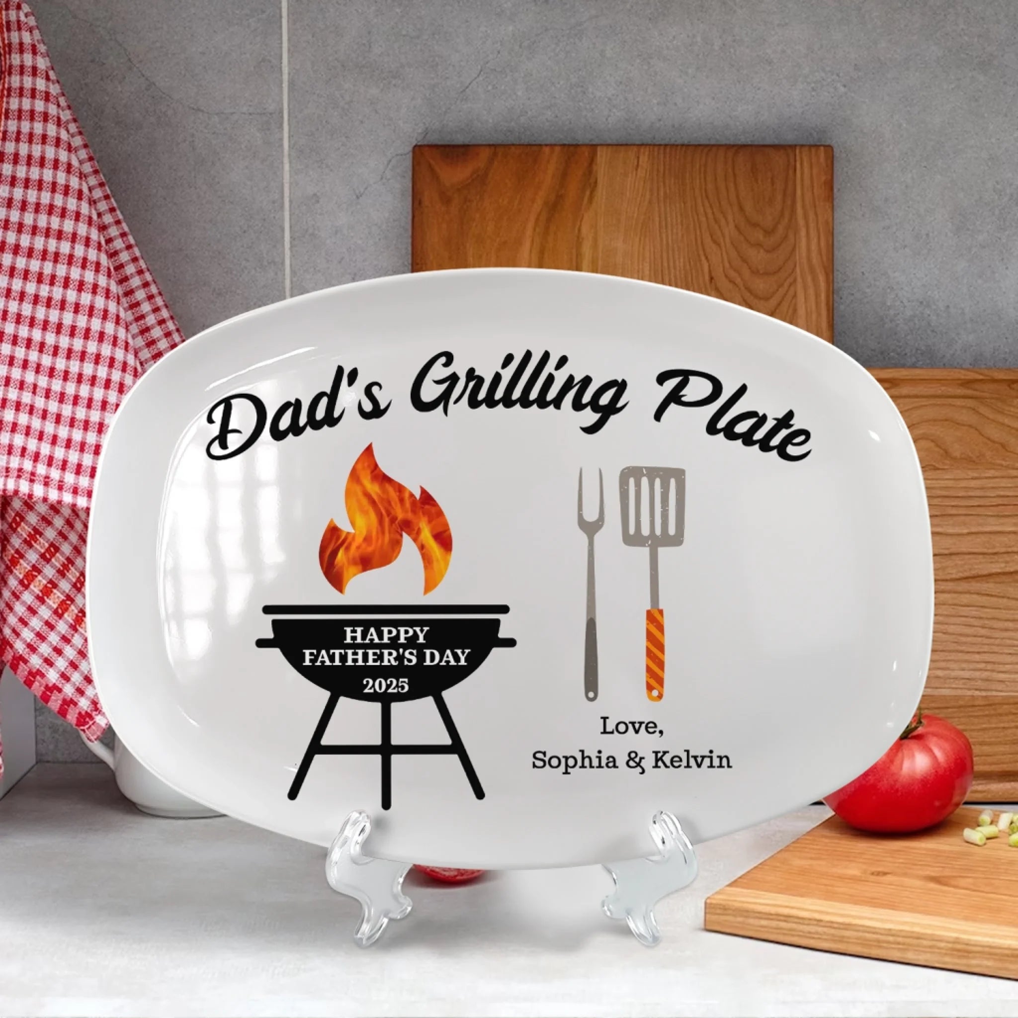 Dad's Grilling Plate - Personalized Platter, Gift for Dad/Grandpa