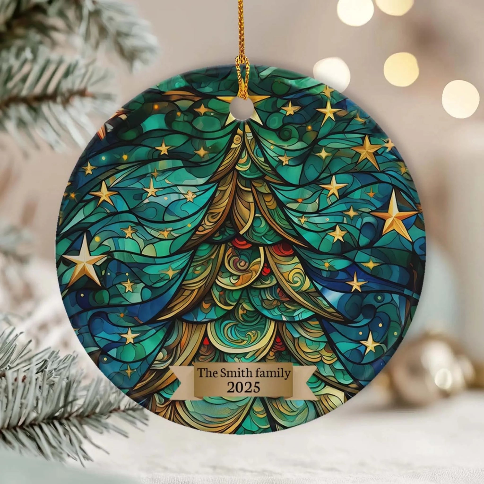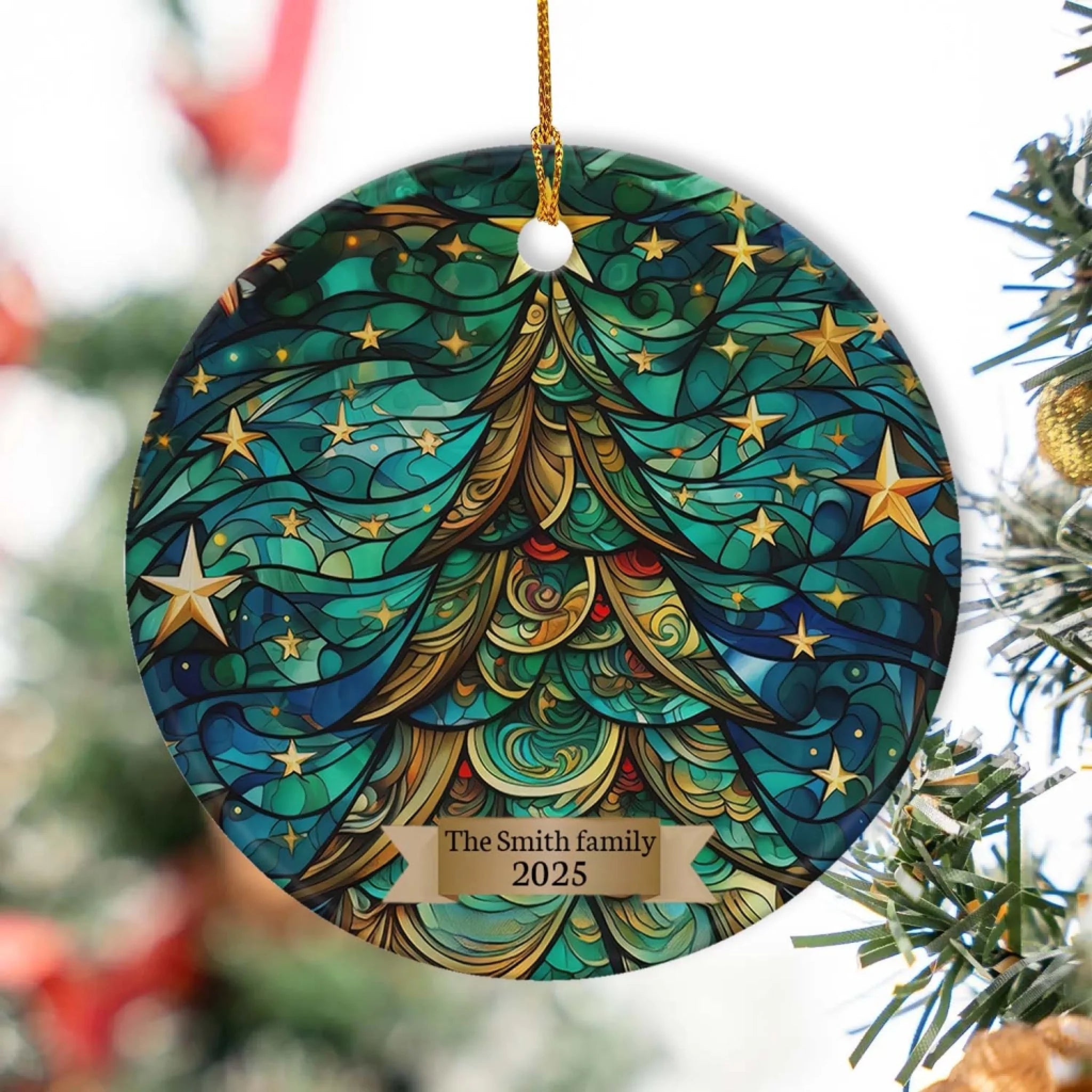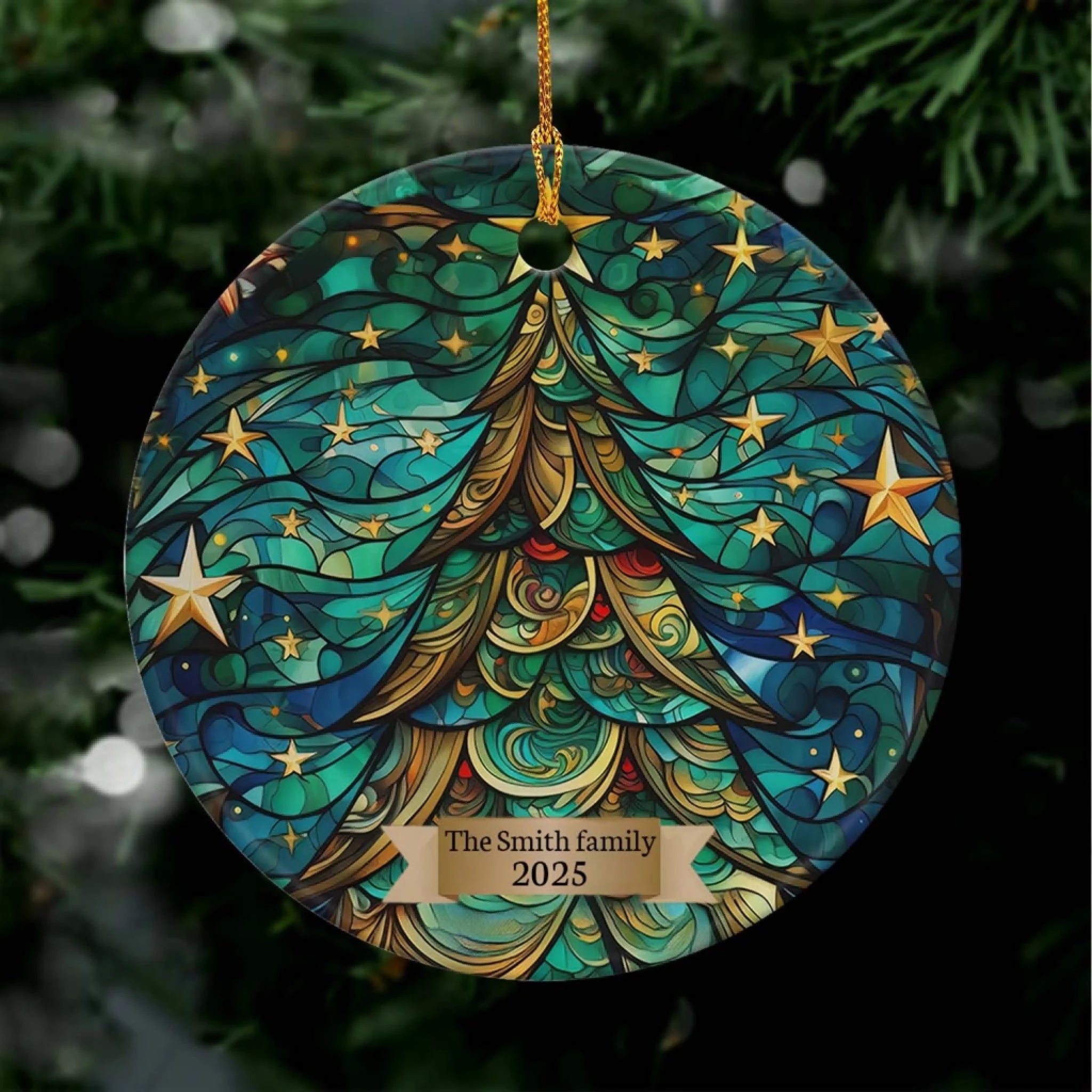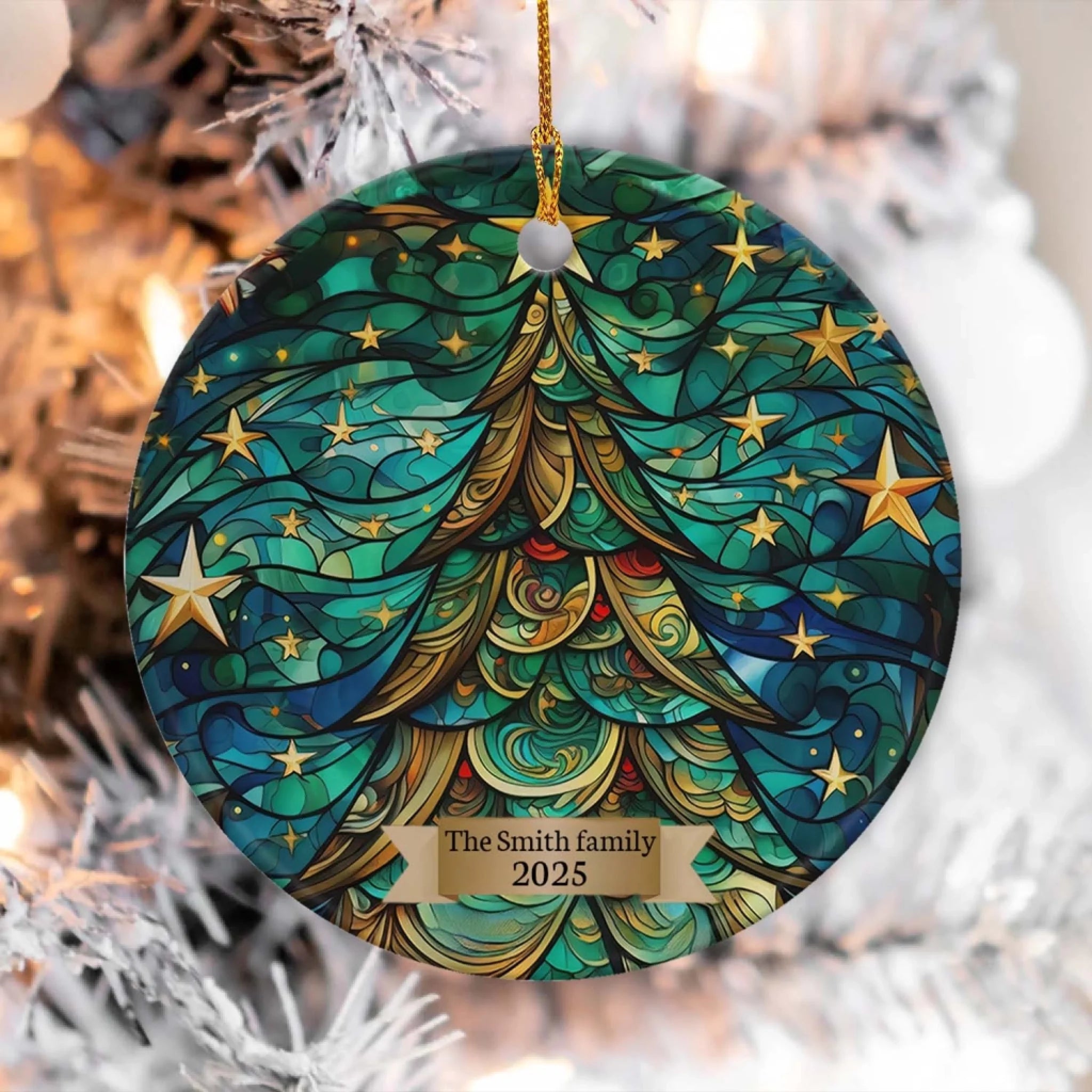 Christmas Tree Holiday - Personalized Ceramic Ornament, Family Gift