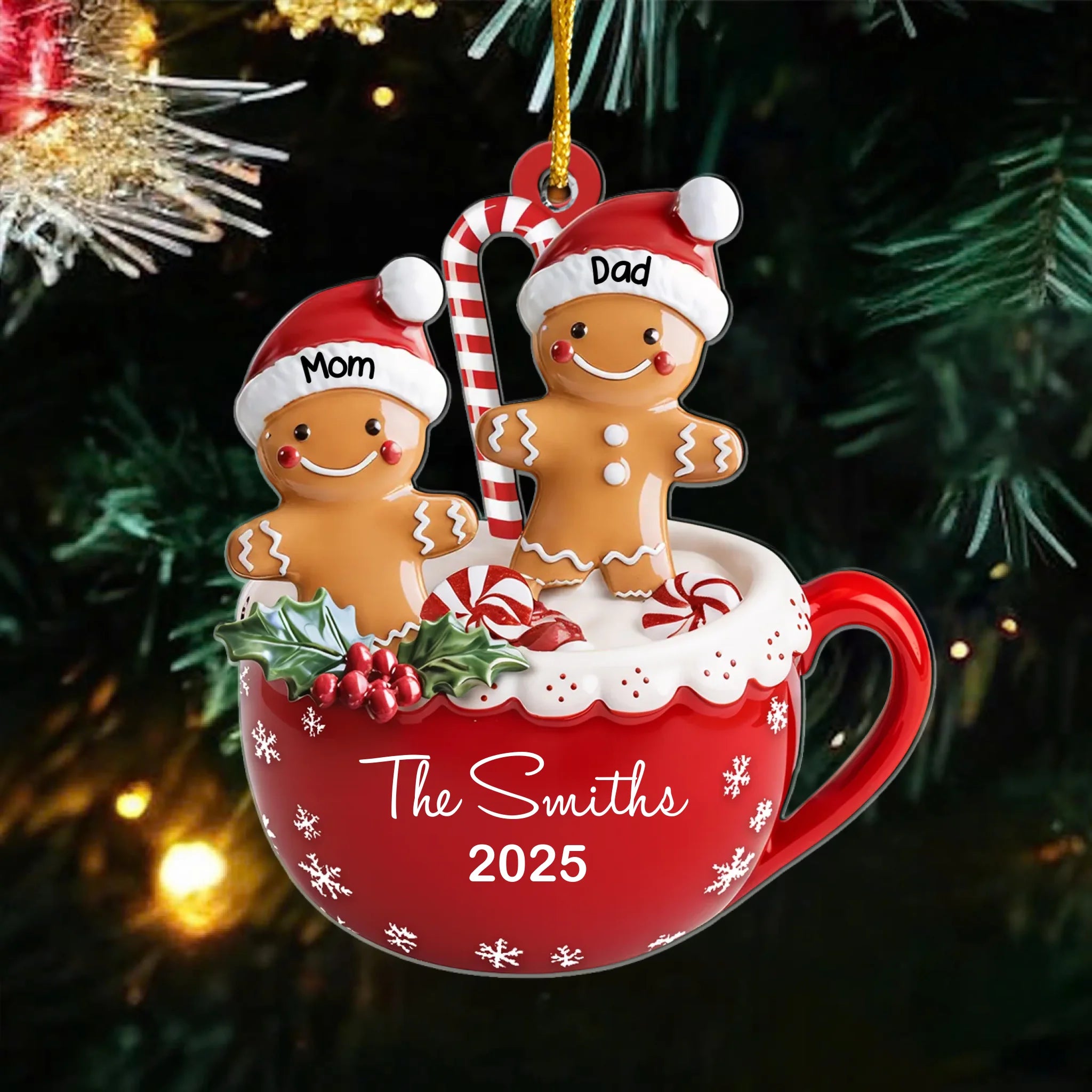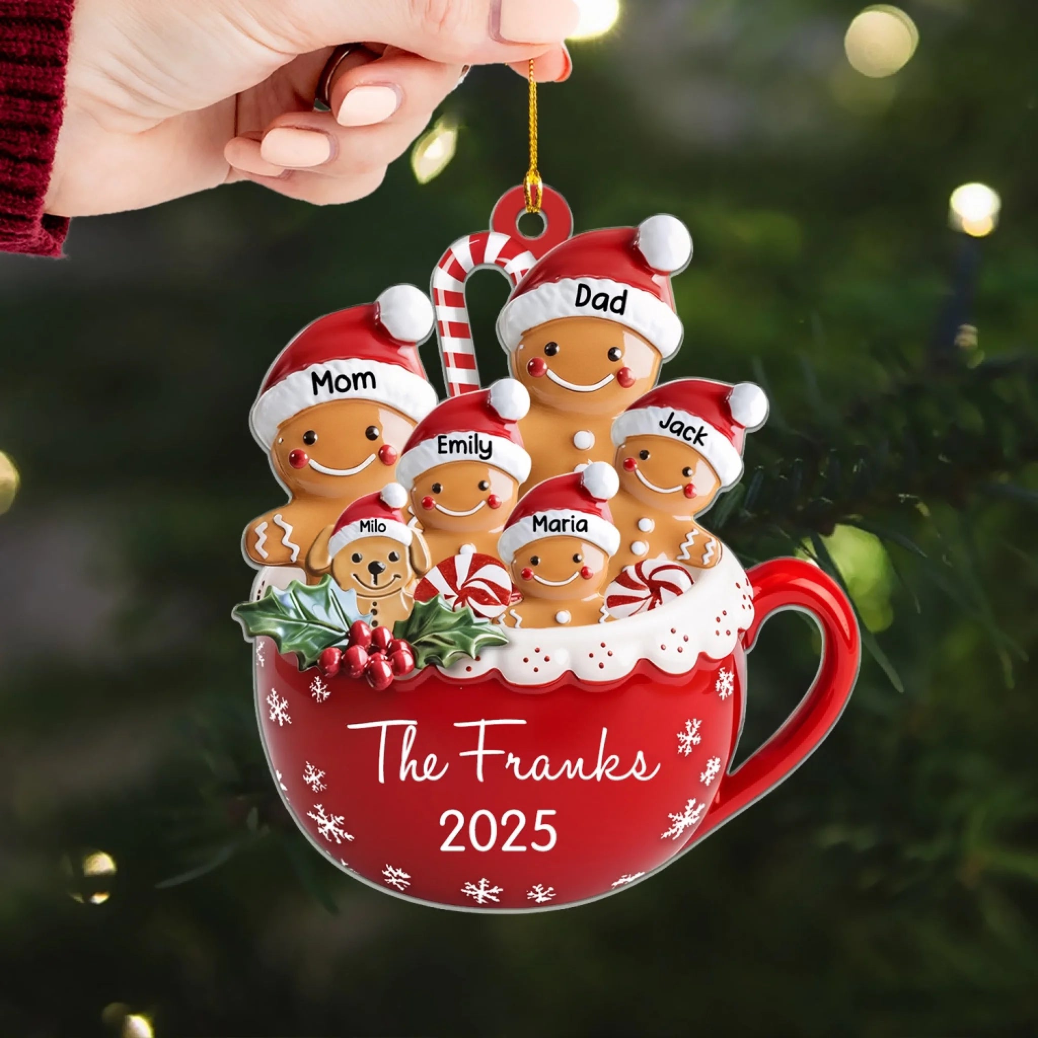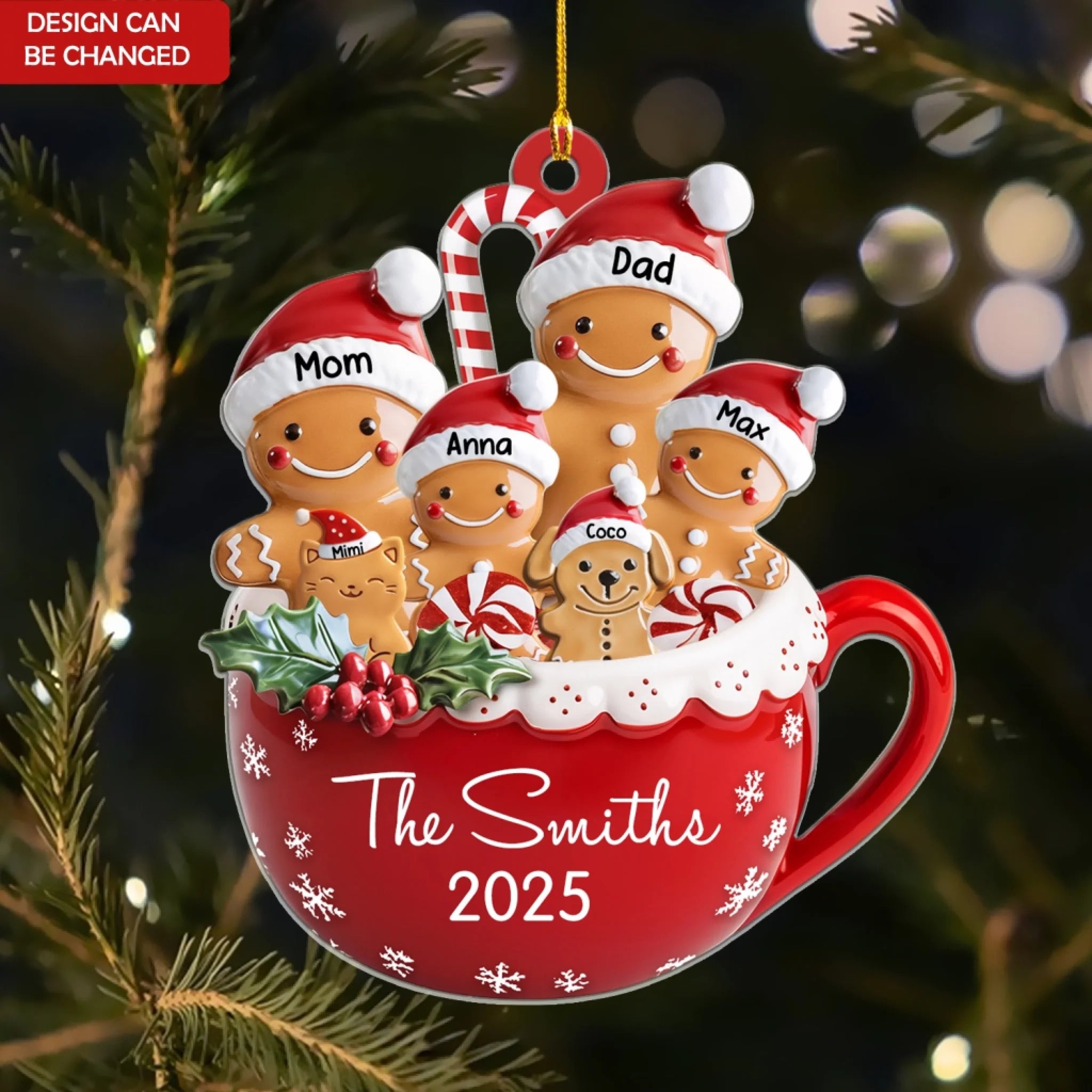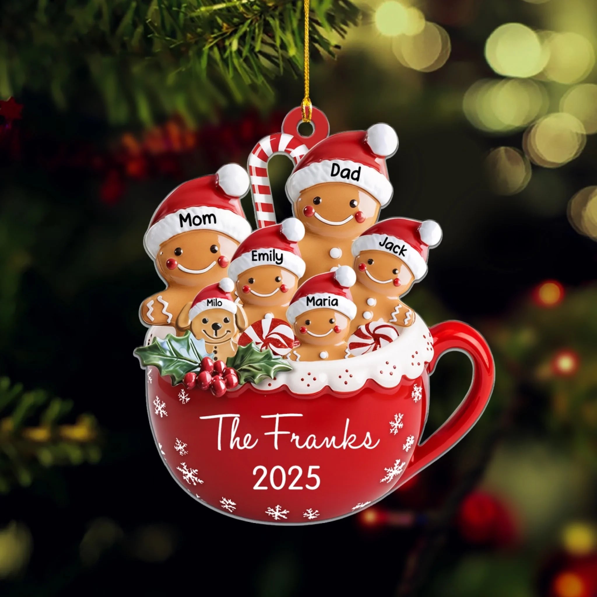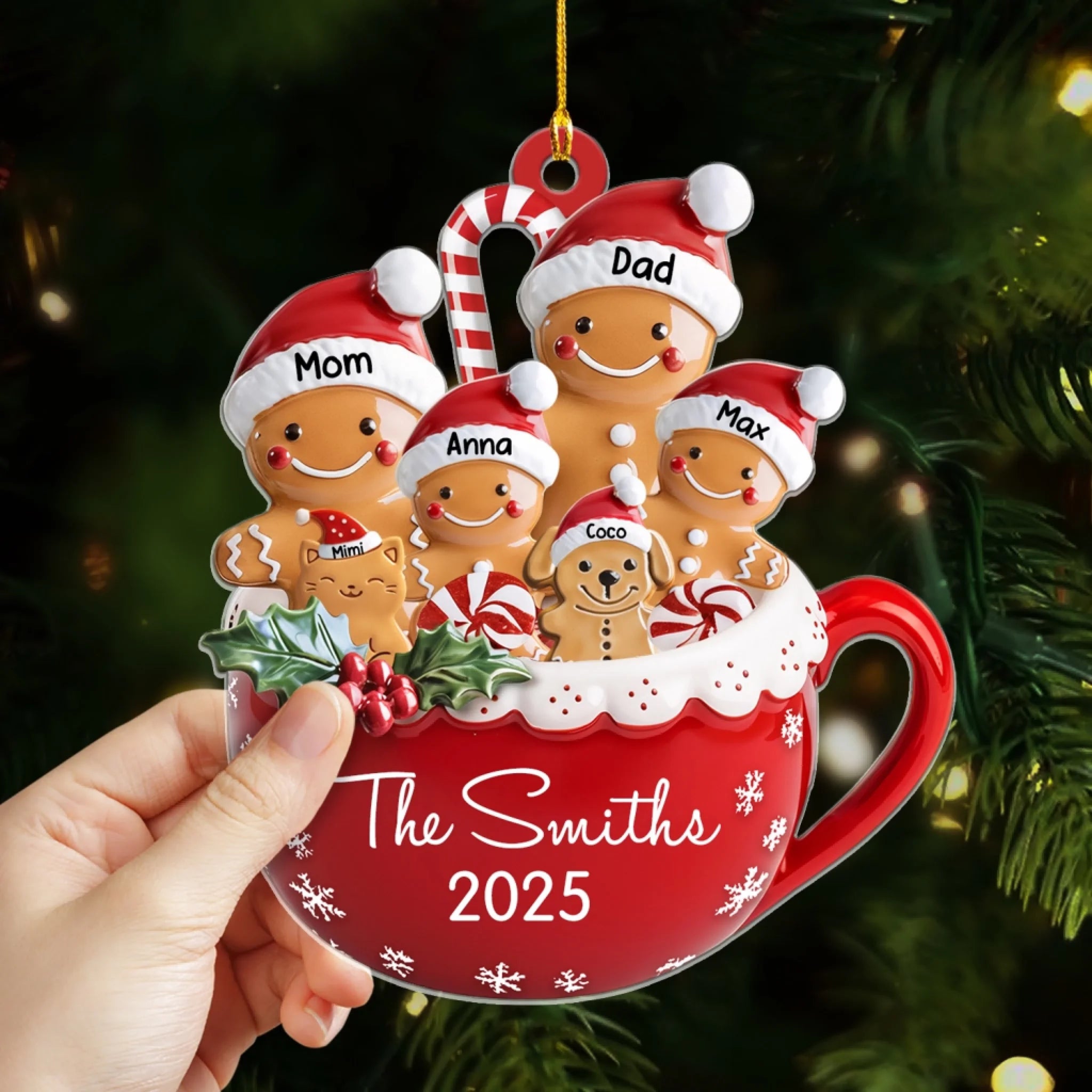 Gingerbread Family With Pets - Personalized Acrylic Ornament, Christmas Decoration, Xmas Gift