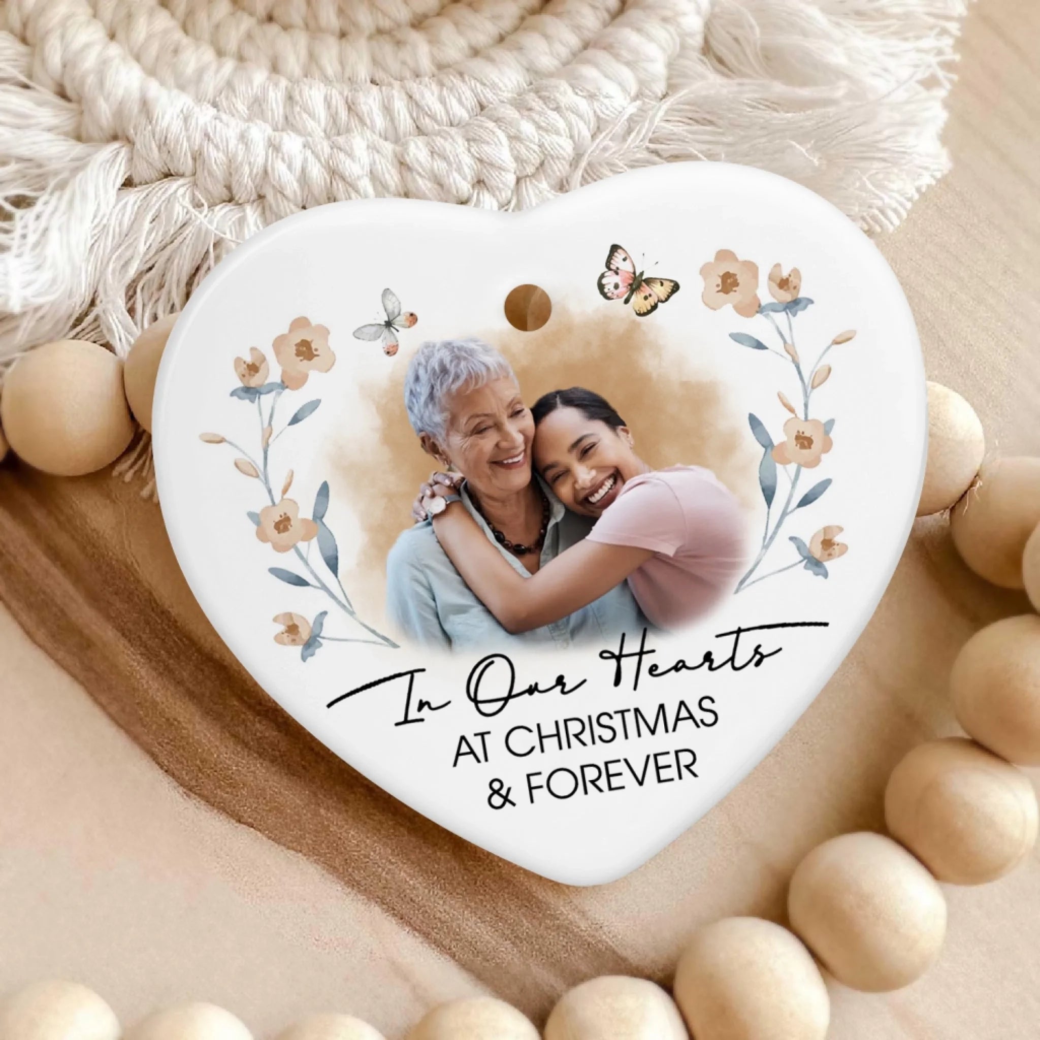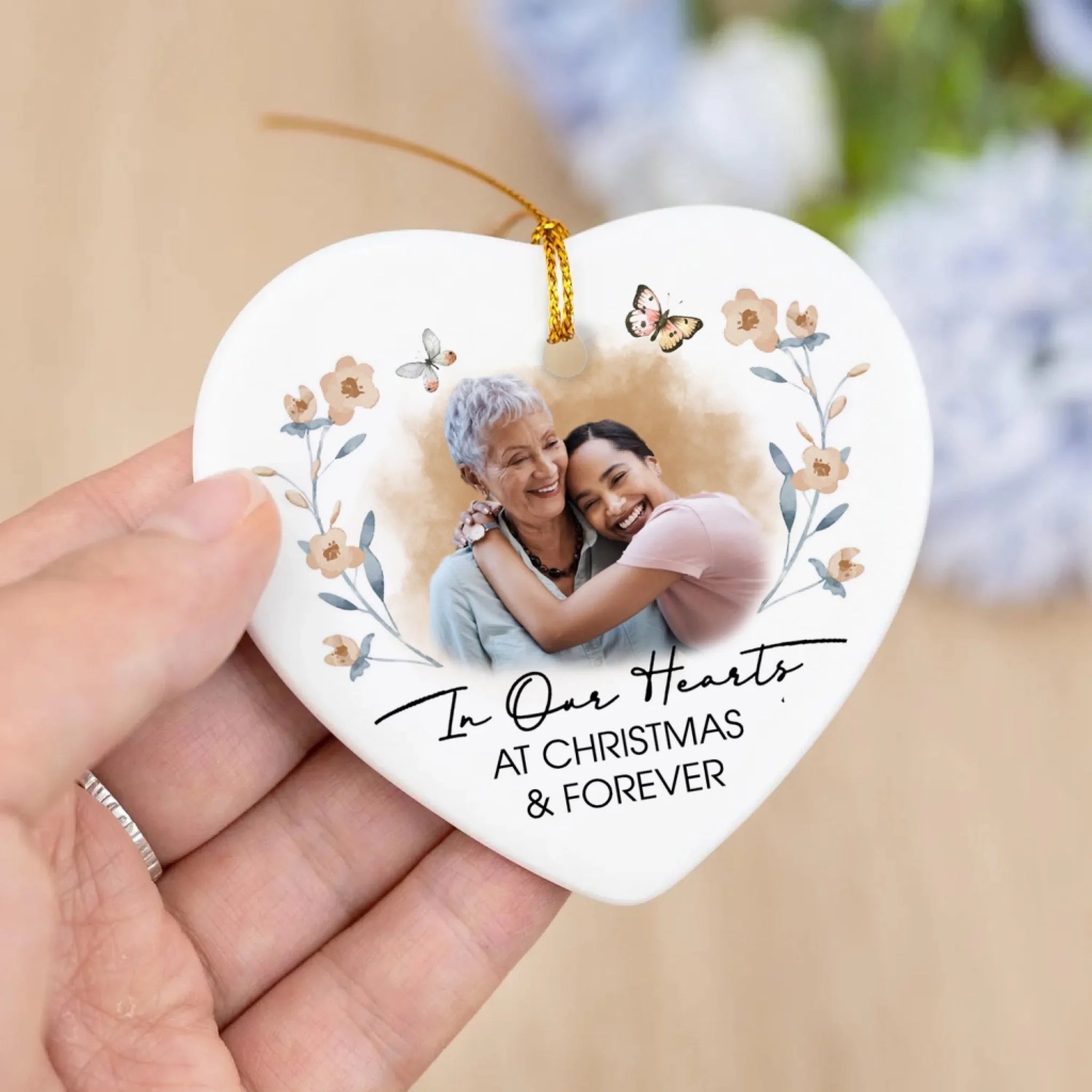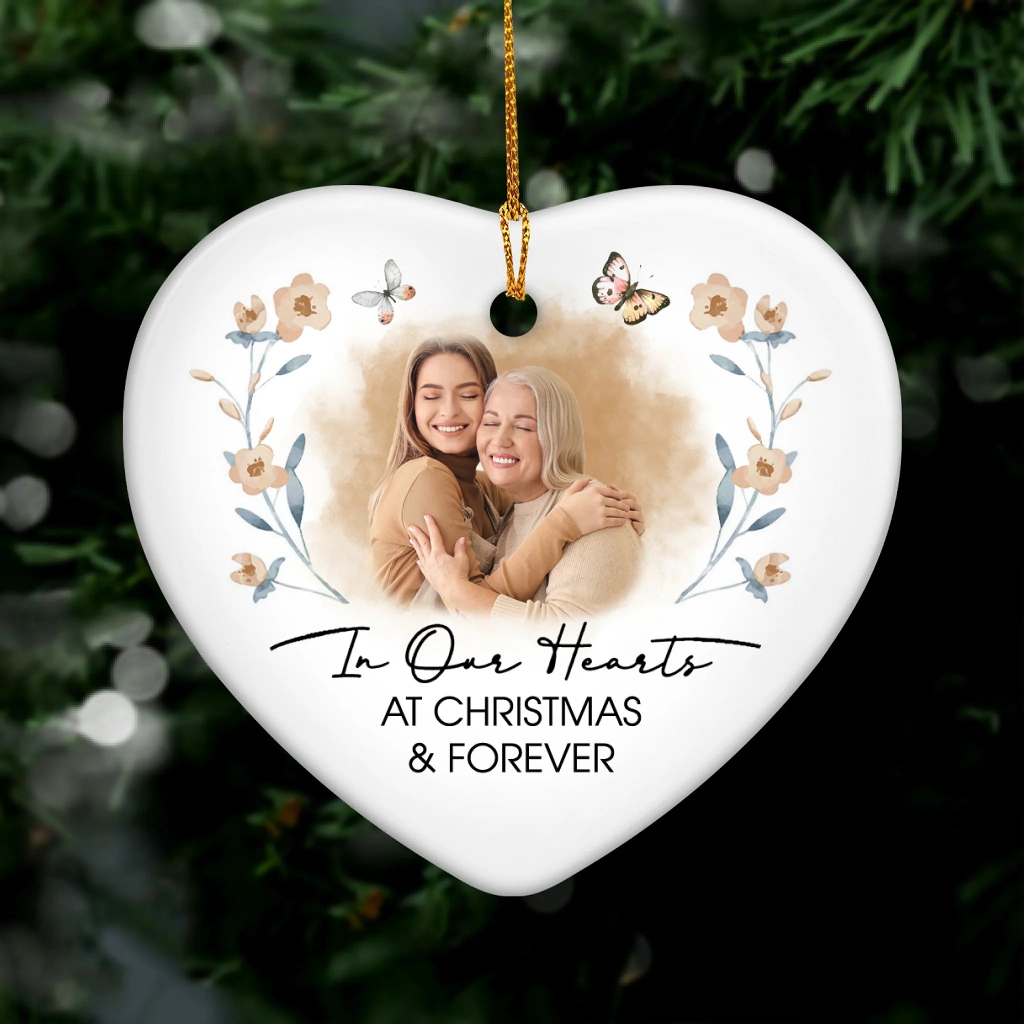 In Our Hearts At Christmas & Forever - Personalized Heart Ceramic Ornament, Memorial Gift, Loss Of Loved One Gift