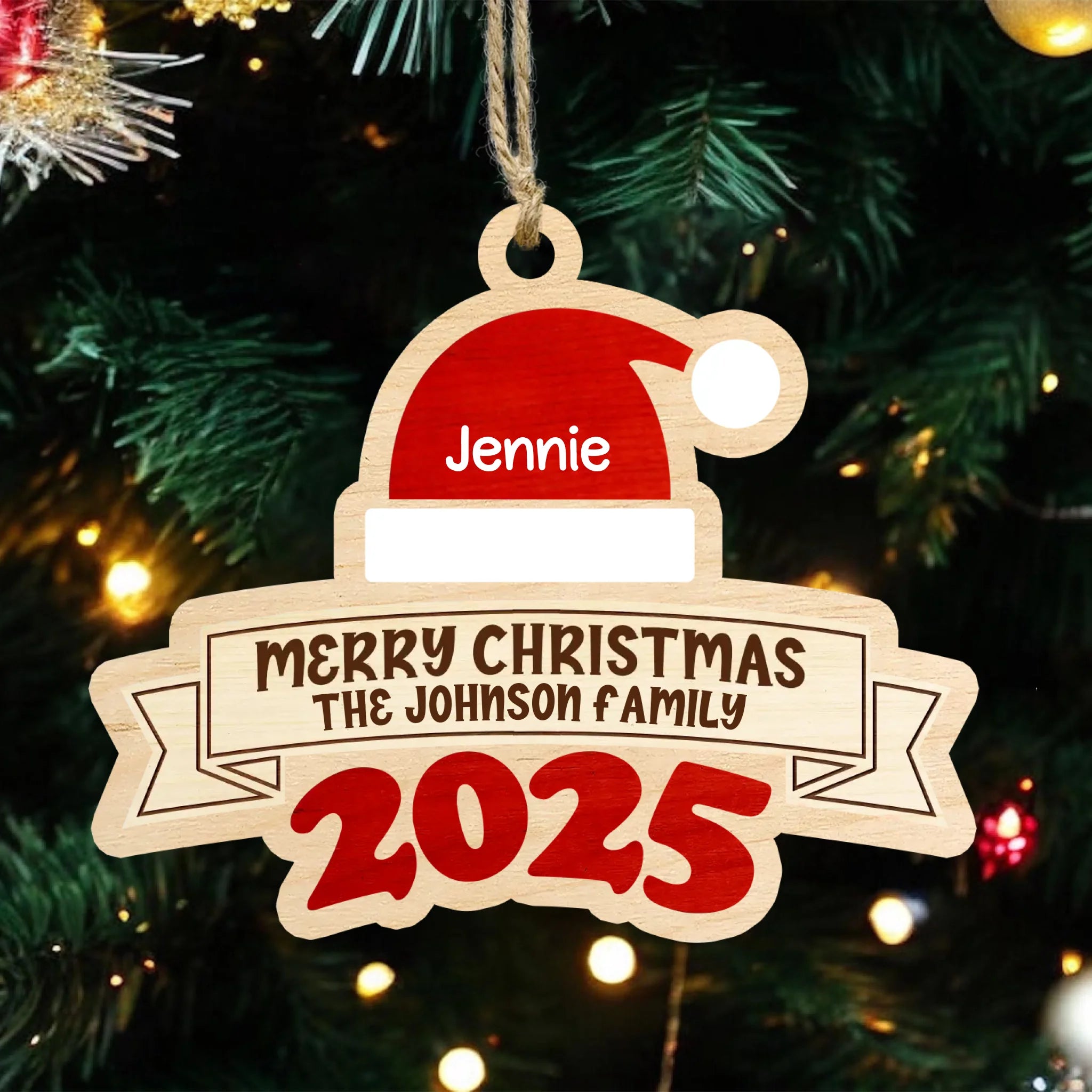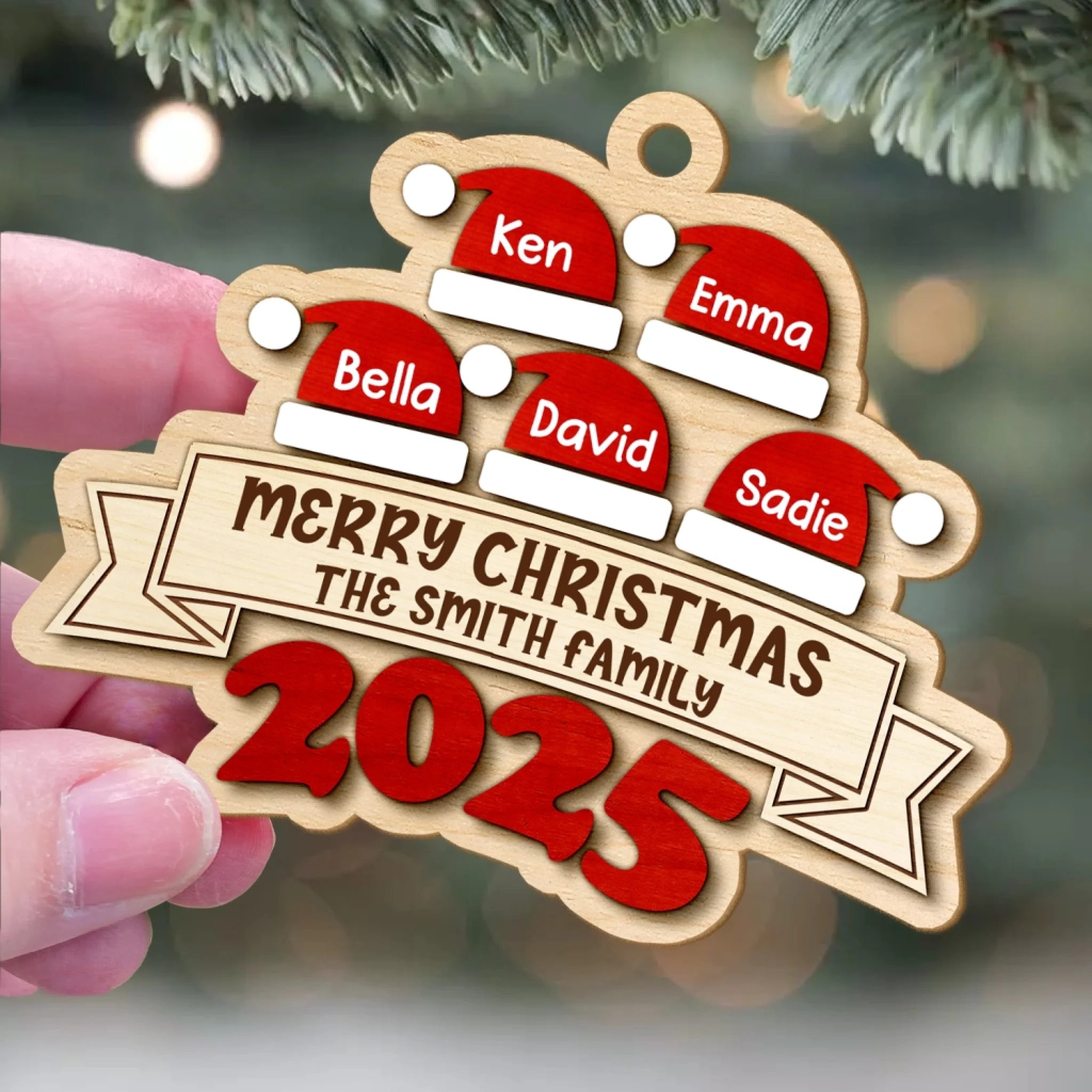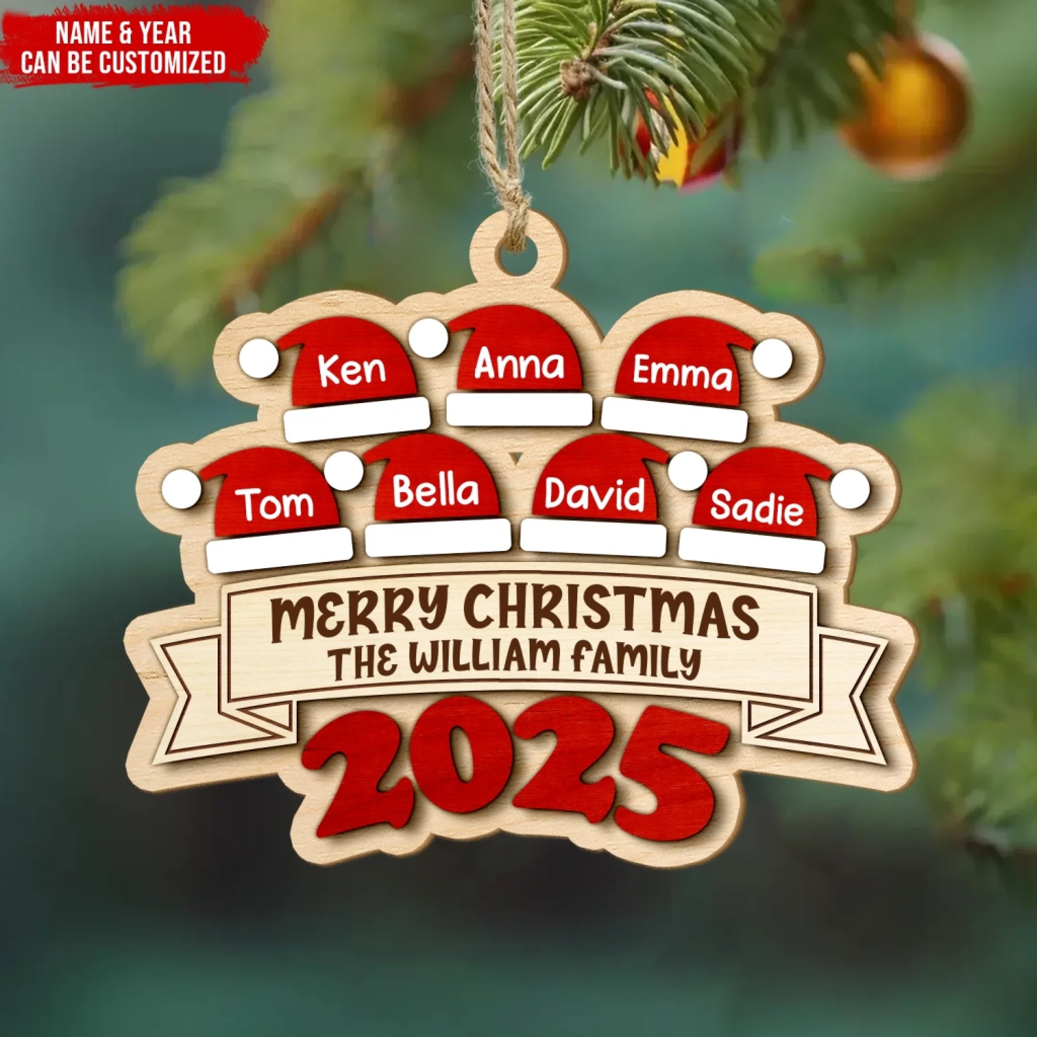 Merry Christmas Family Santa Hat - Personalized Wooden Ornament 2 Layer, Family Ornament