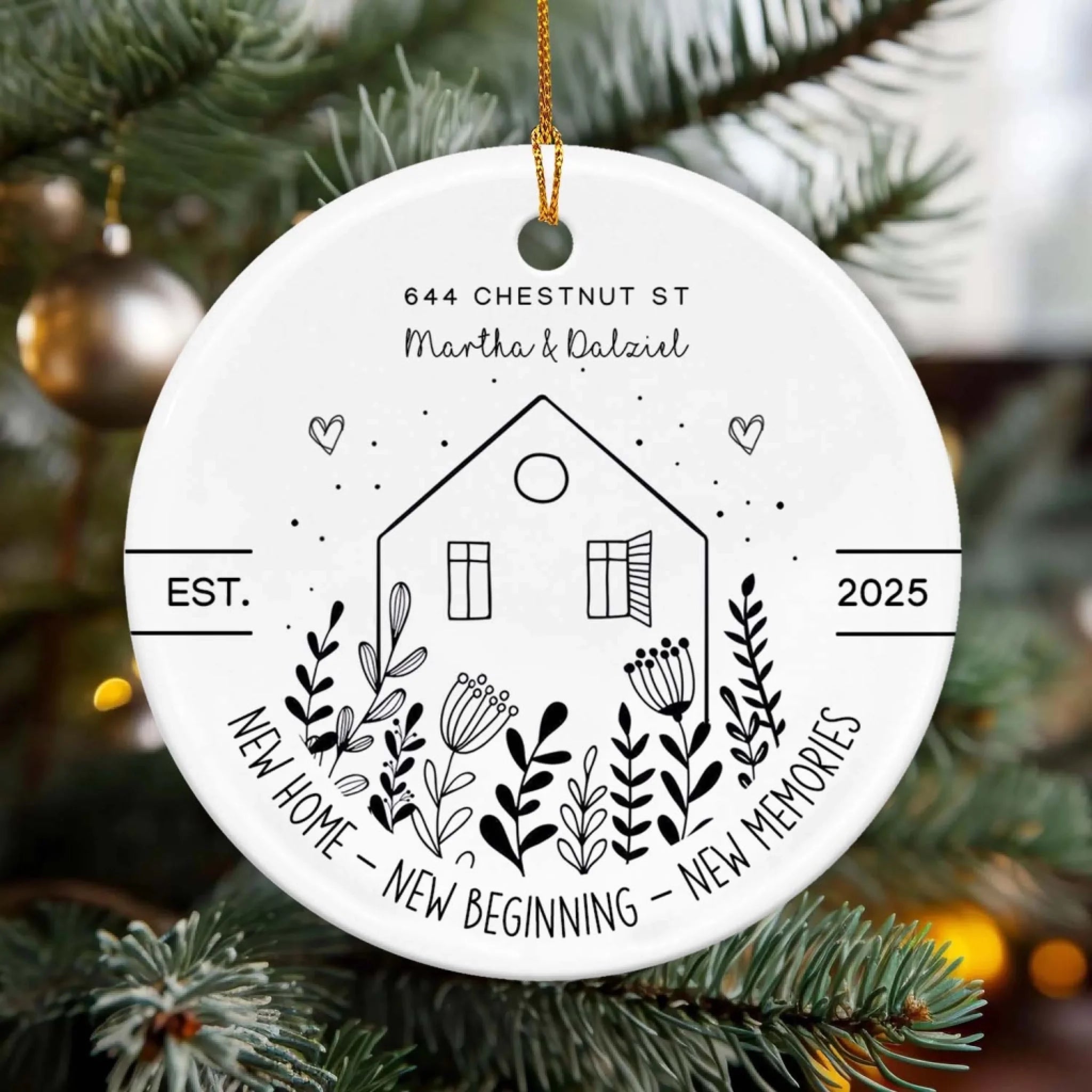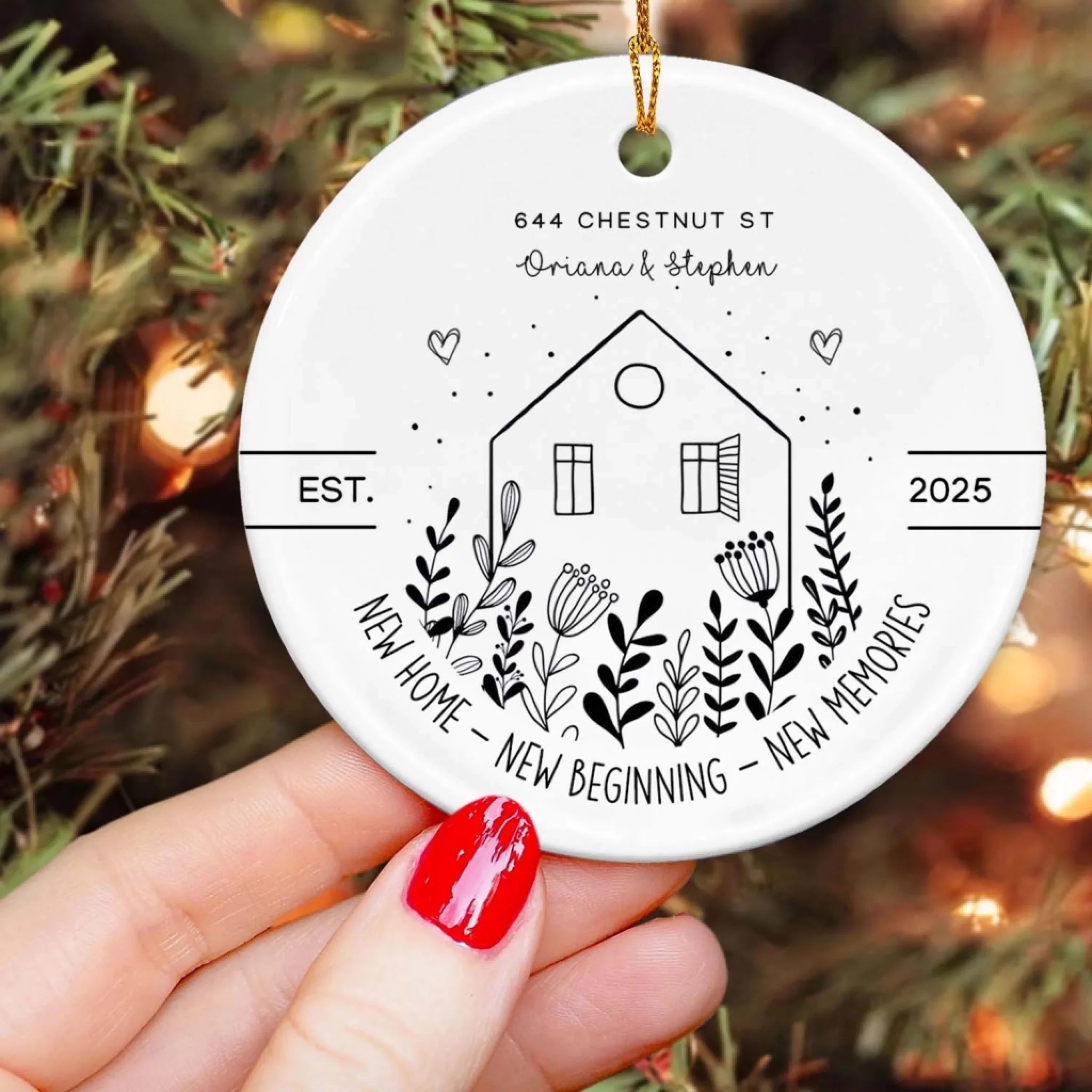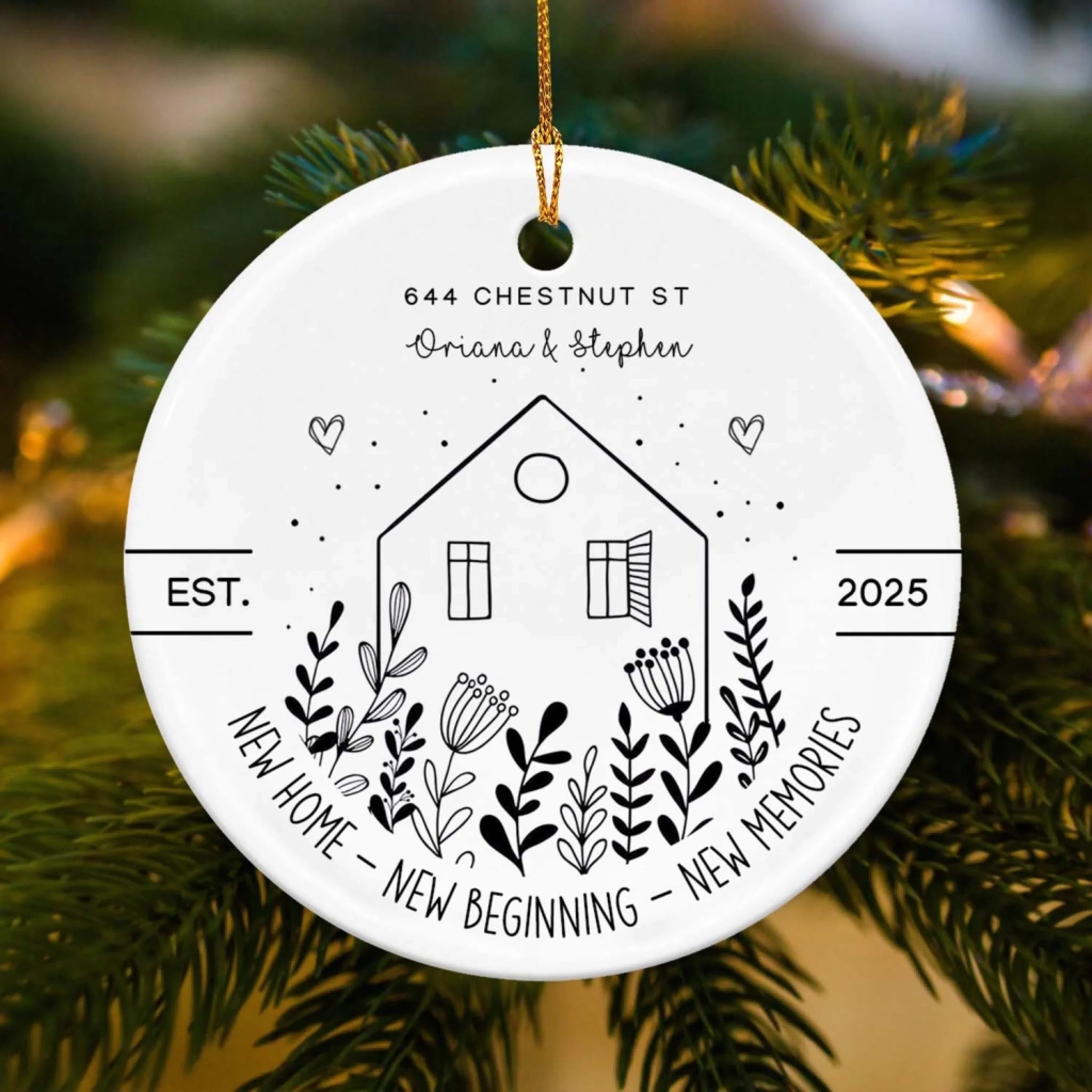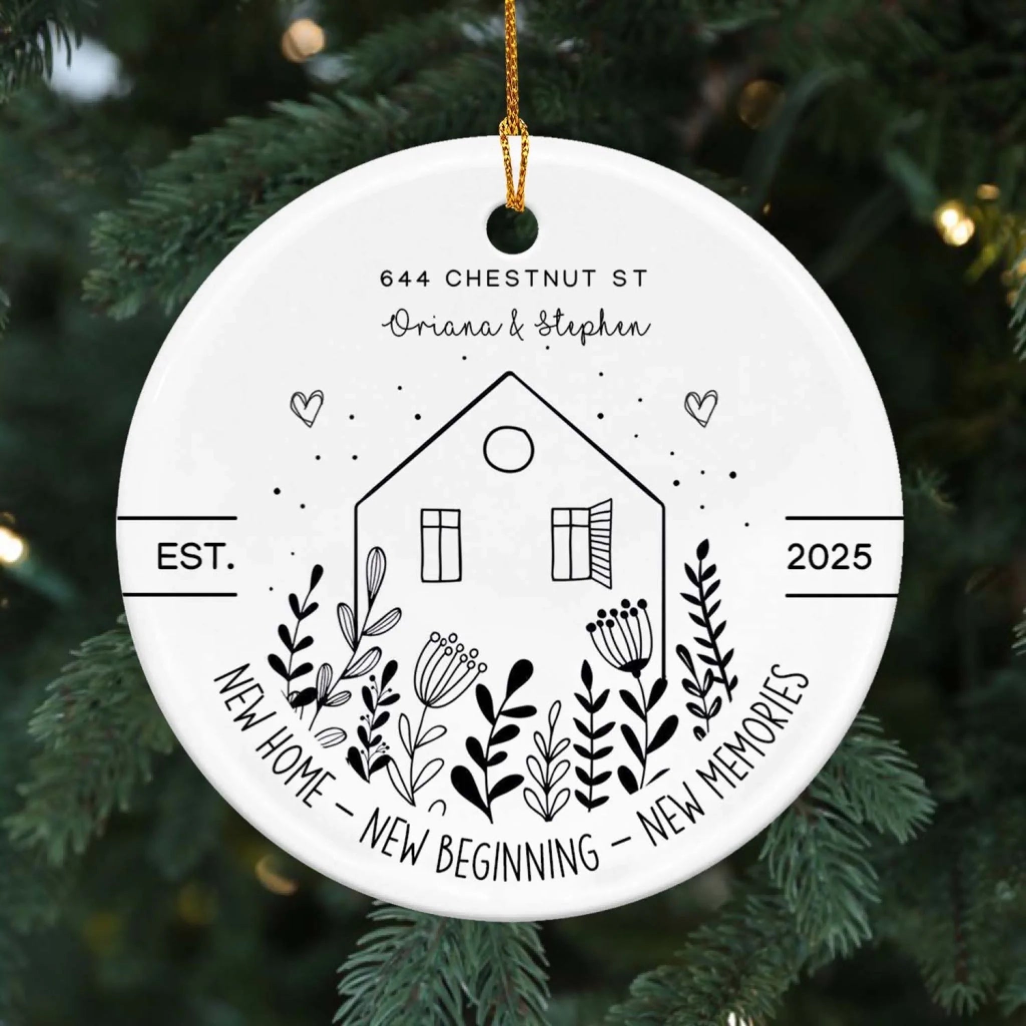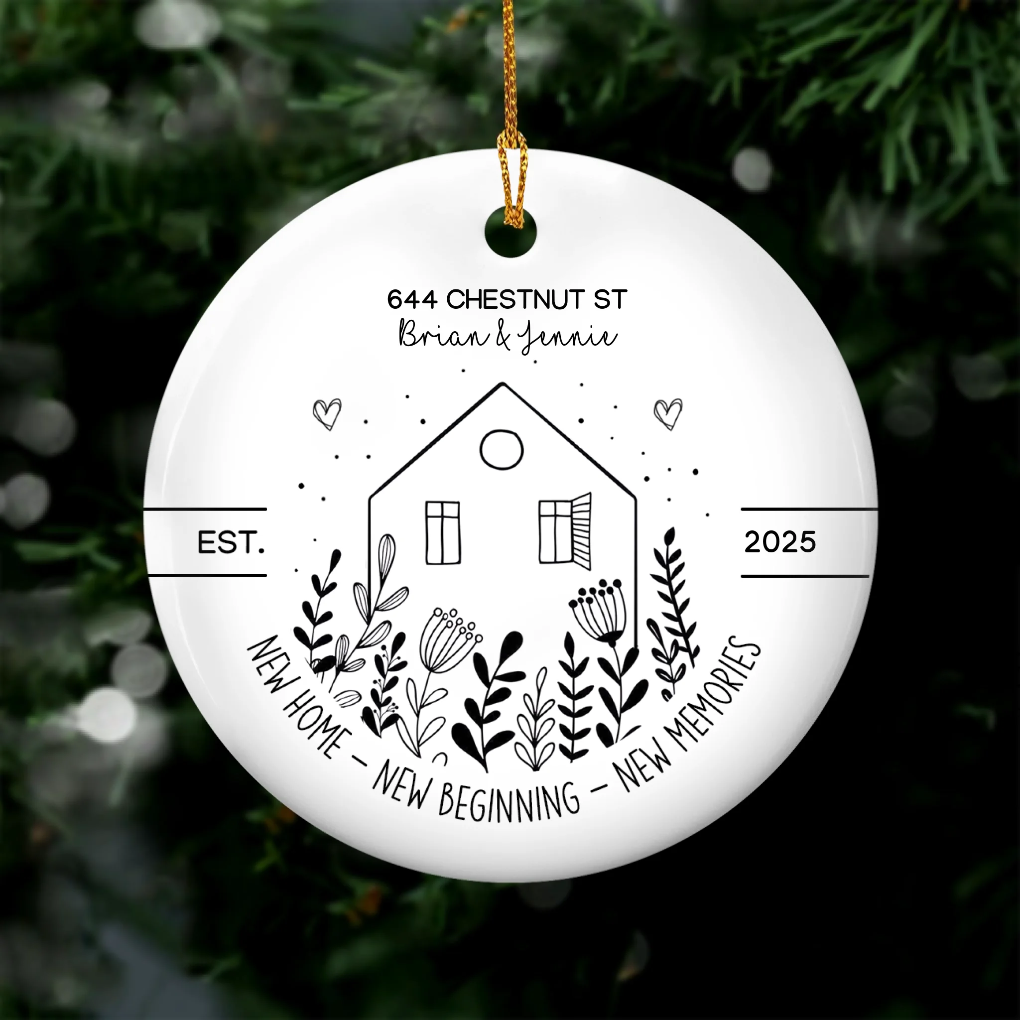 New House New Beginning New Memories - Personalized Ceramic Ornament, Housewarming Gift For Family, Couple