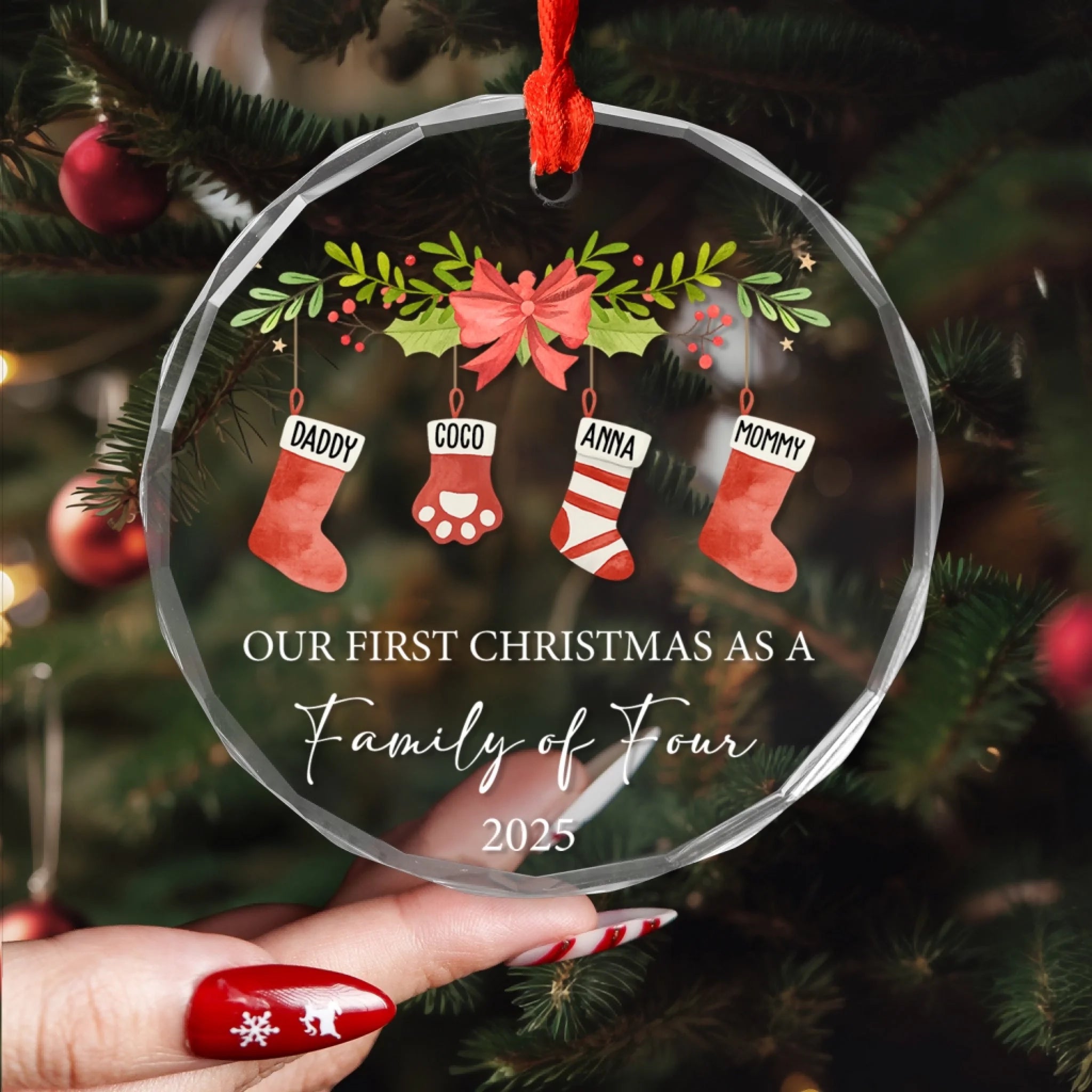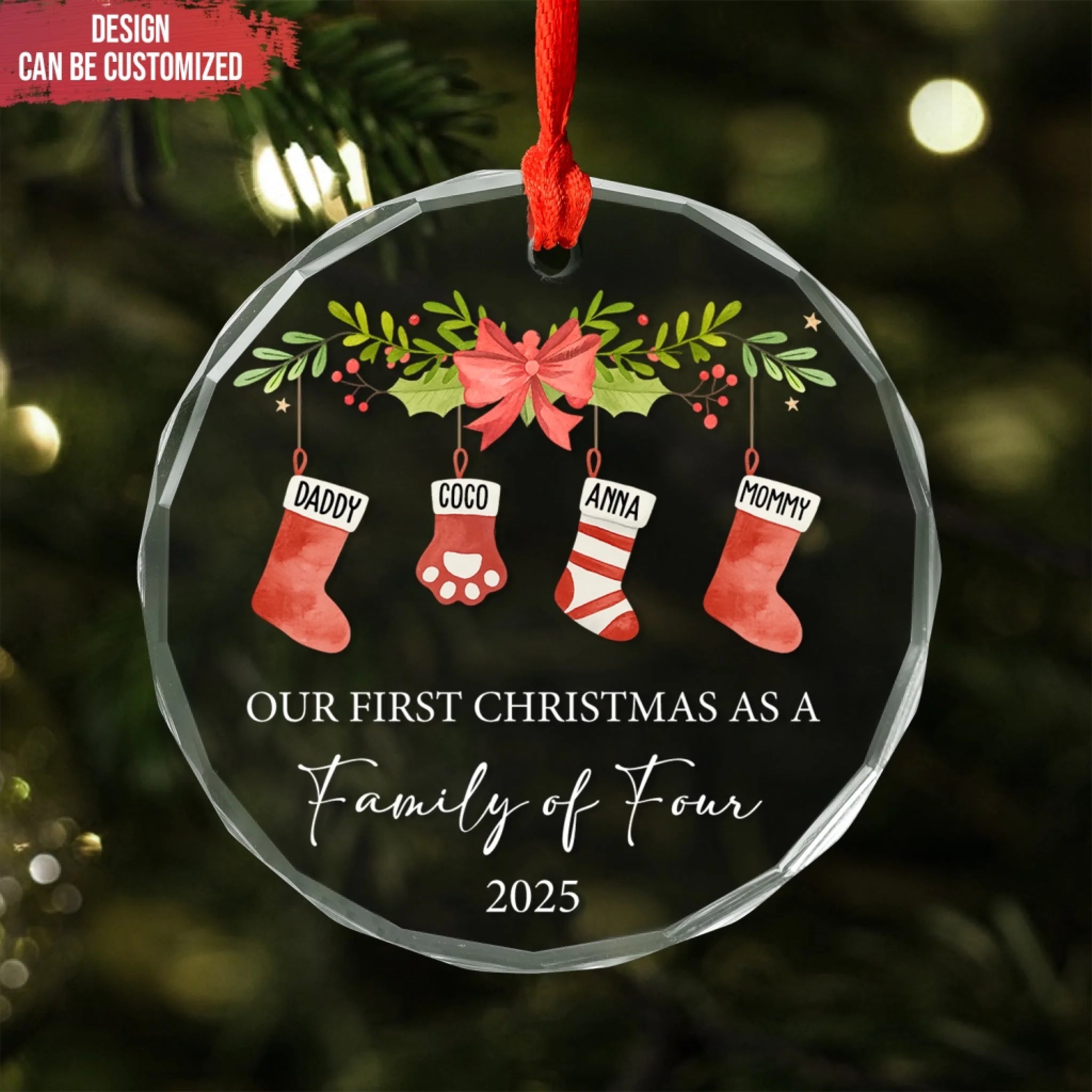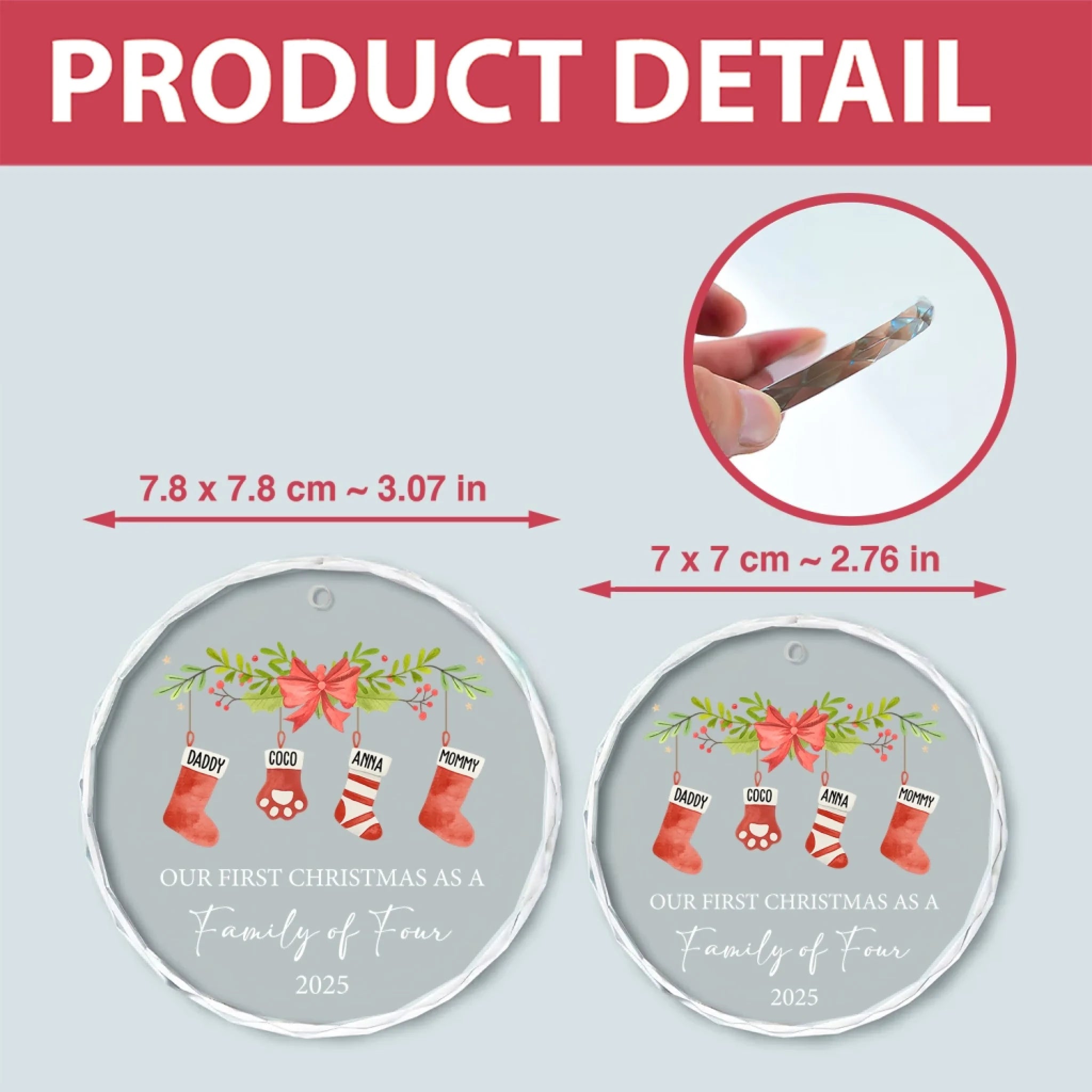 Our First Christmas As A Family - Personalized Glass Ornament, Custom Christmas Family Socks, Family Gift