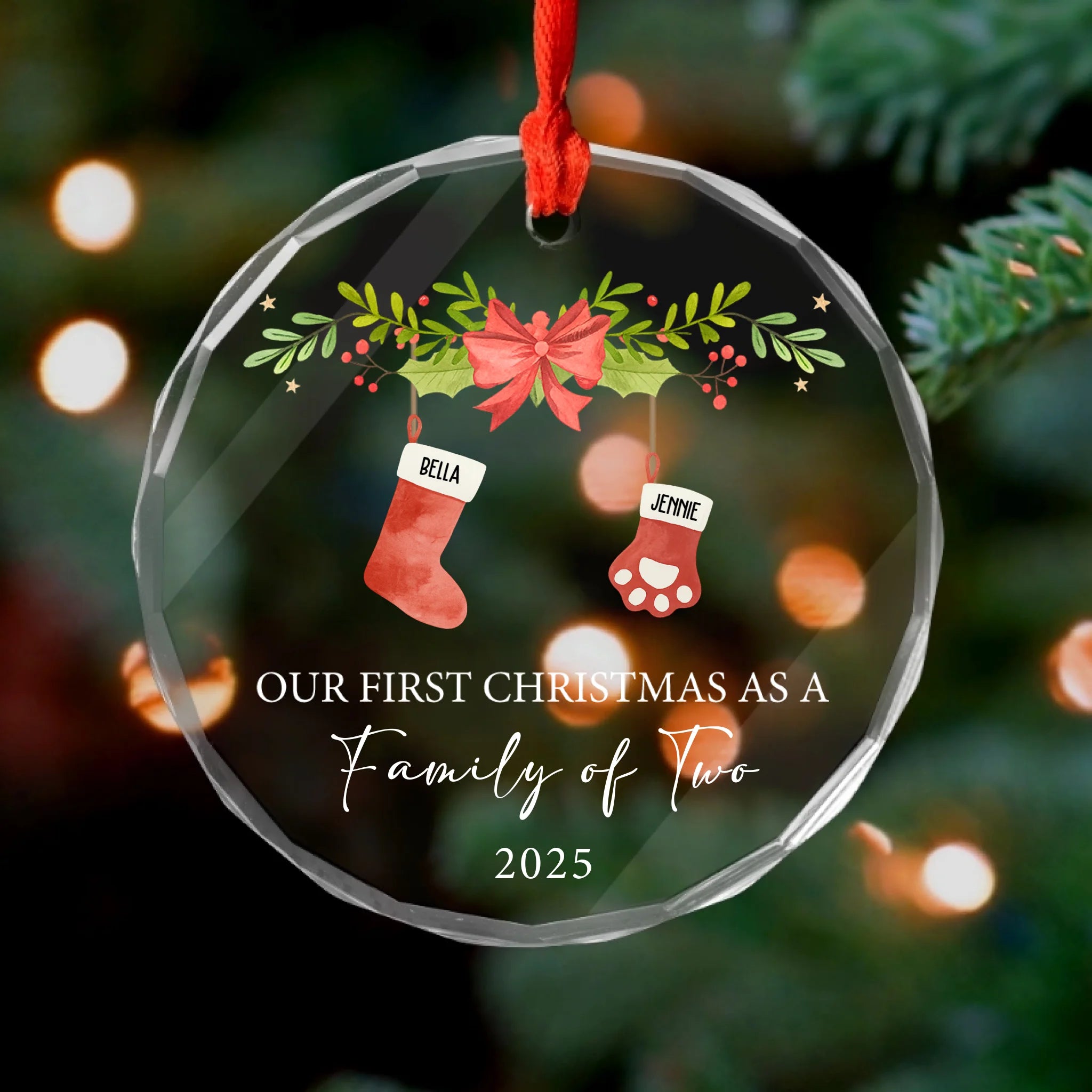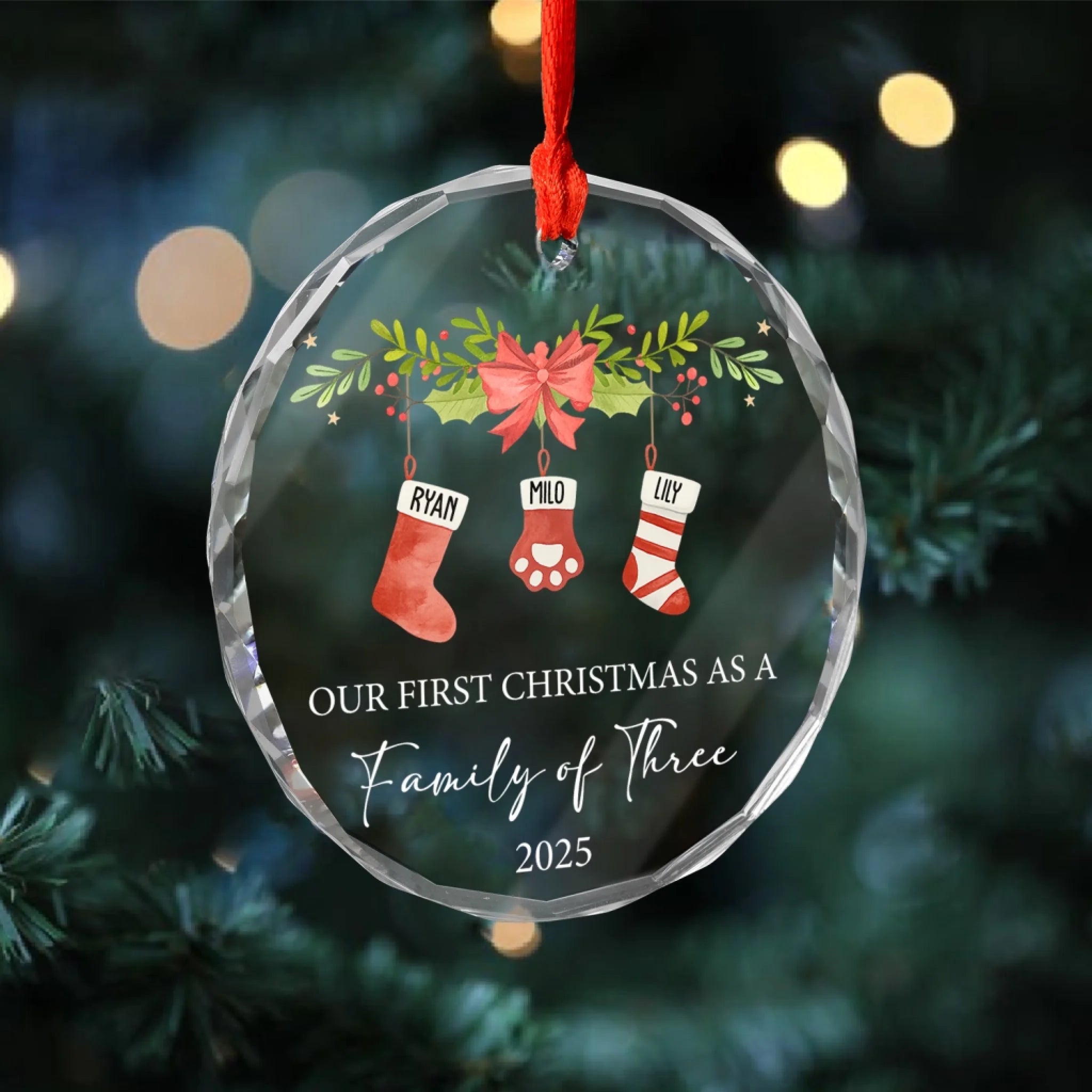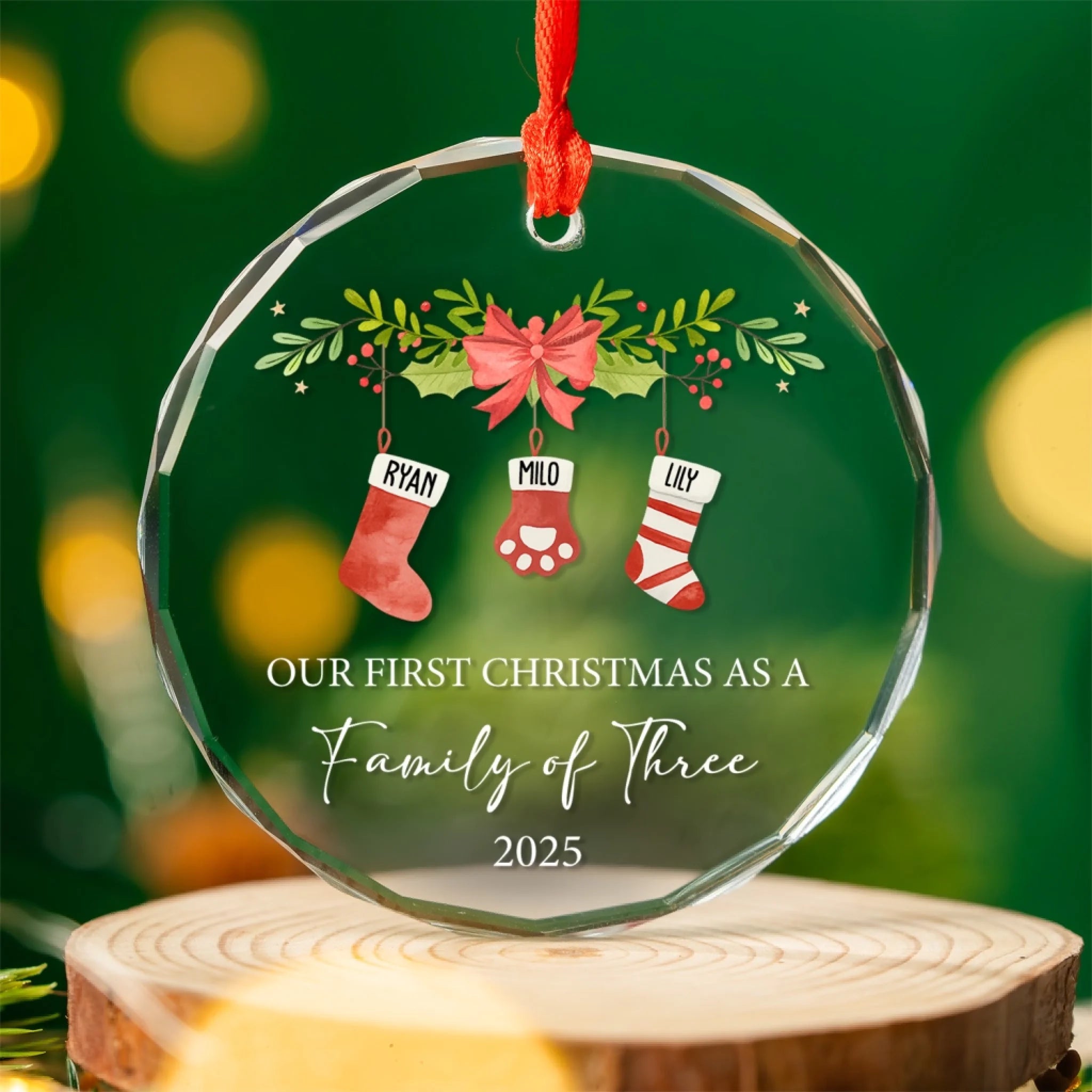 Our First Christmas As A Family - Personalized Glass Ornament, Custom Christmas Family Socks, Family Gift