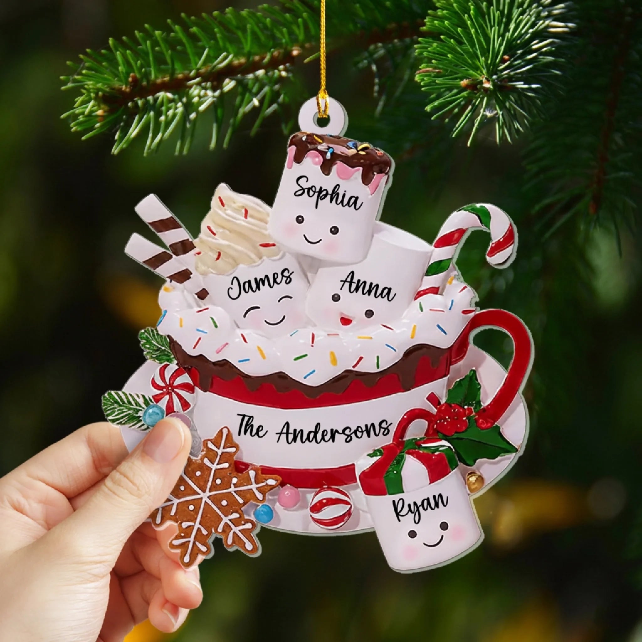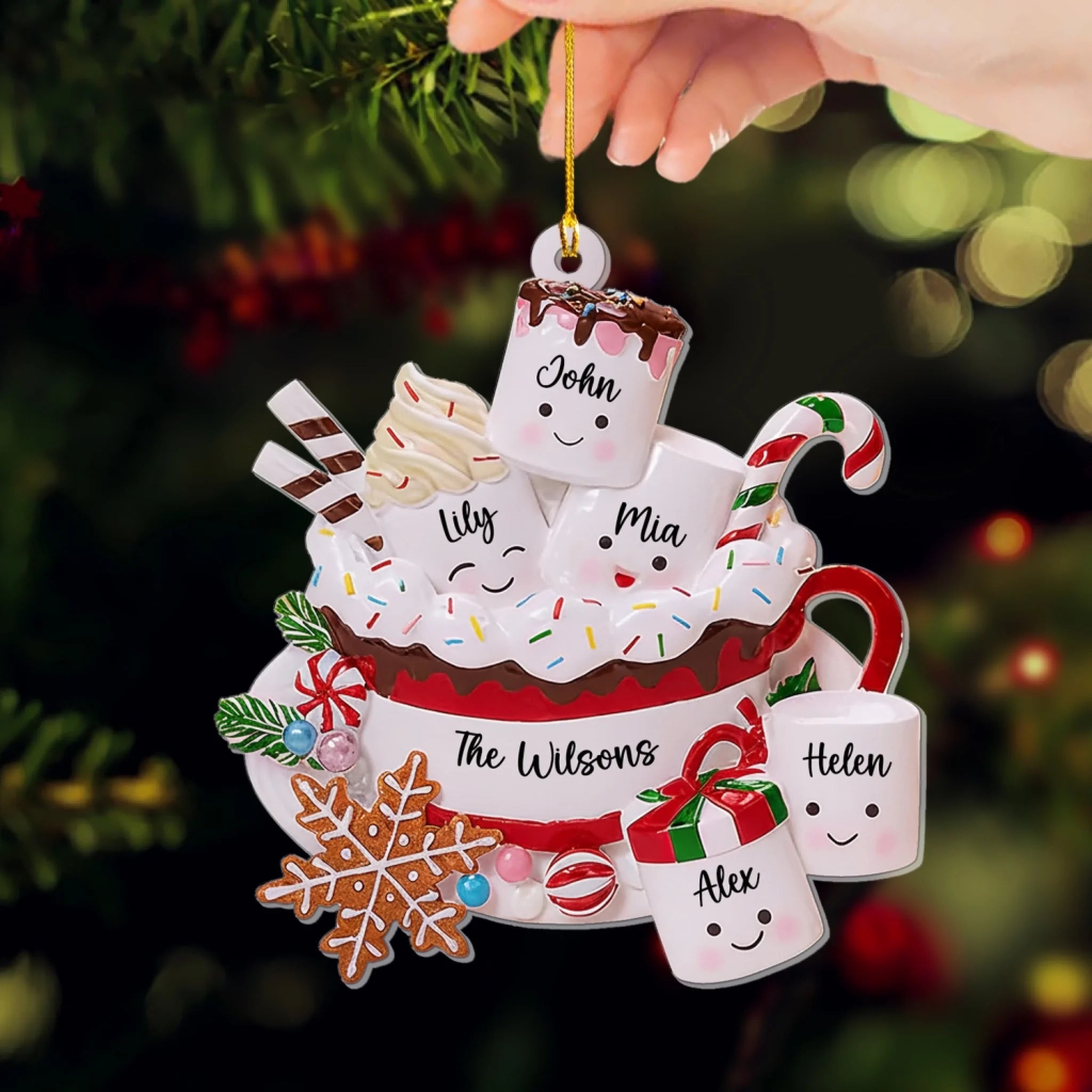 Christmas Marshmallow Family - Personalized Acrylic Ornament, Gift For Family