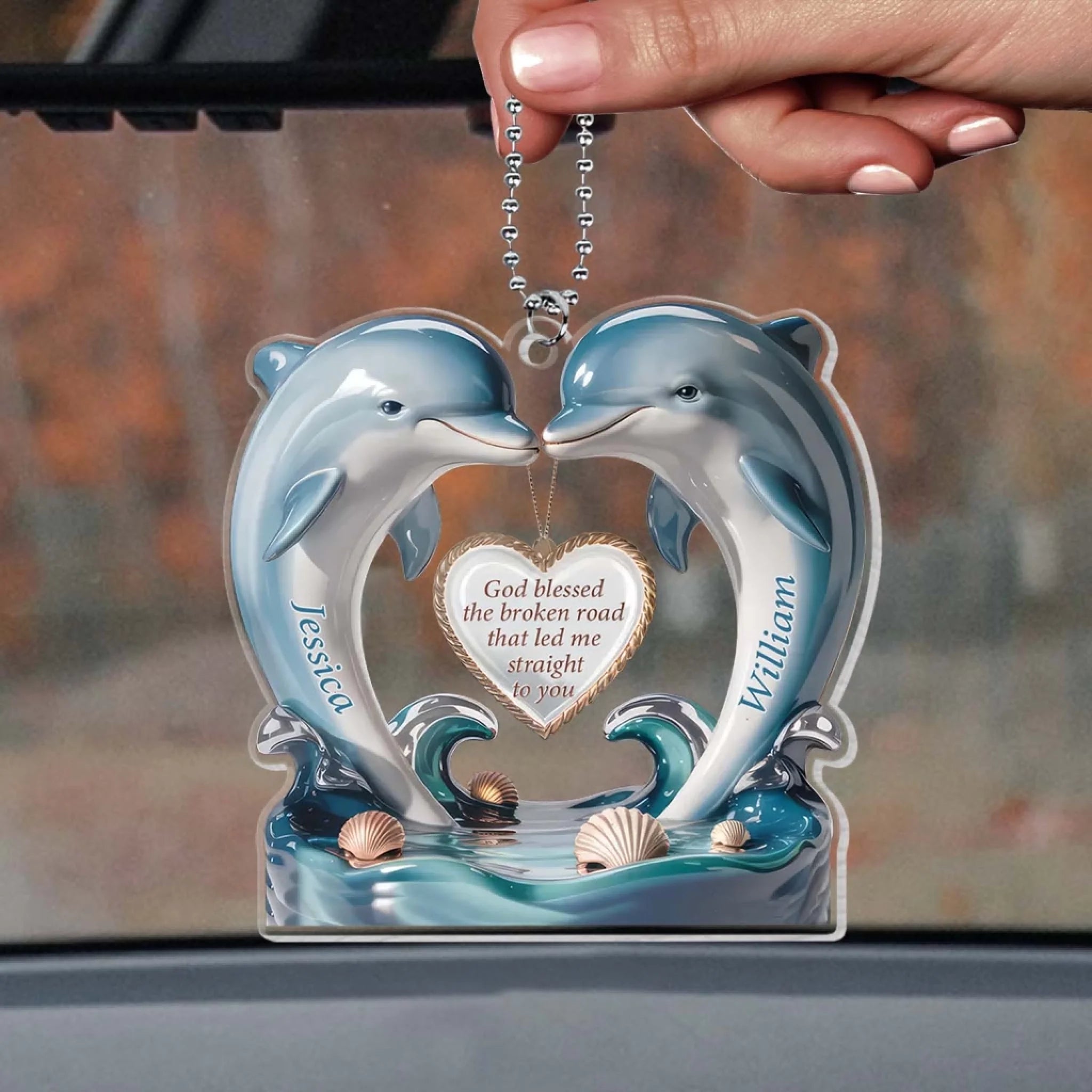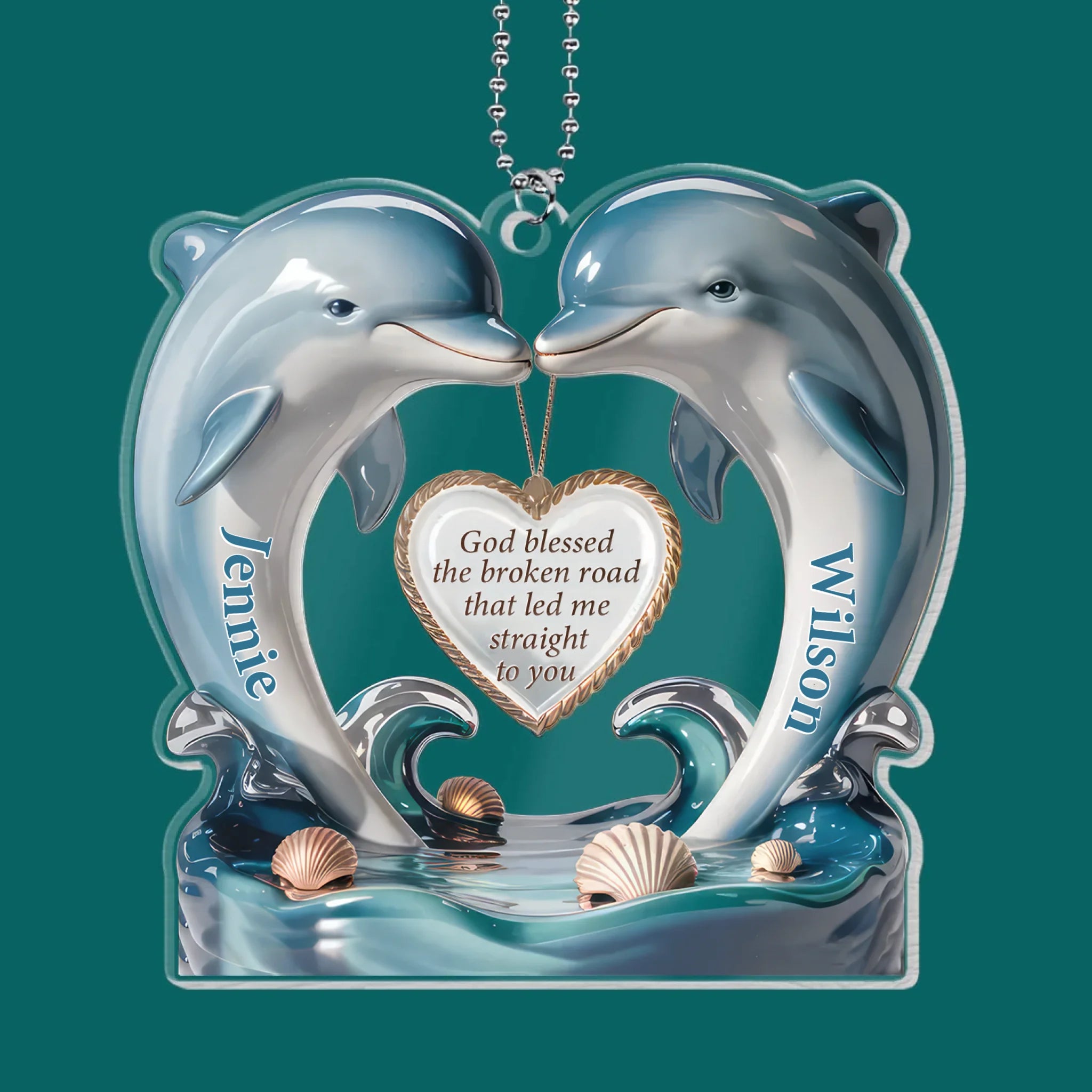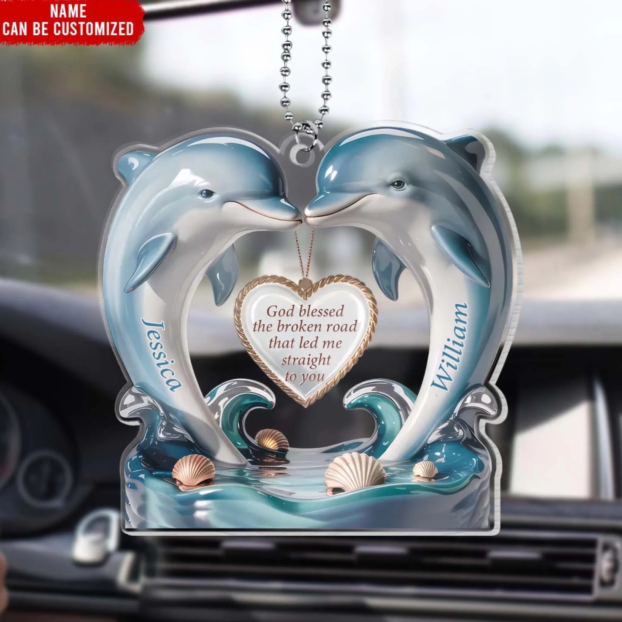 God Blessed The Broken Road That Led Me Straight To You - Personalized Acrylic Car Hanger, Gift For Husband/Wife, Anniversary Gift