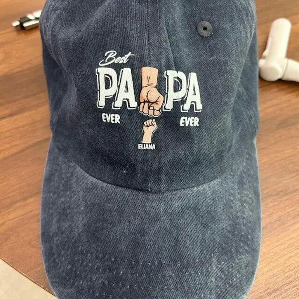 Best Dad Ever - Personalized Vintage Washed Denim Baseball Cap, Gift For Dad