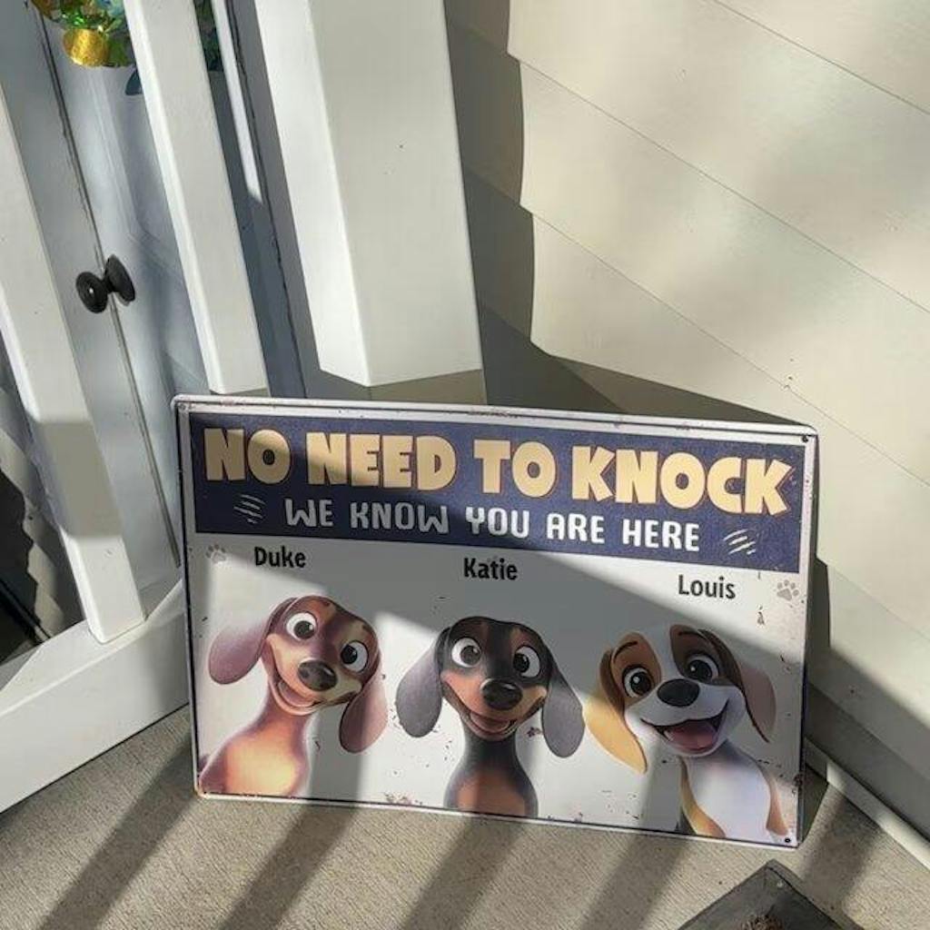 Dog No Need To Knock - Personalized Metal Sign, Gift For Dog Lovers