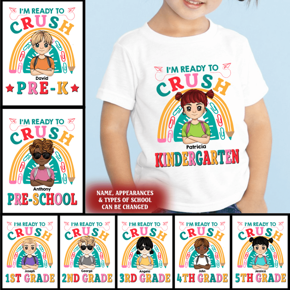 Personalized Back To School Shirt I Am Ready To Crush Kindergarten Cute Rainbow Shirt Gift For Kids
