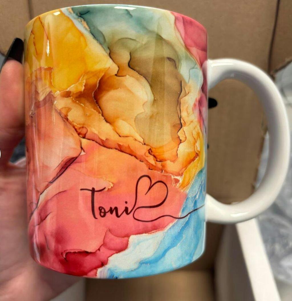 Watercolor Marble With Custom Name - Personalized Mug, Coffee Tea Cup Gift For Her, Bestie, Friend, Mom